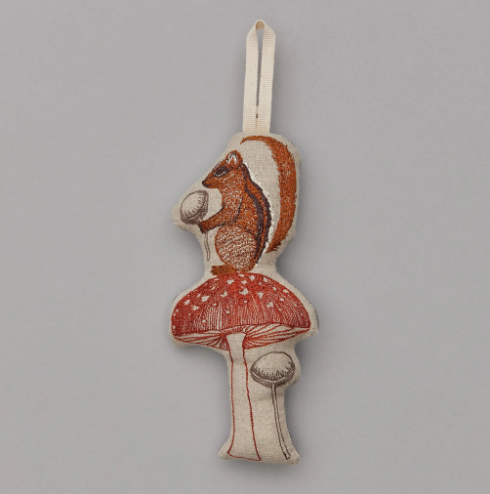 Add woodland whimsy to your Christmas tree this year with our Mushroom ornaments. Chipmunk perches atop a rust orange toadstool holding a foraged morel. Collect the entire series!