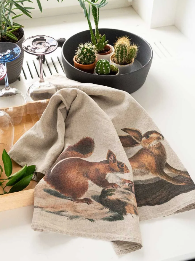 European Linen 'Hare & Squirrel' Pair of Tea Towels