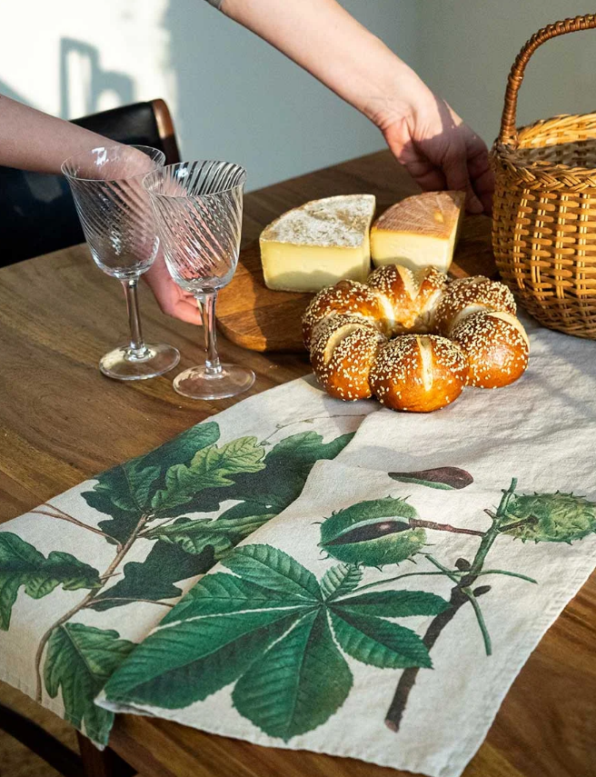 Leafy green Oak & Horse Chestnut linen kitchen towels are a true expression of countryside calm and serenity.