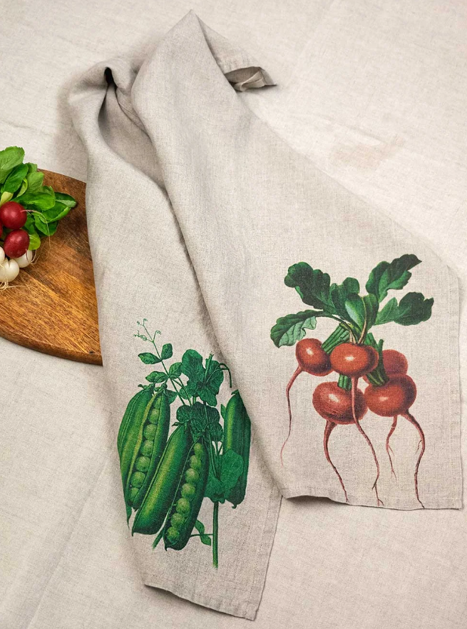 Colourful and vibrant Radish & Peas washed linen kitchen towels will bring a smile to your face. They are dedicated to people for whom food is a source of happiness!