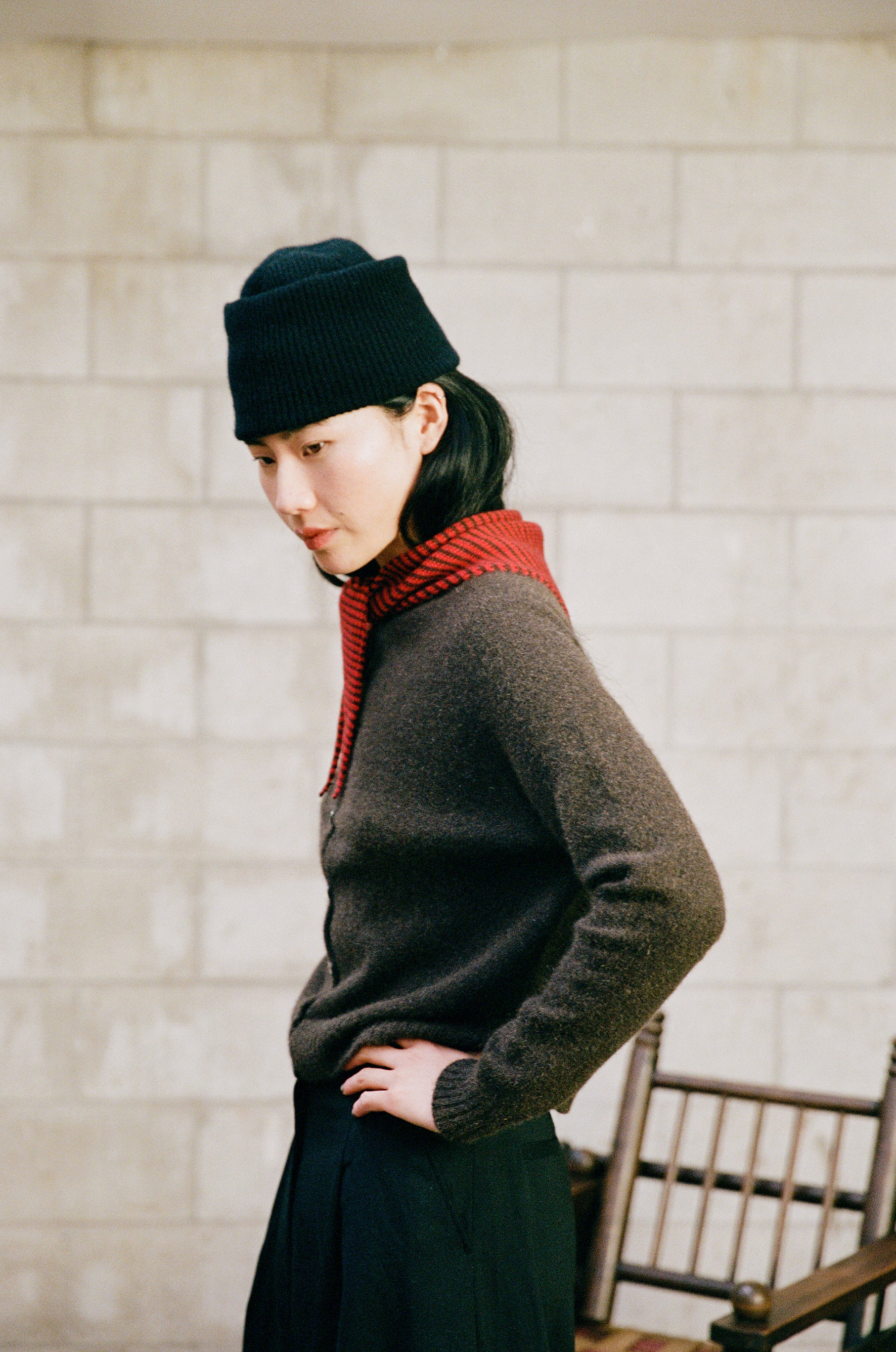 The nostalgic little Francie scarf that can be worn a multitude of ways. Knitted thickly enough to provide soft, breathable warmth when tied twice around the neck, yet light-weight enough to be worn as a headscarf too.