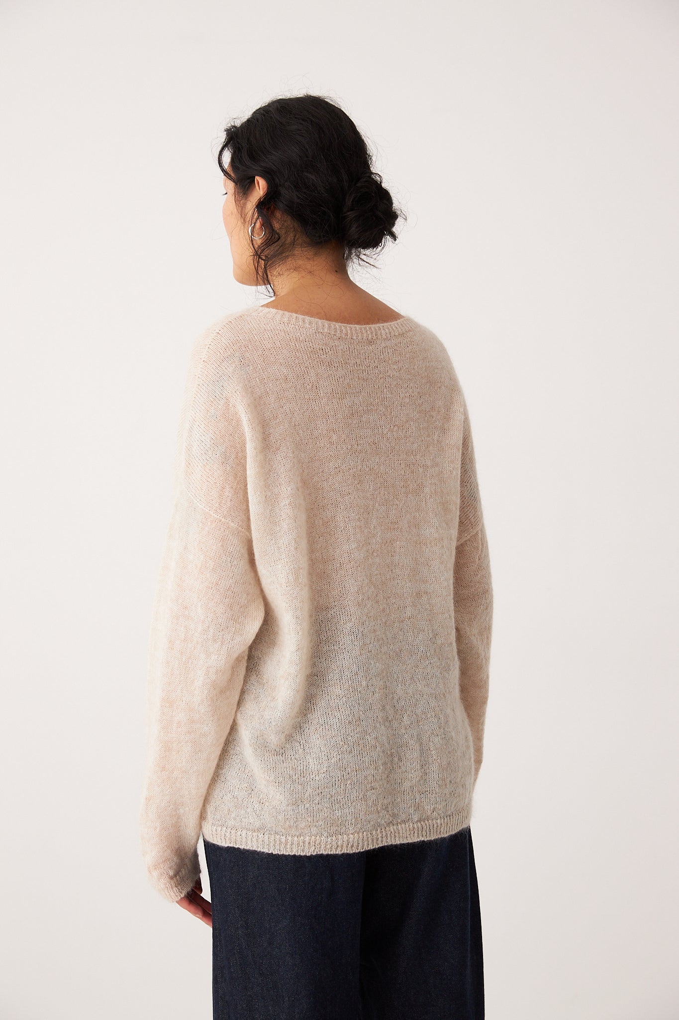 Light as a feather, and as soft as one too. Made from a soft, Italian mohair blend, the Feather knit is the perfect light layer for in-between seasons. This airy knit is slightly sheer, for a floaty layer to put over dresses in summer, or layer underneath coats in winter.