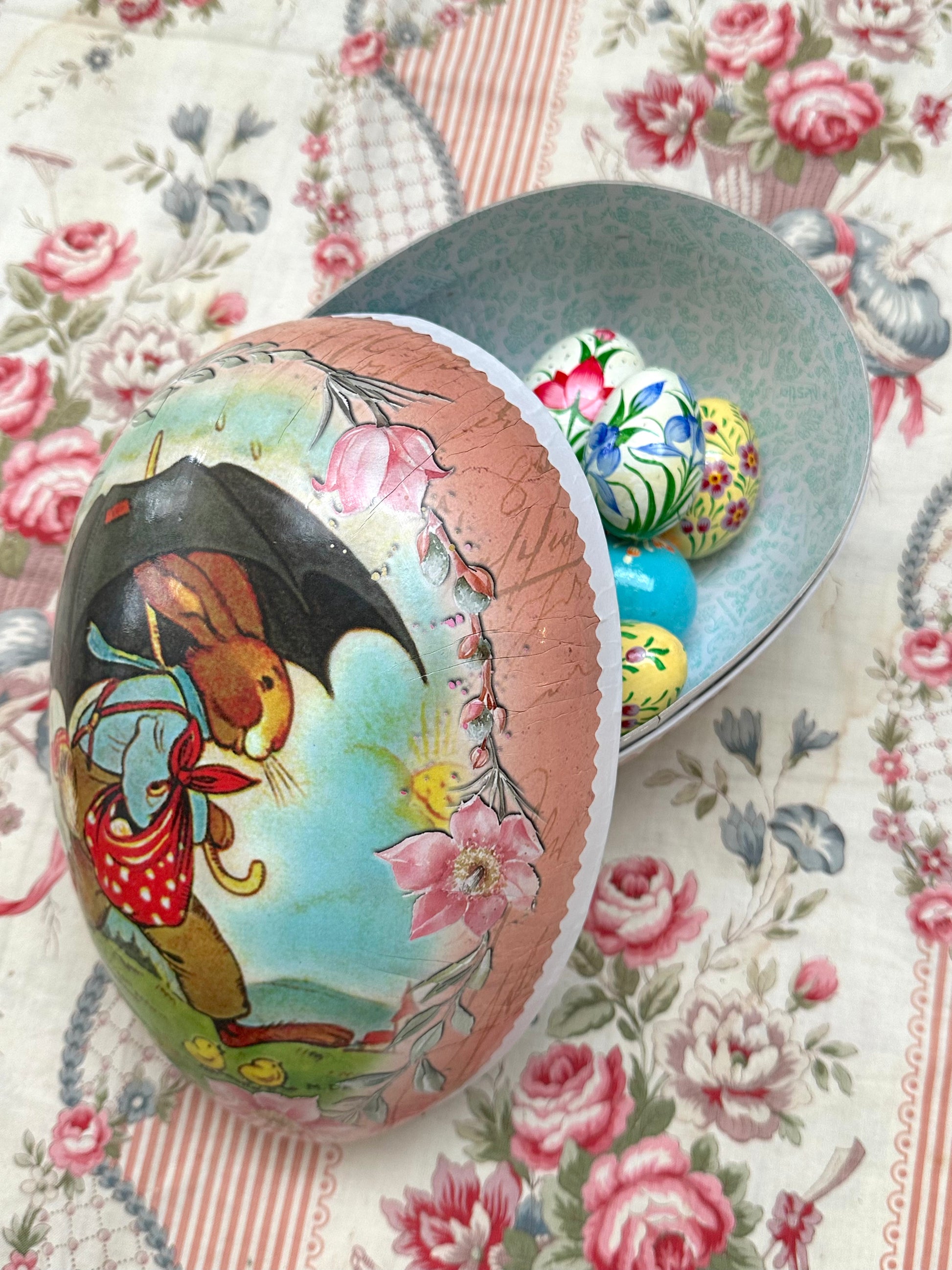 Gorgeous german Extra large Large Paper Eggs in 'Easter Joy' design. Each egg can open to use as storage, perfect for hiding chocolate eggs!