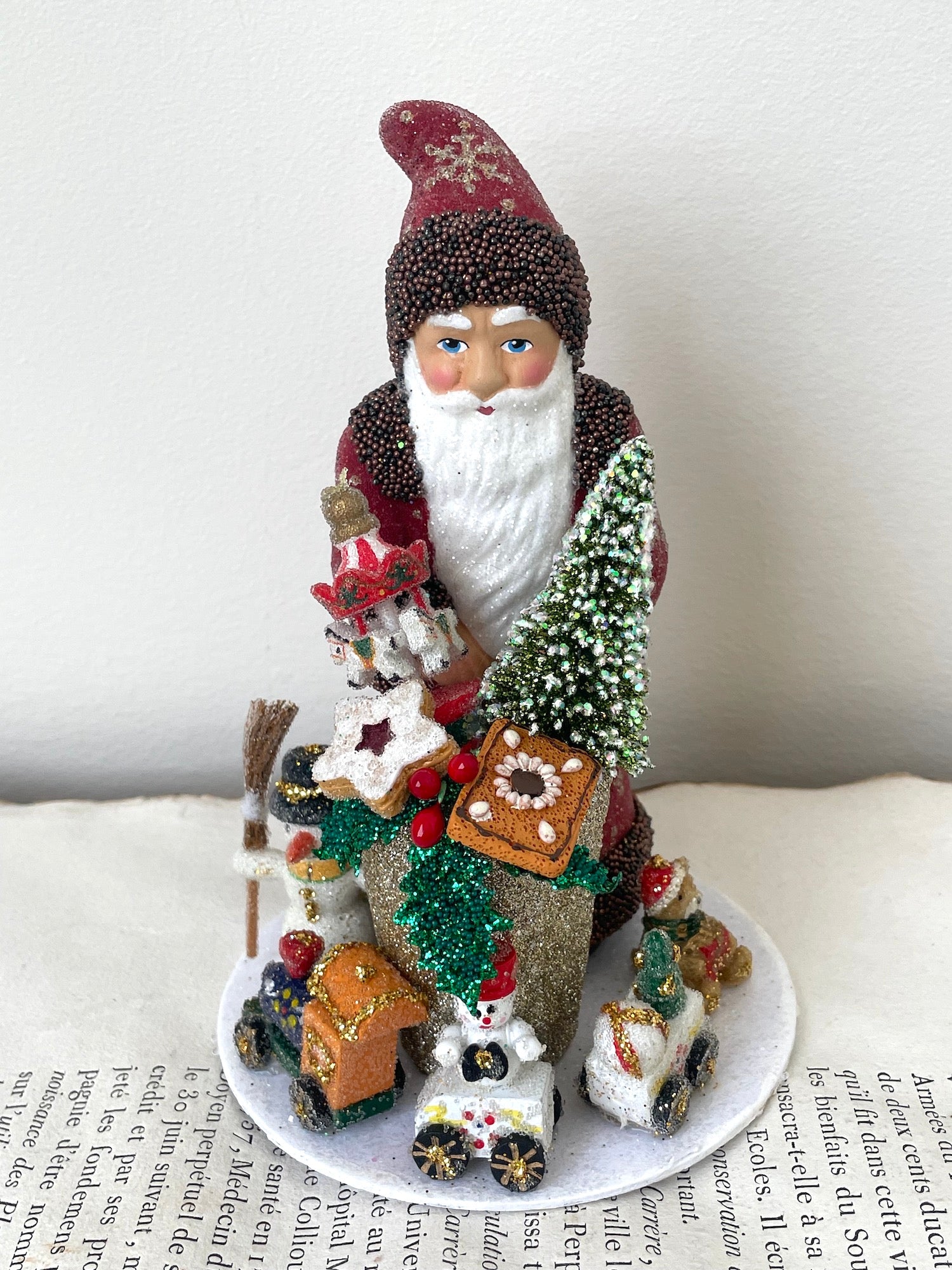These gorgeous Santas are hand made in Germany by a traditional fourth-generation family using a process that is over 100 years old. They are all hand-painted and decorated with natural materials, often using historical designs, so that these small works of art become sought-after collector's items.