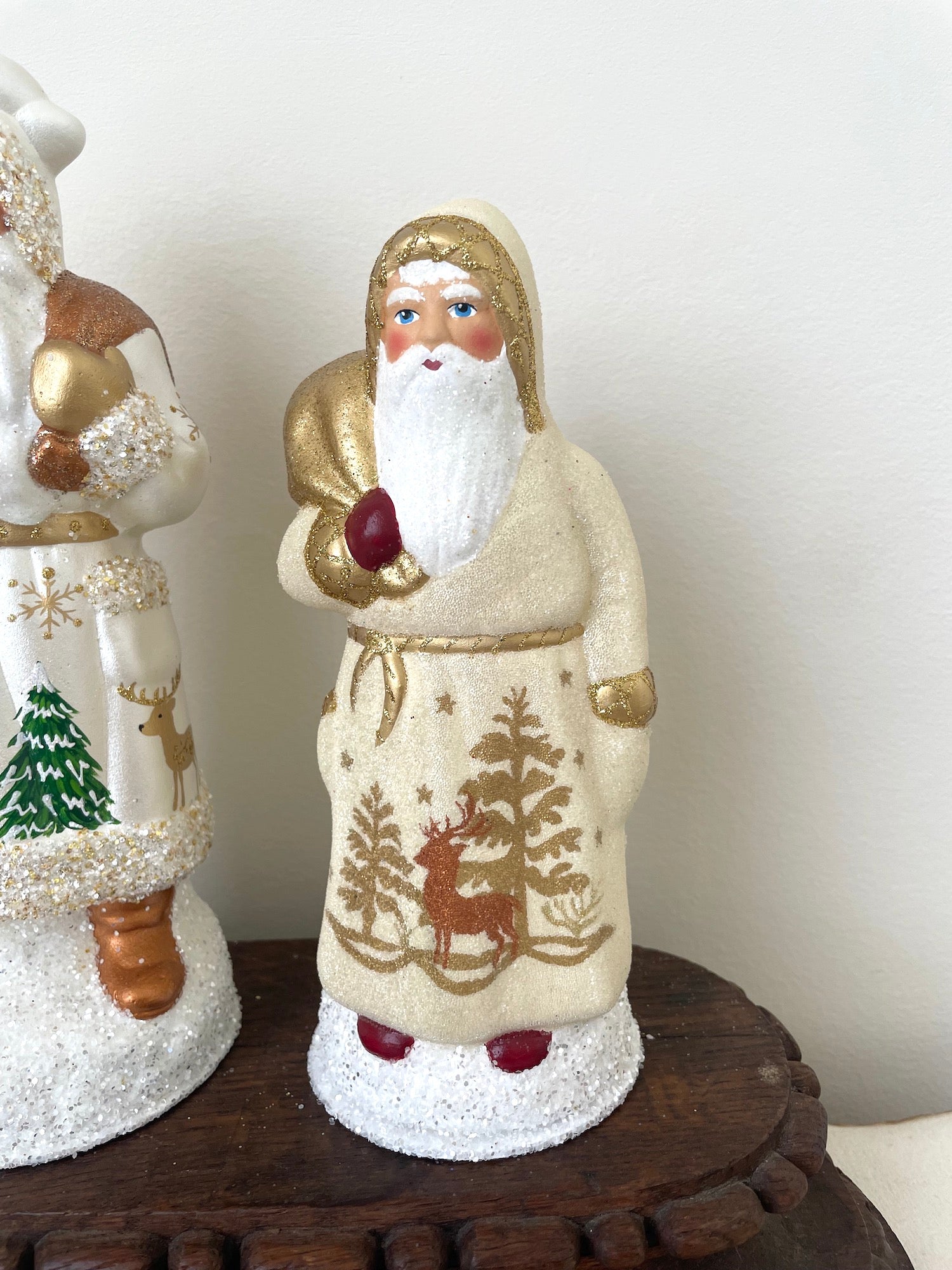 These gorgeous Santas are hand made in Germany by a traditional fourth-generation family using a process that is over 100 years old. They are all hand-painted and decorated with natural materials, often using historical designs, so that these small works of art become sought-after collector's items.