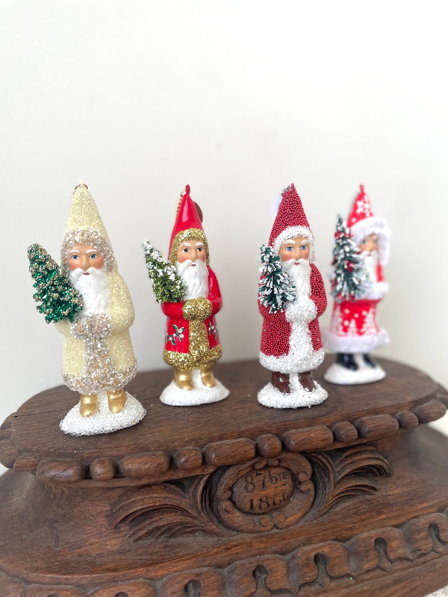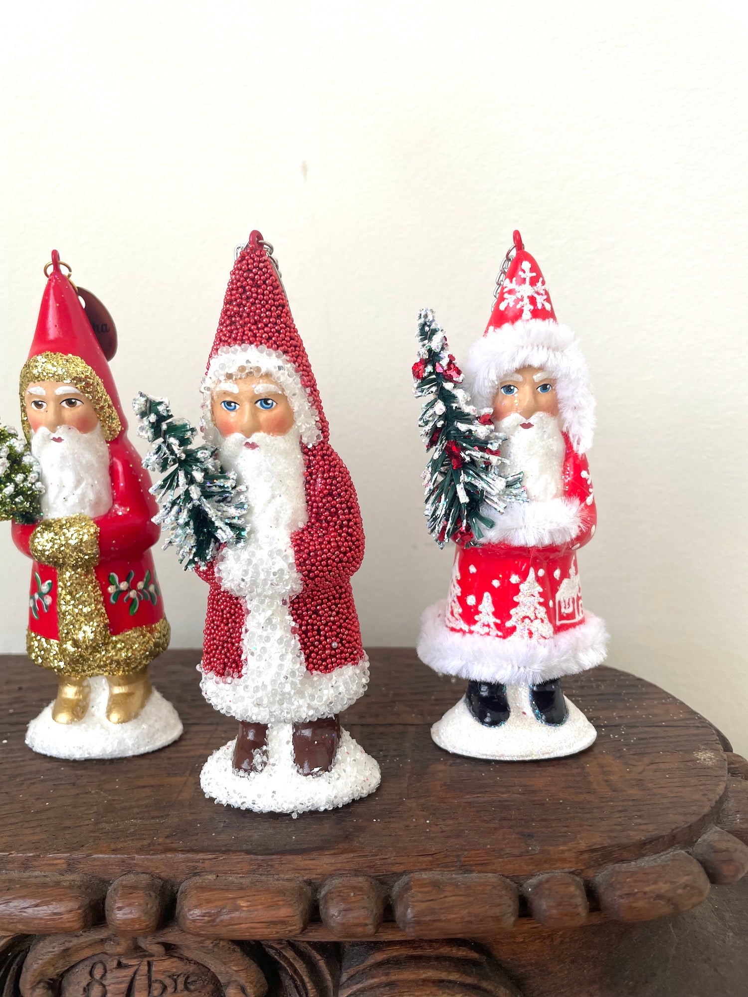 These gorgeous Santas are hand made in Germany by a traditional fourth-generation family using a process that is over 100 years old. They are all hand-painted and decorated with natural materials, often using historical designs, so that these small works of art become sought-after collector's items.