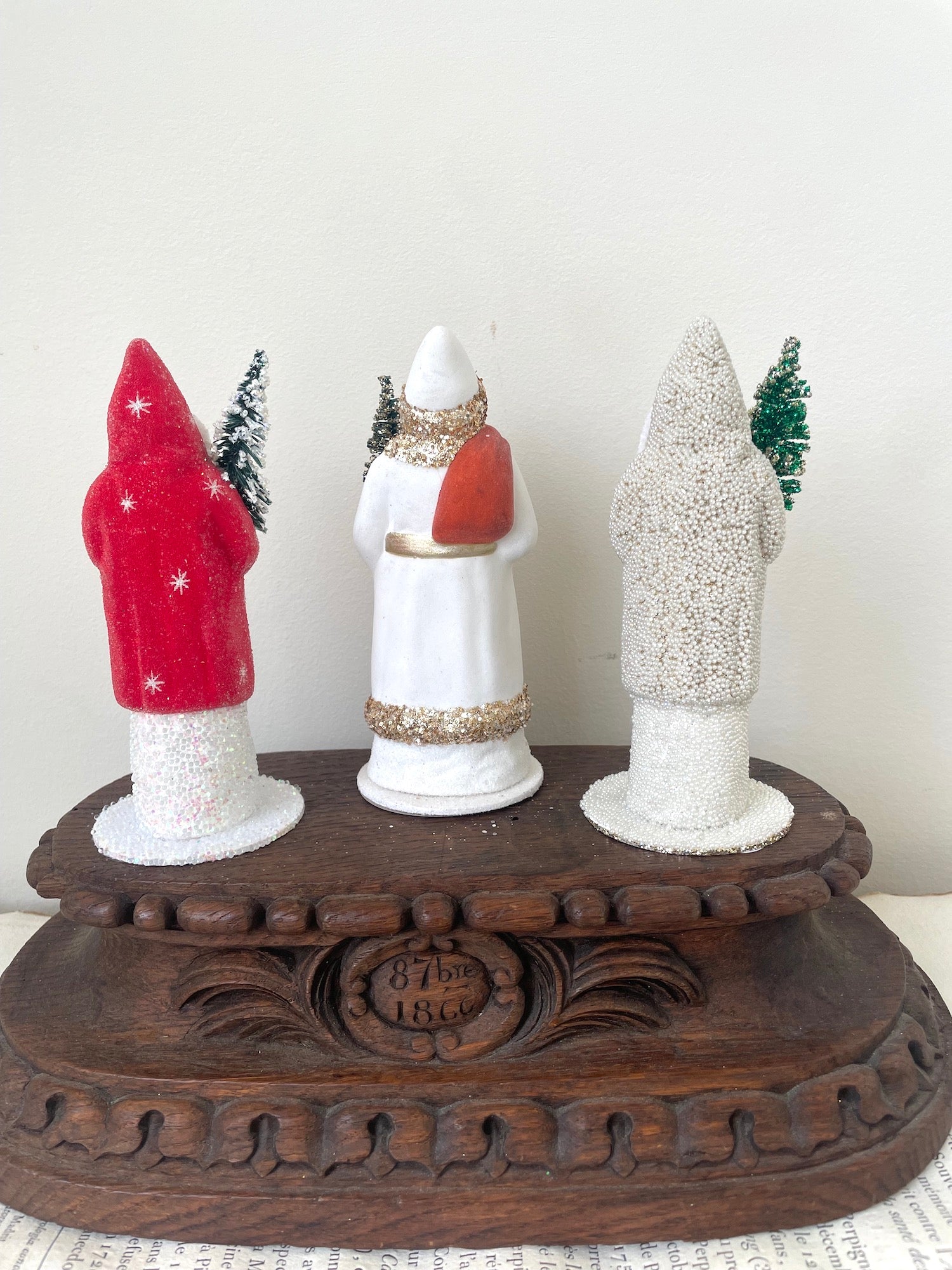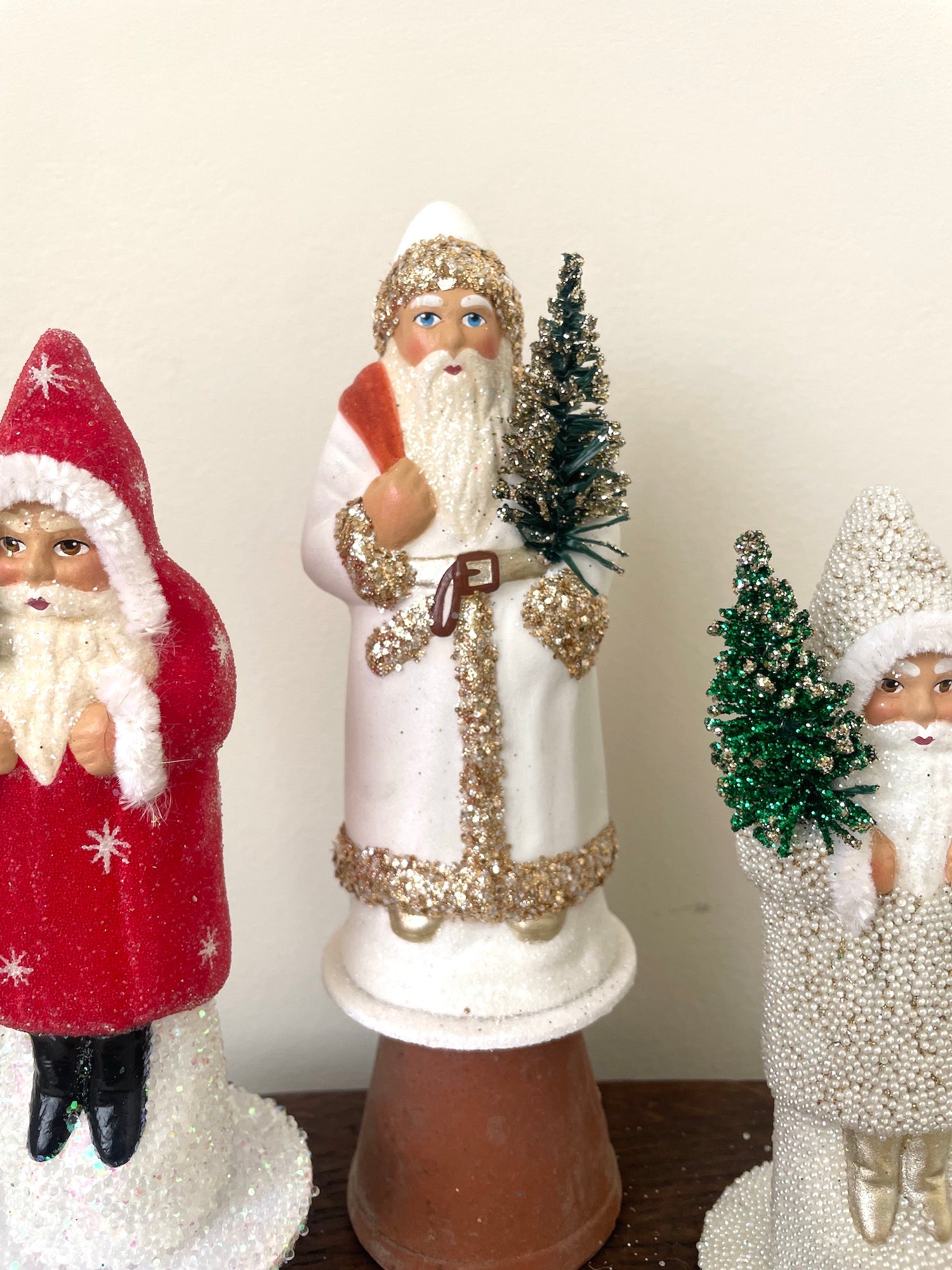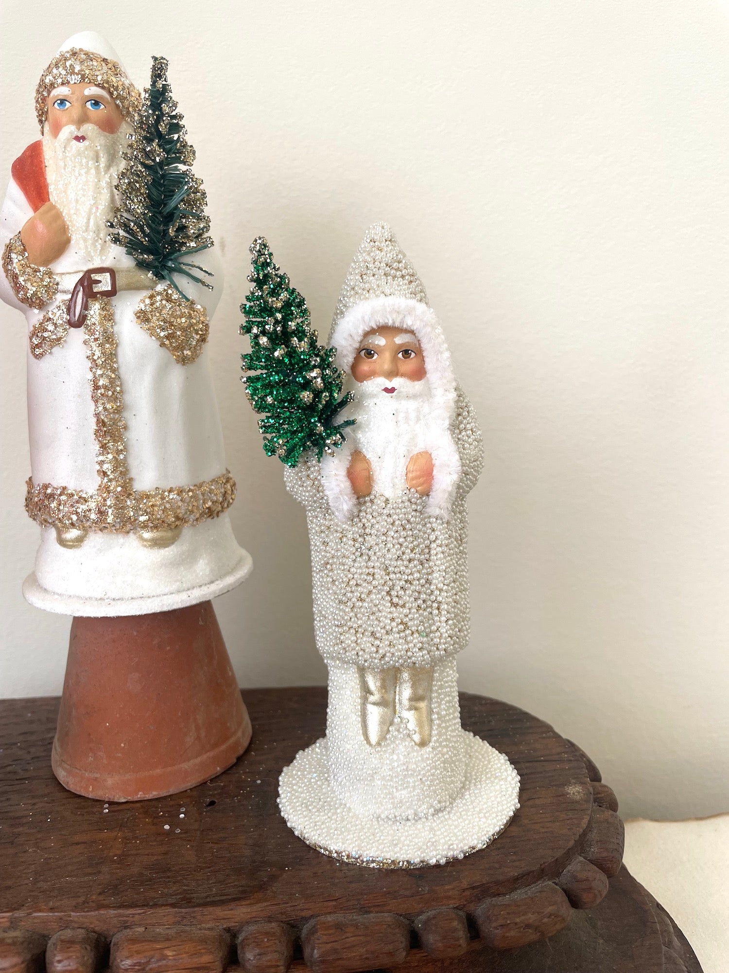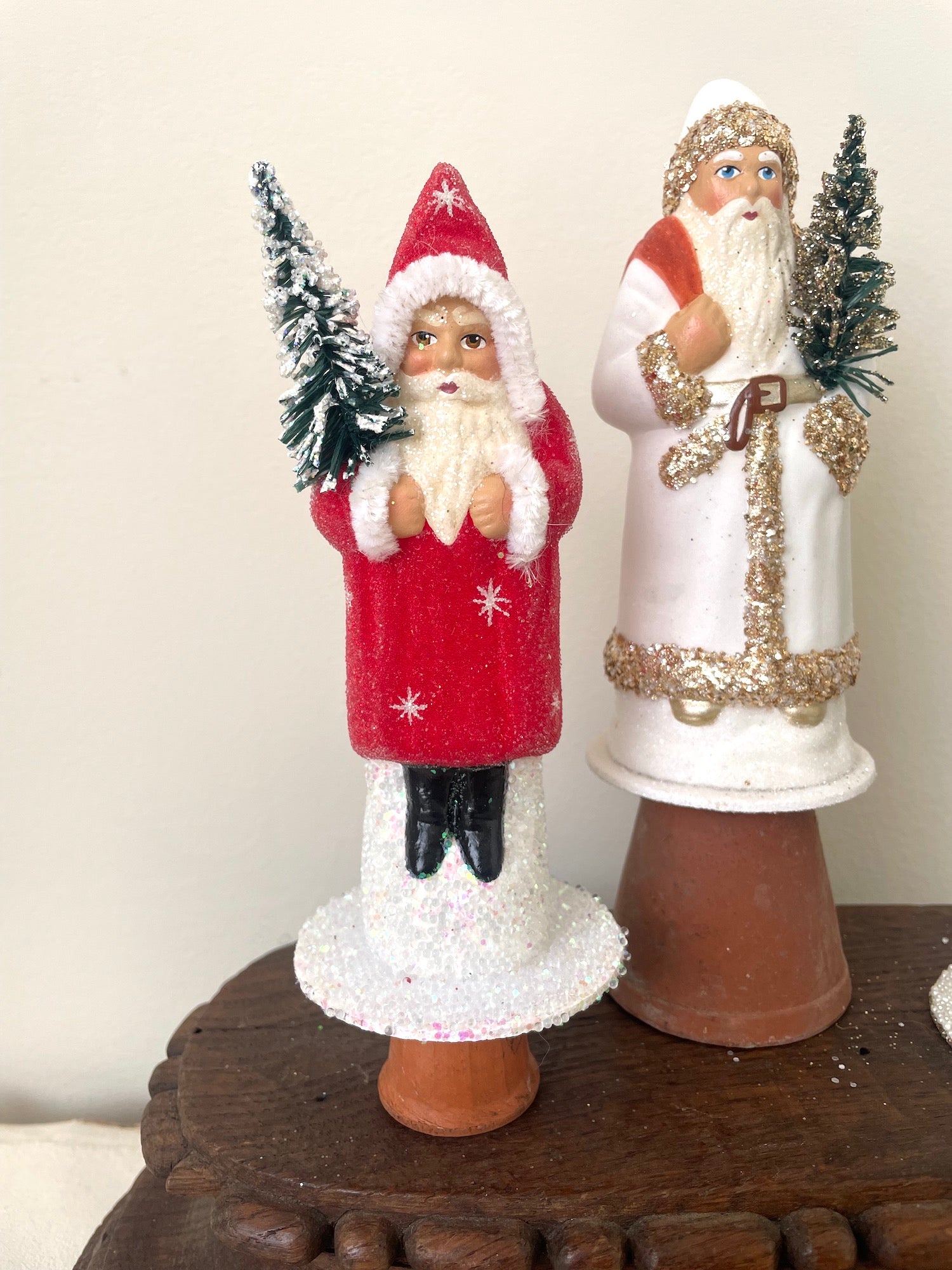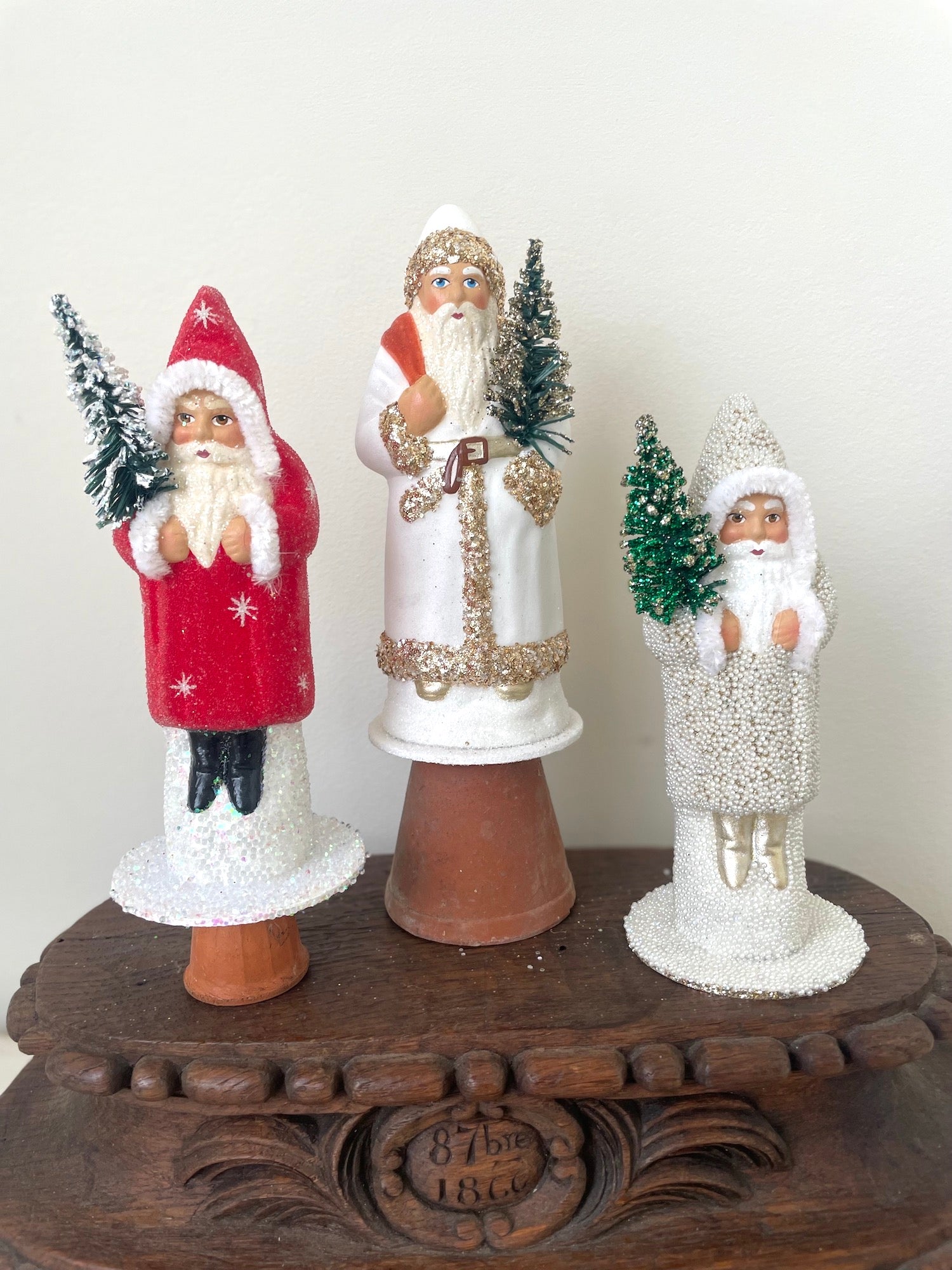 These gorgeous Santas are hand made in Germany by a traditional fourth-generation family using a process that is over 100 years old. They are all hand-painted and decorated with natural materials, often using historical designs, so that these small works of art become sought-after collector's items.