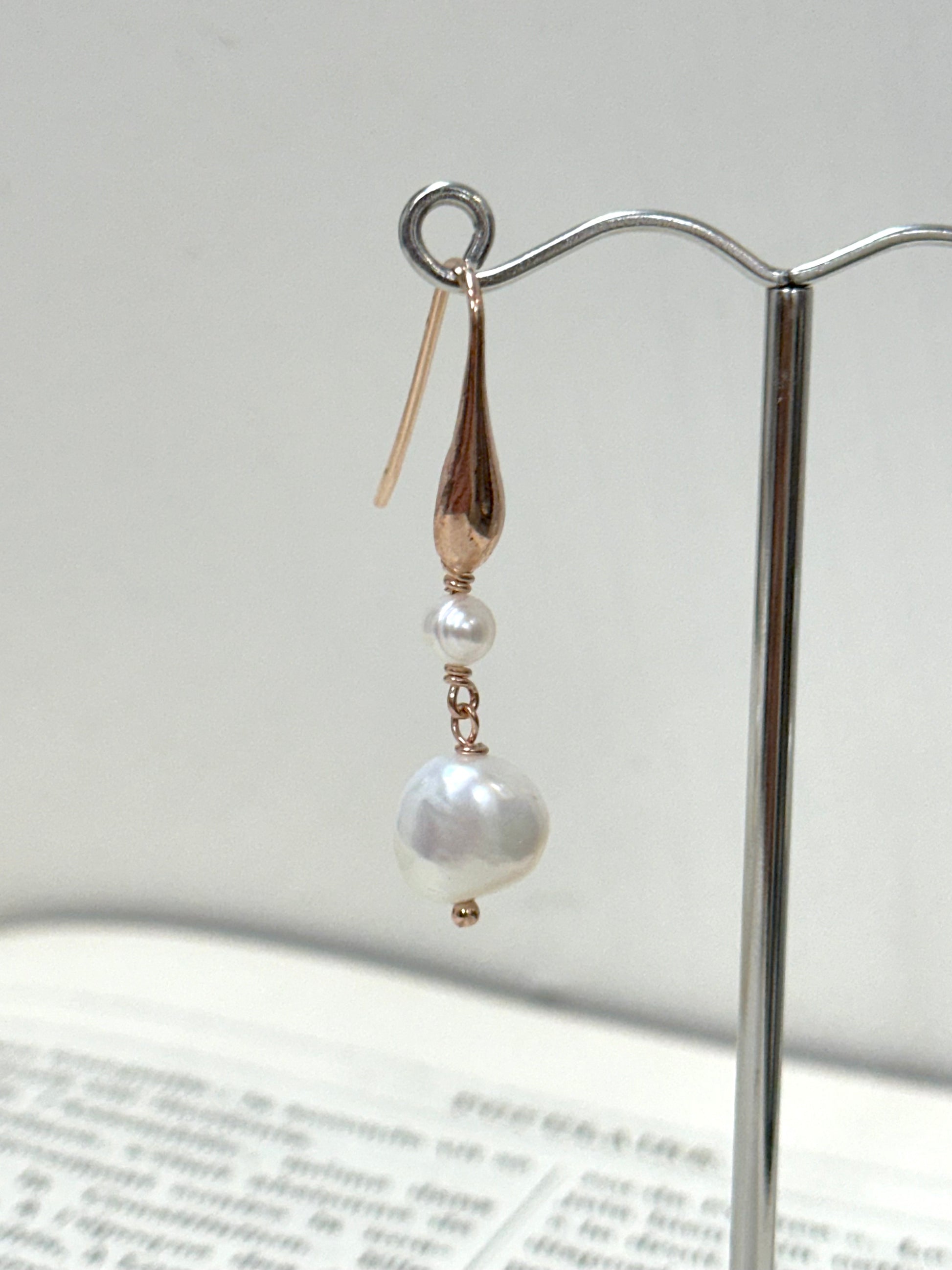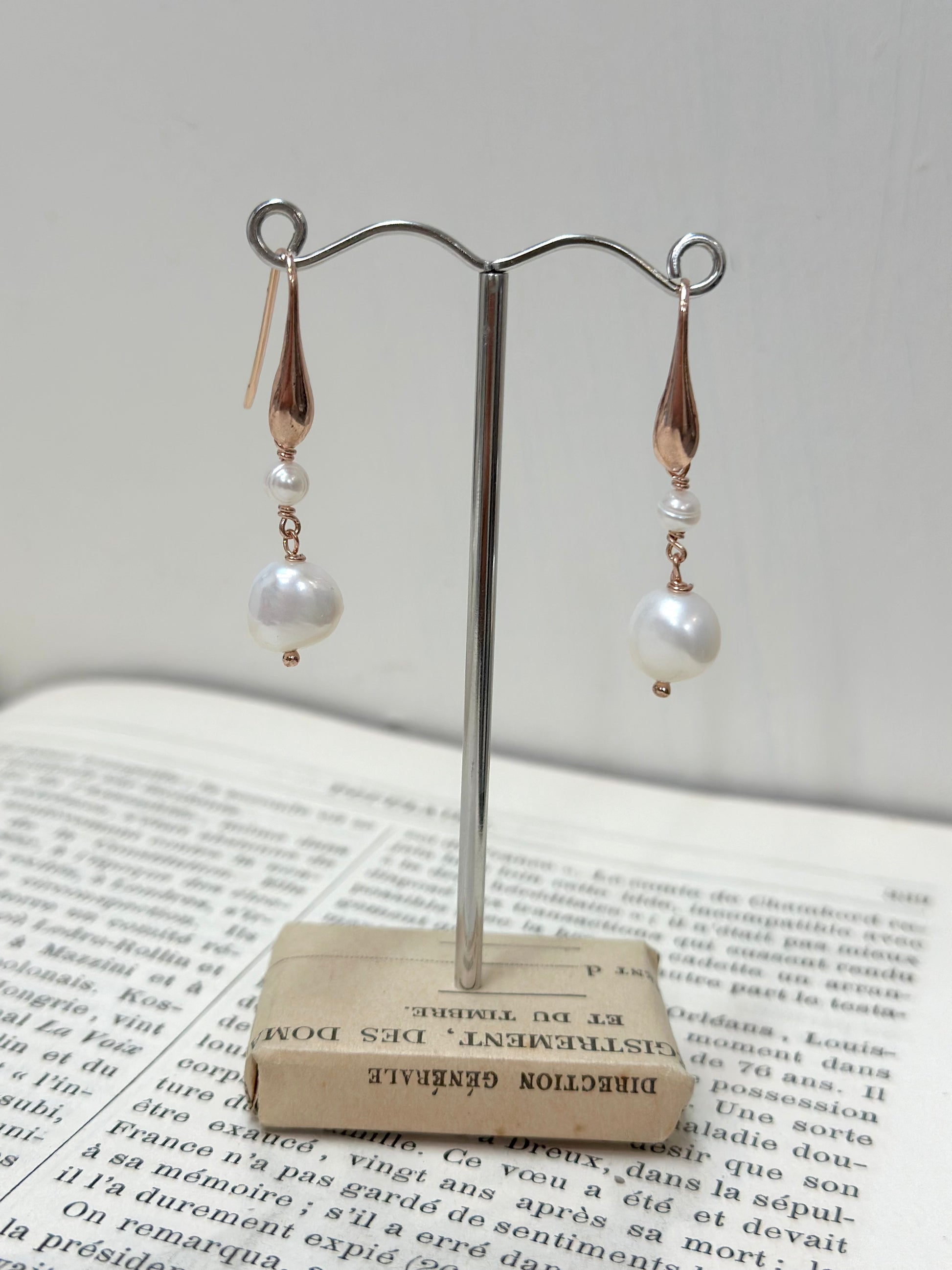 Italian Double Pearl Drop Earrings with irregular cream pearls.