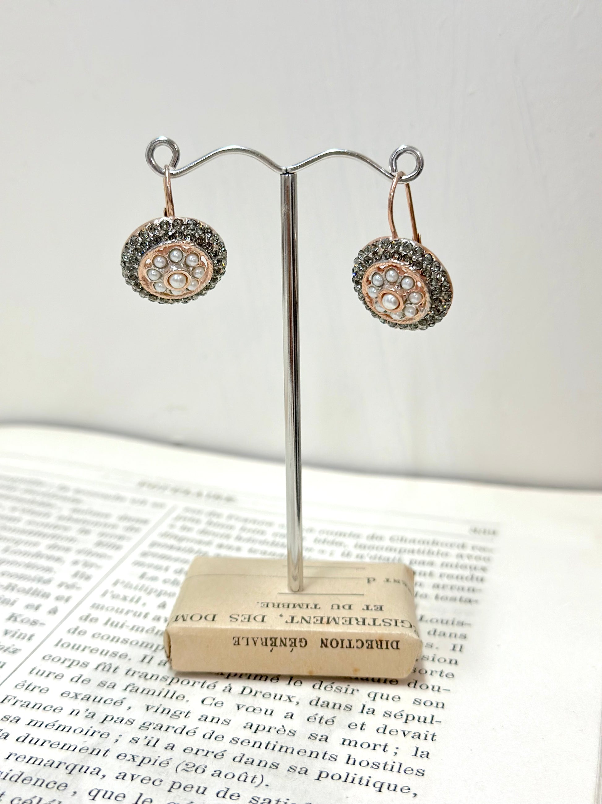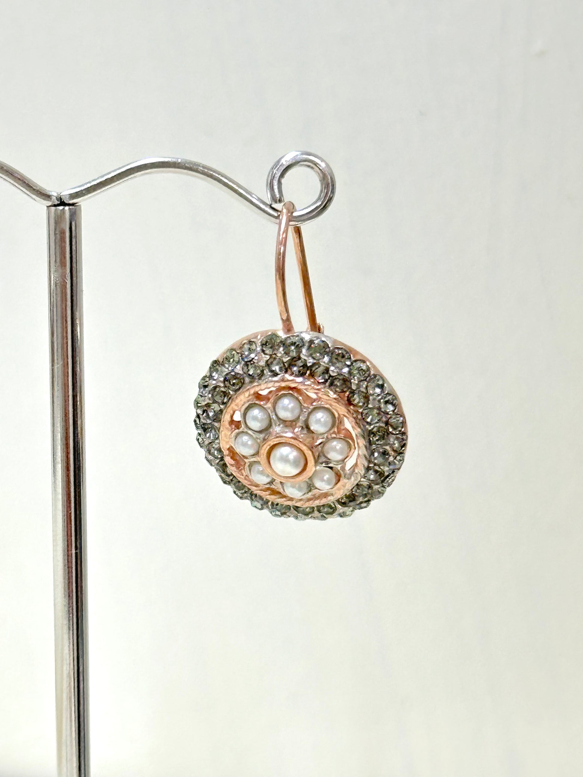18ct Rose gold on 925 Sterling Silver with Swarovski crystal and Pearl centre.