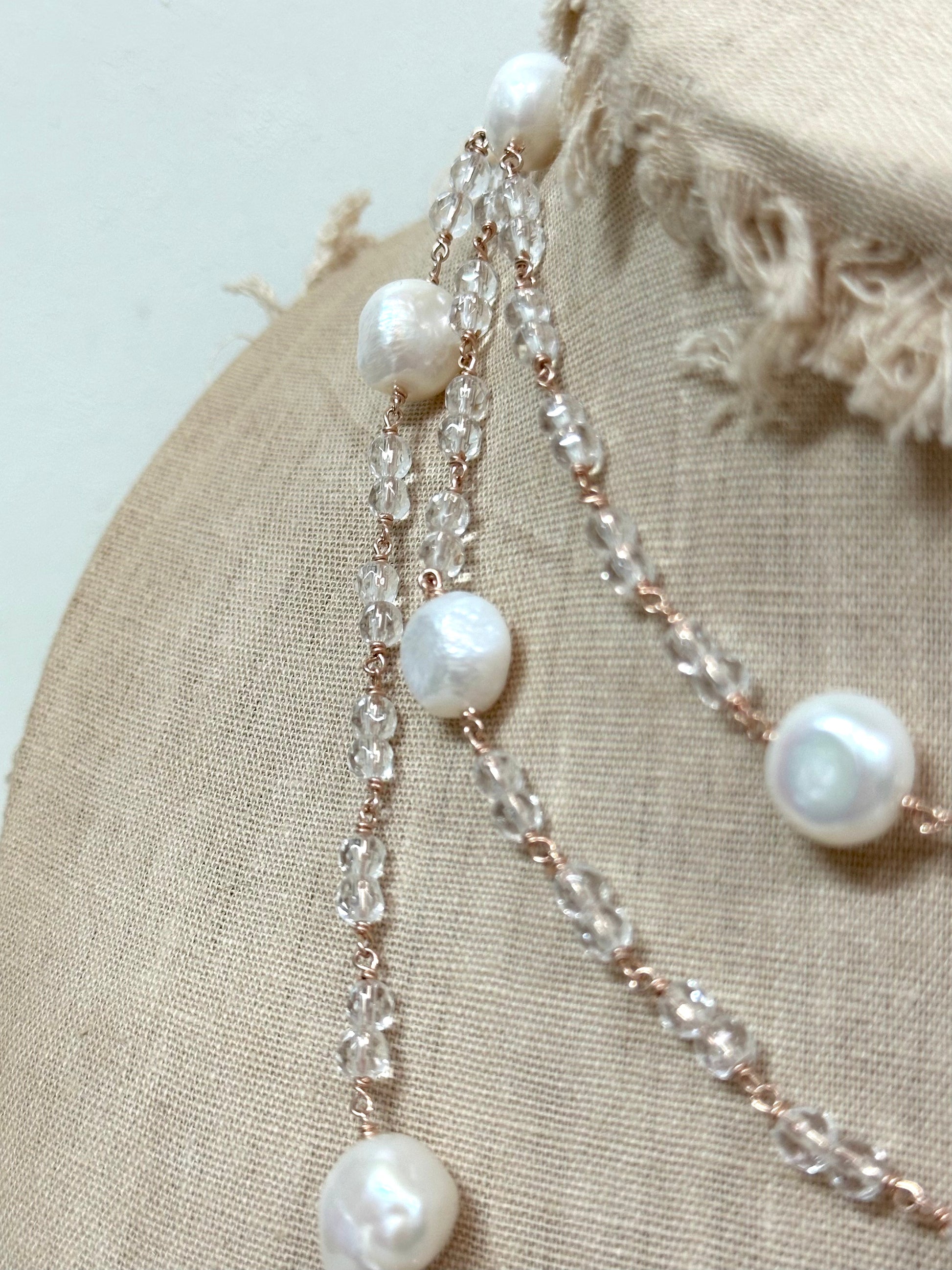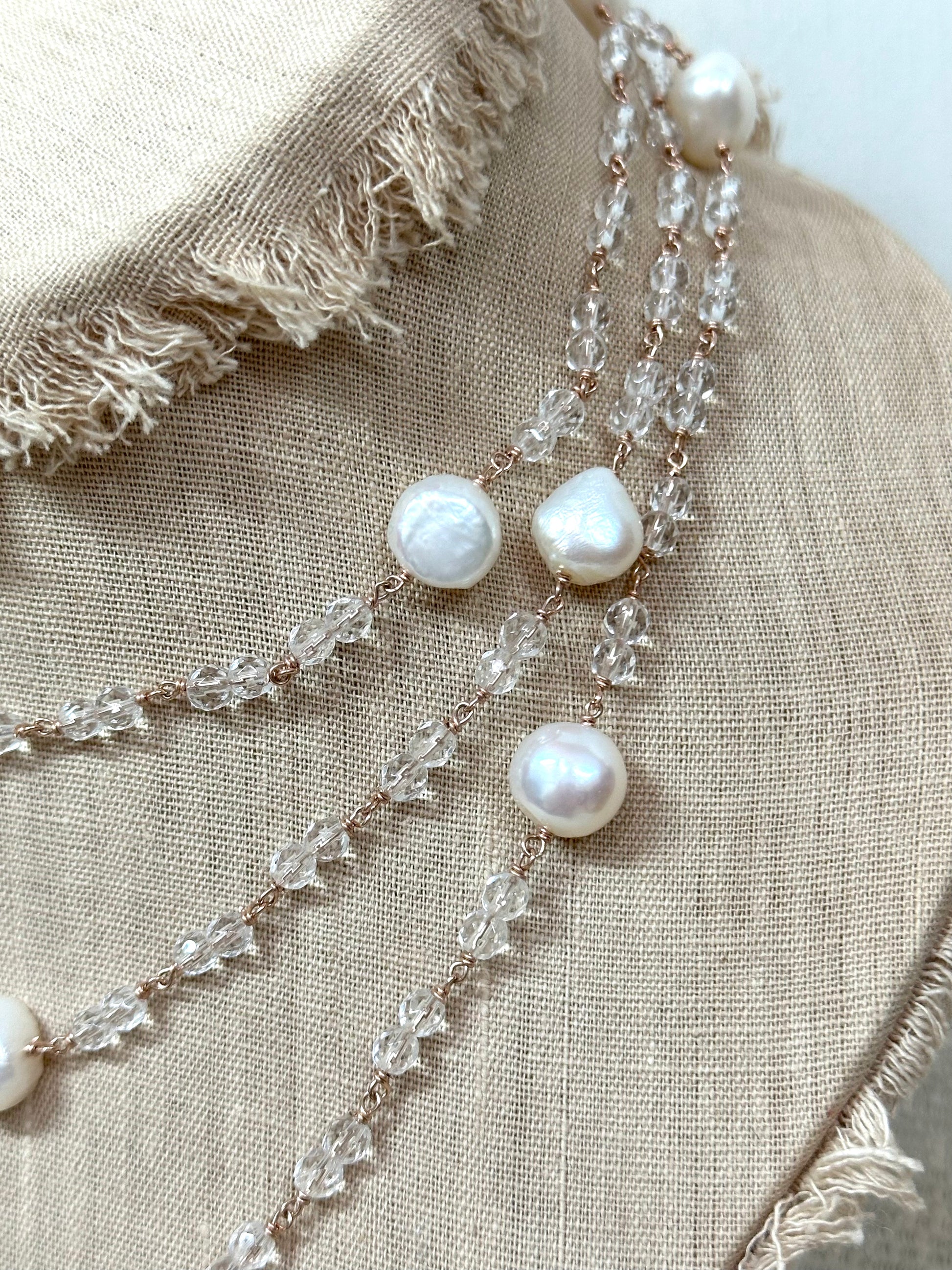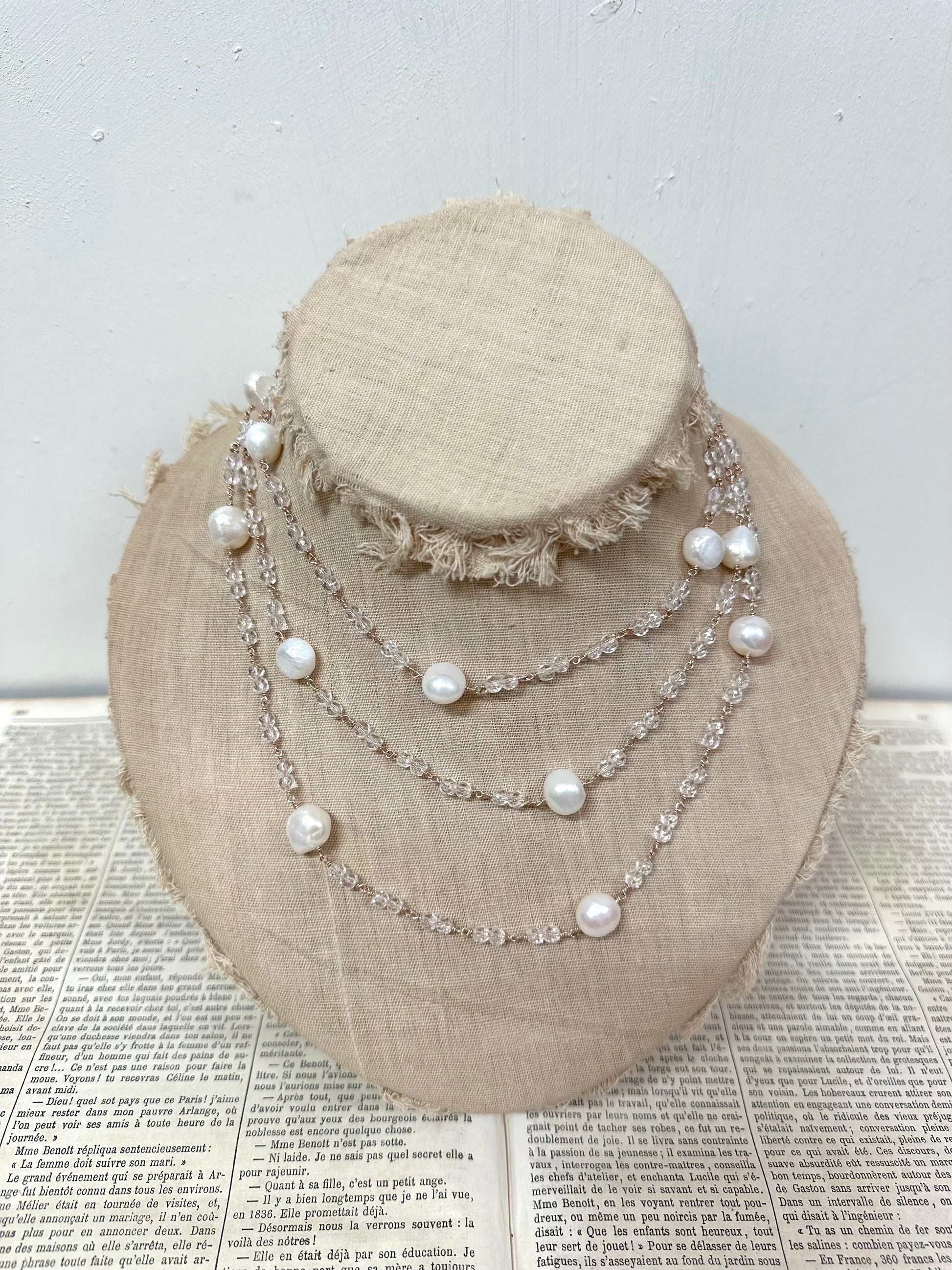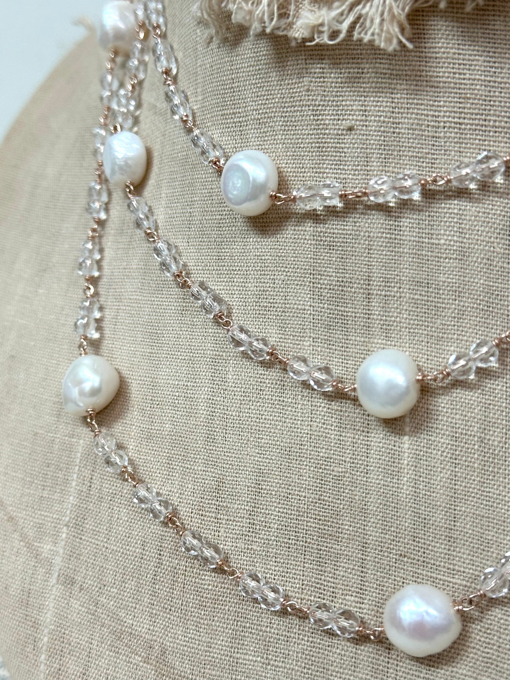 Italian Long Pearl & Crystal Necklace