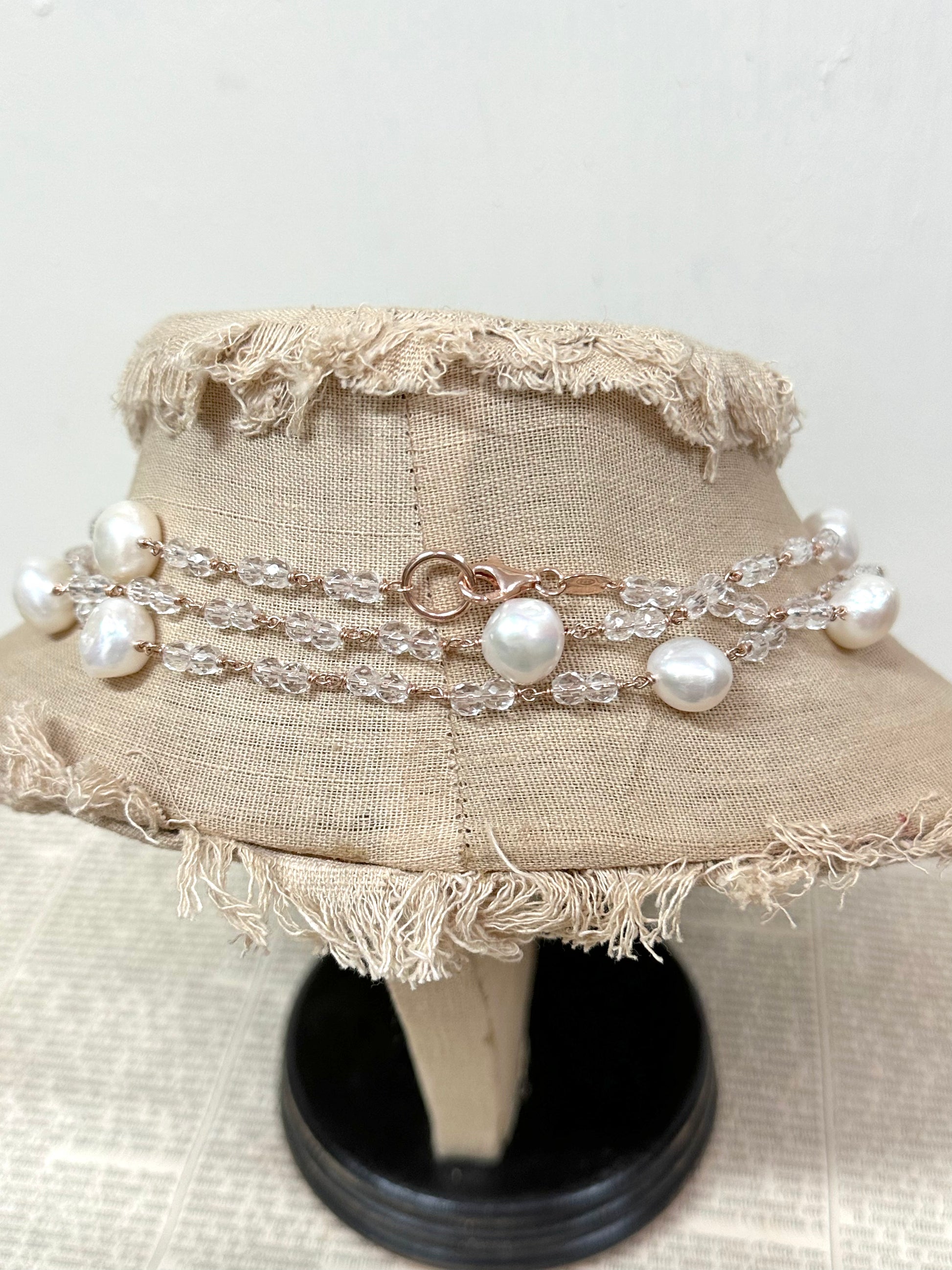 Italian Cream fresh water pearl necklace with crystal beads. A classic piece that will never date.