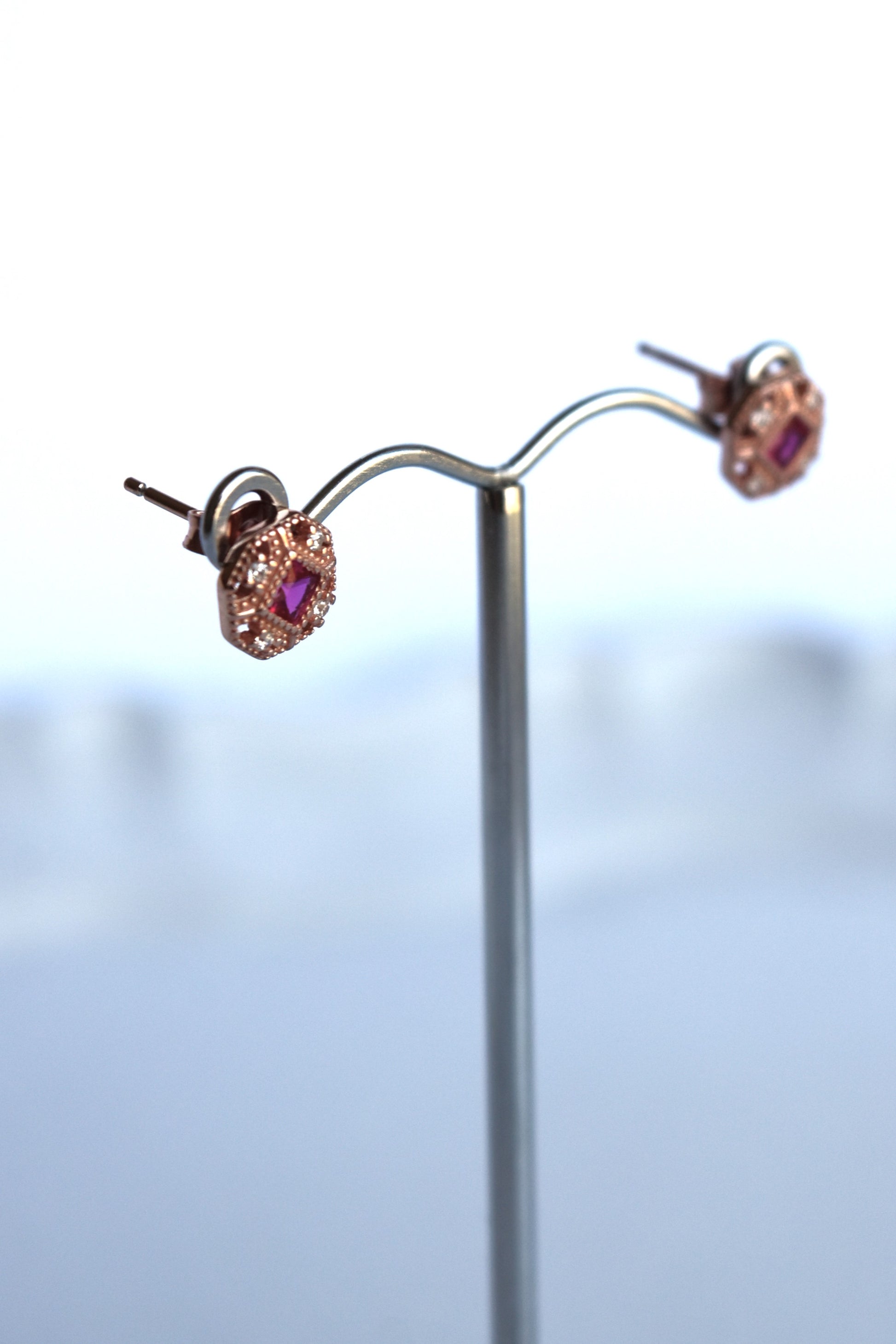 Red cubic zirconia on 18ct rose gold over 925 sterling silver.