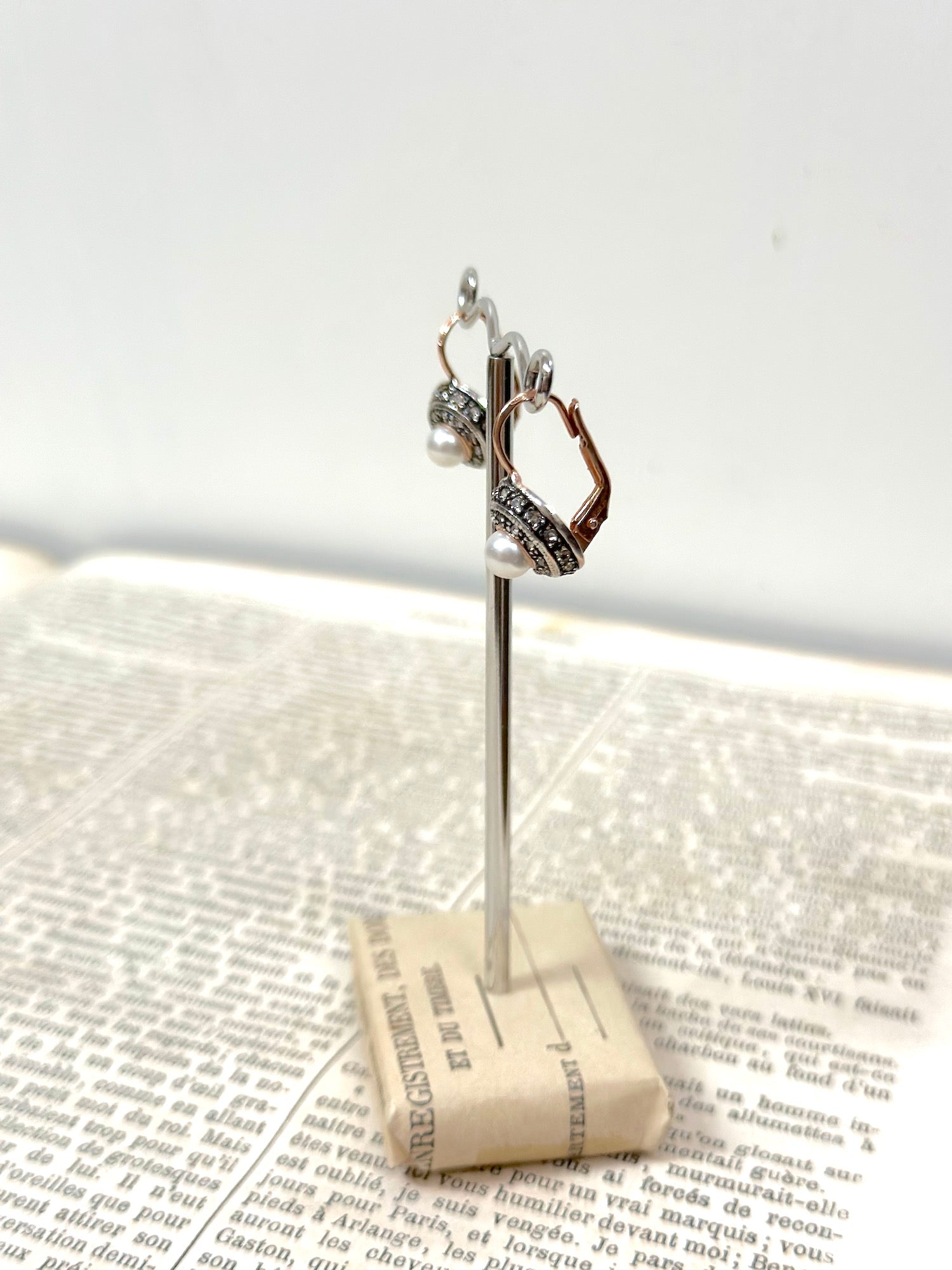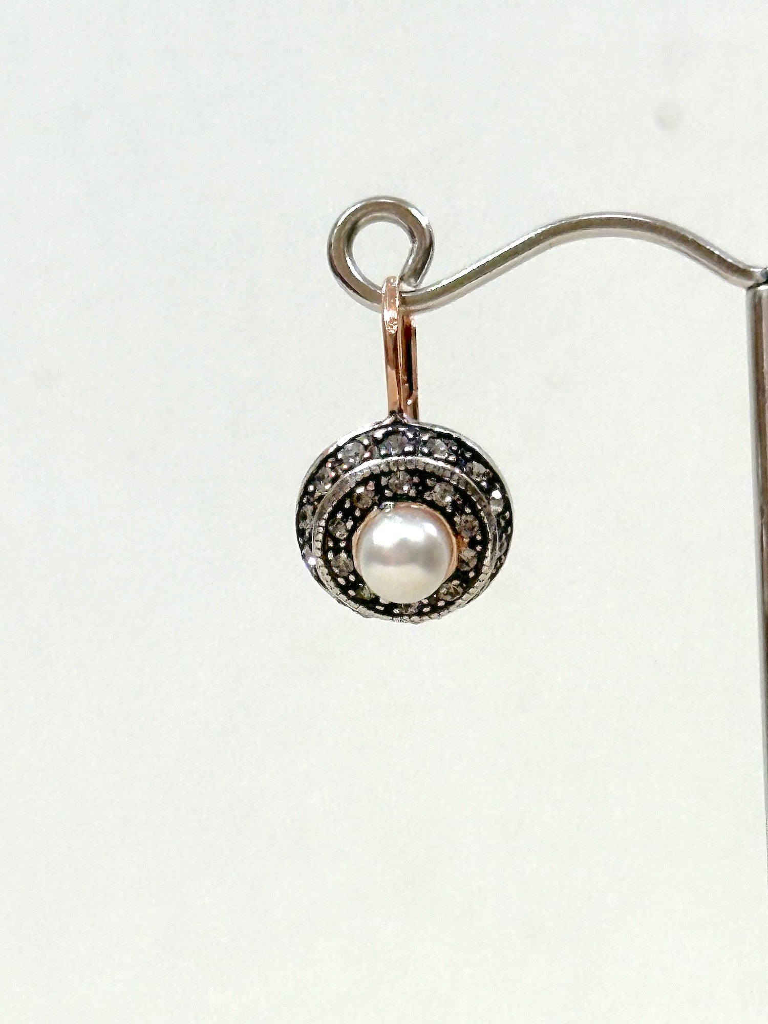 Italian Round Earrings With Small Crystals And Large Pearl Centre
