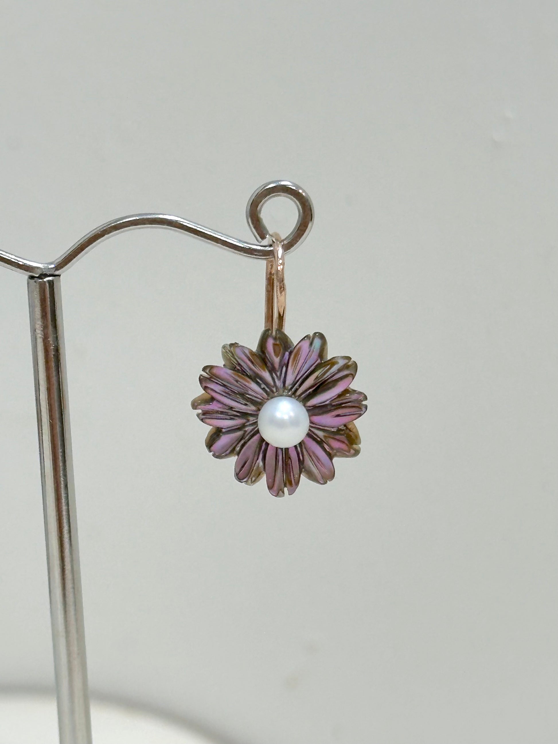 Italian Small Grey Mother of Pearl Daisy Earrings