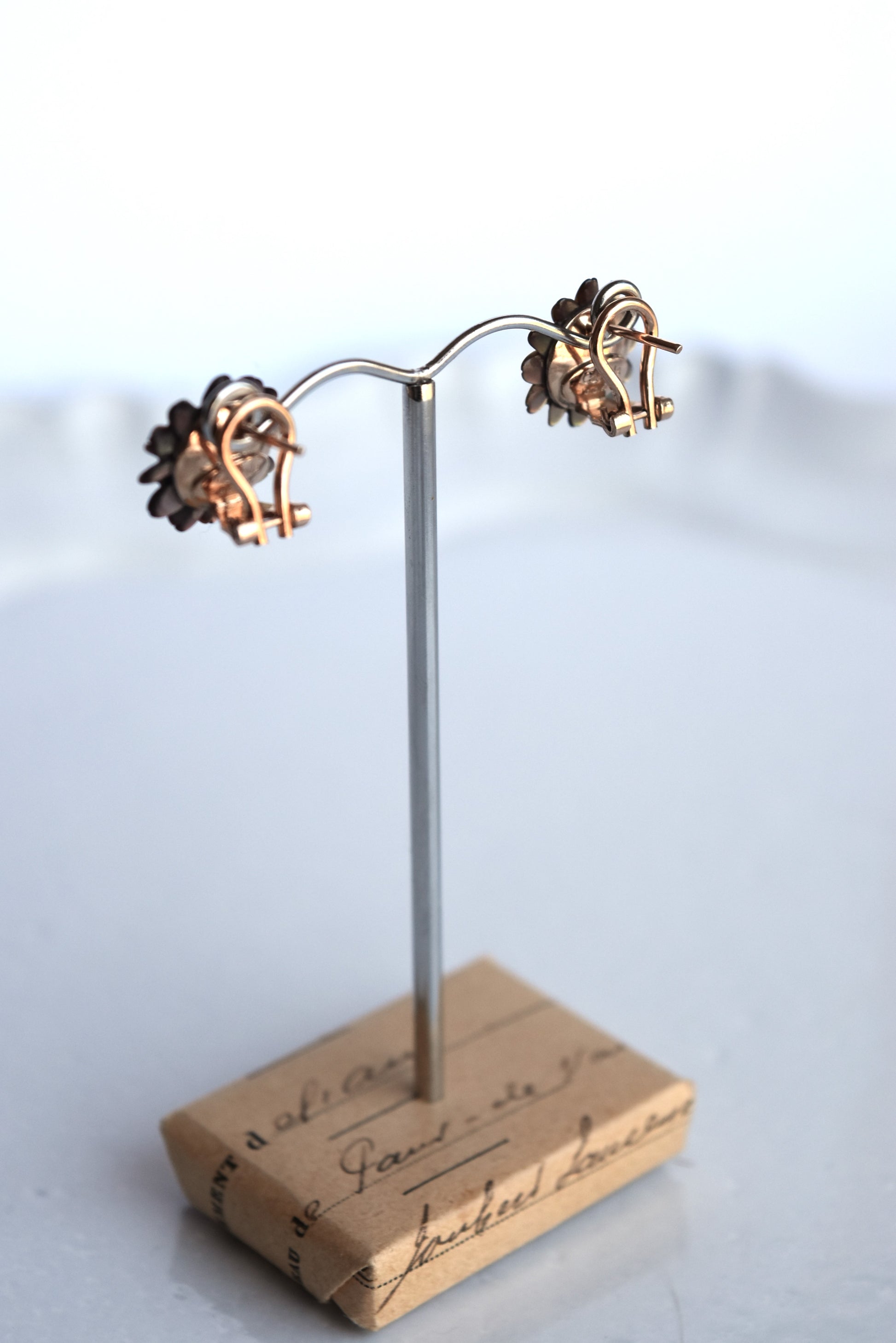 Italian Small Grey Mother-of-Pearl Flower Earrings Stud