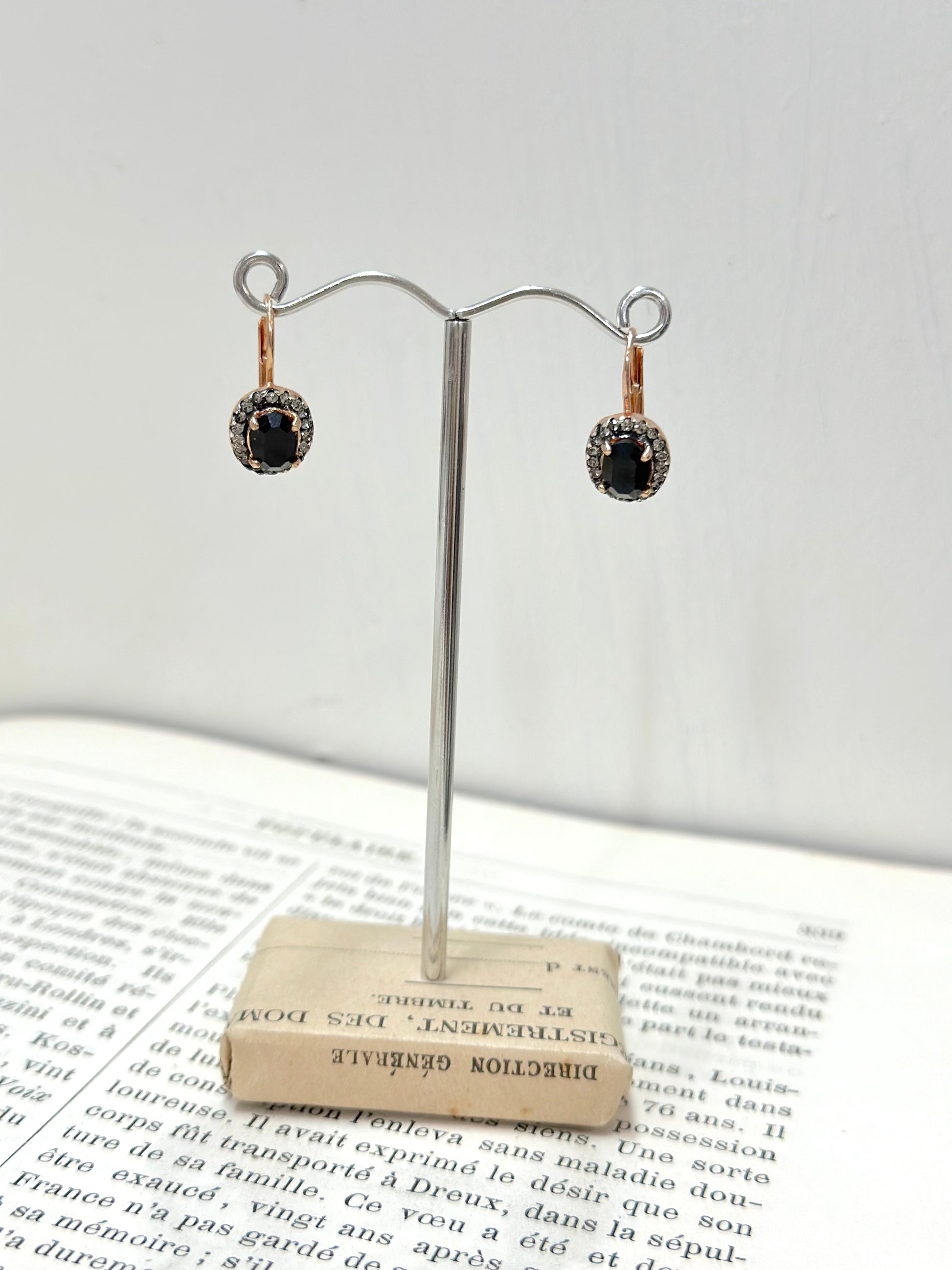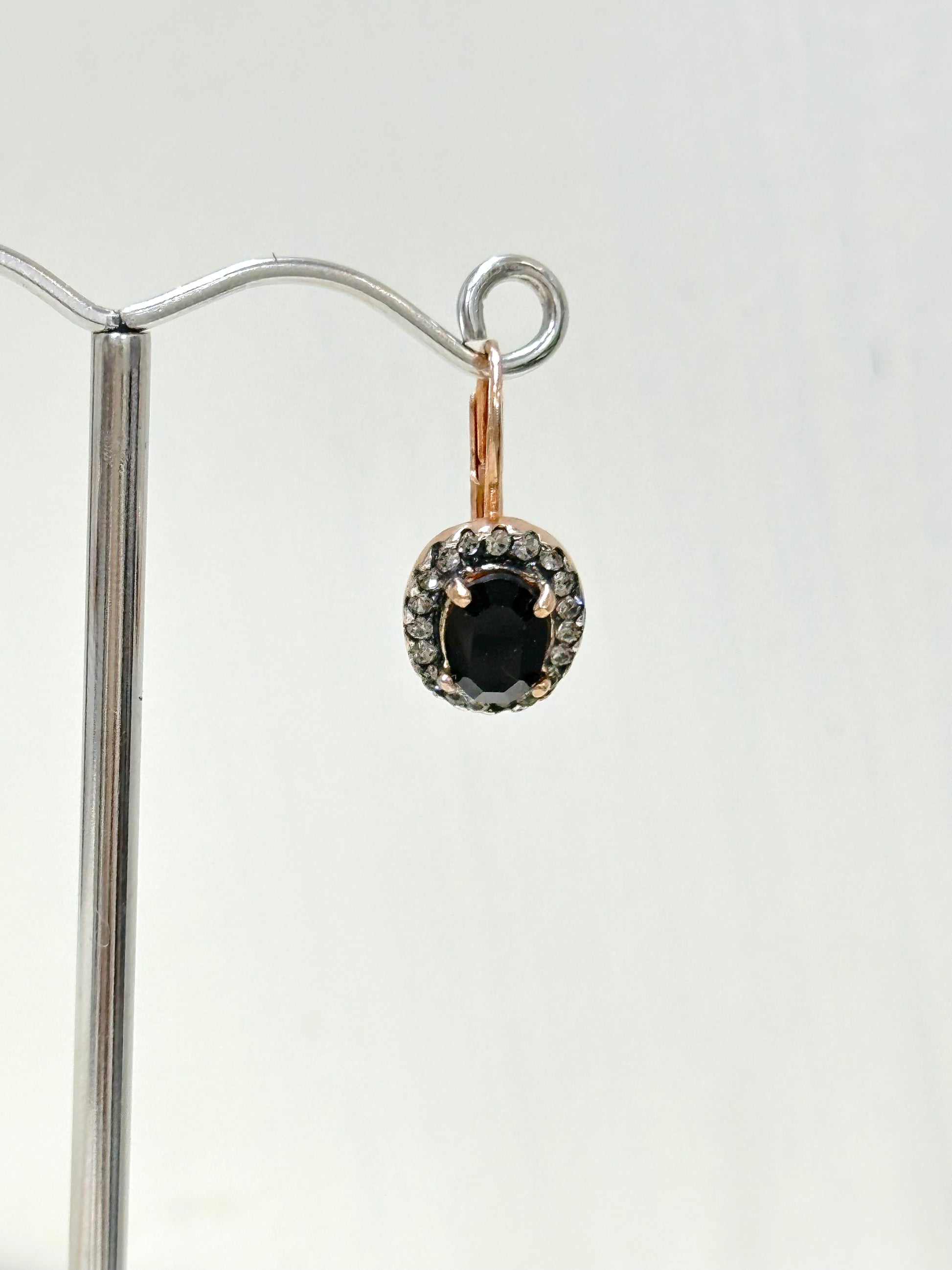 Small earrings with Onyx centre stone and crystal surround on 18ct rose gold over 925 sterling silver.