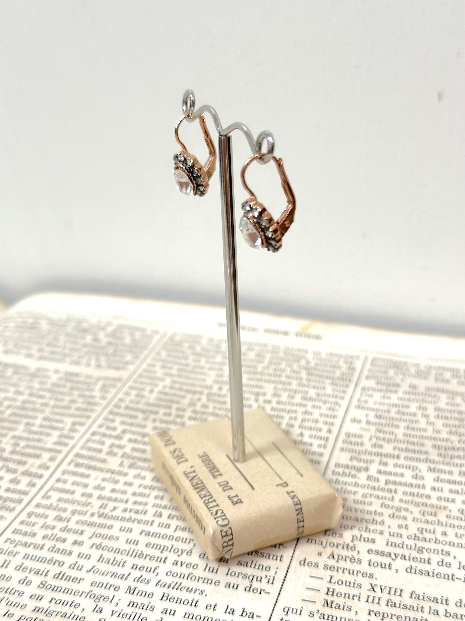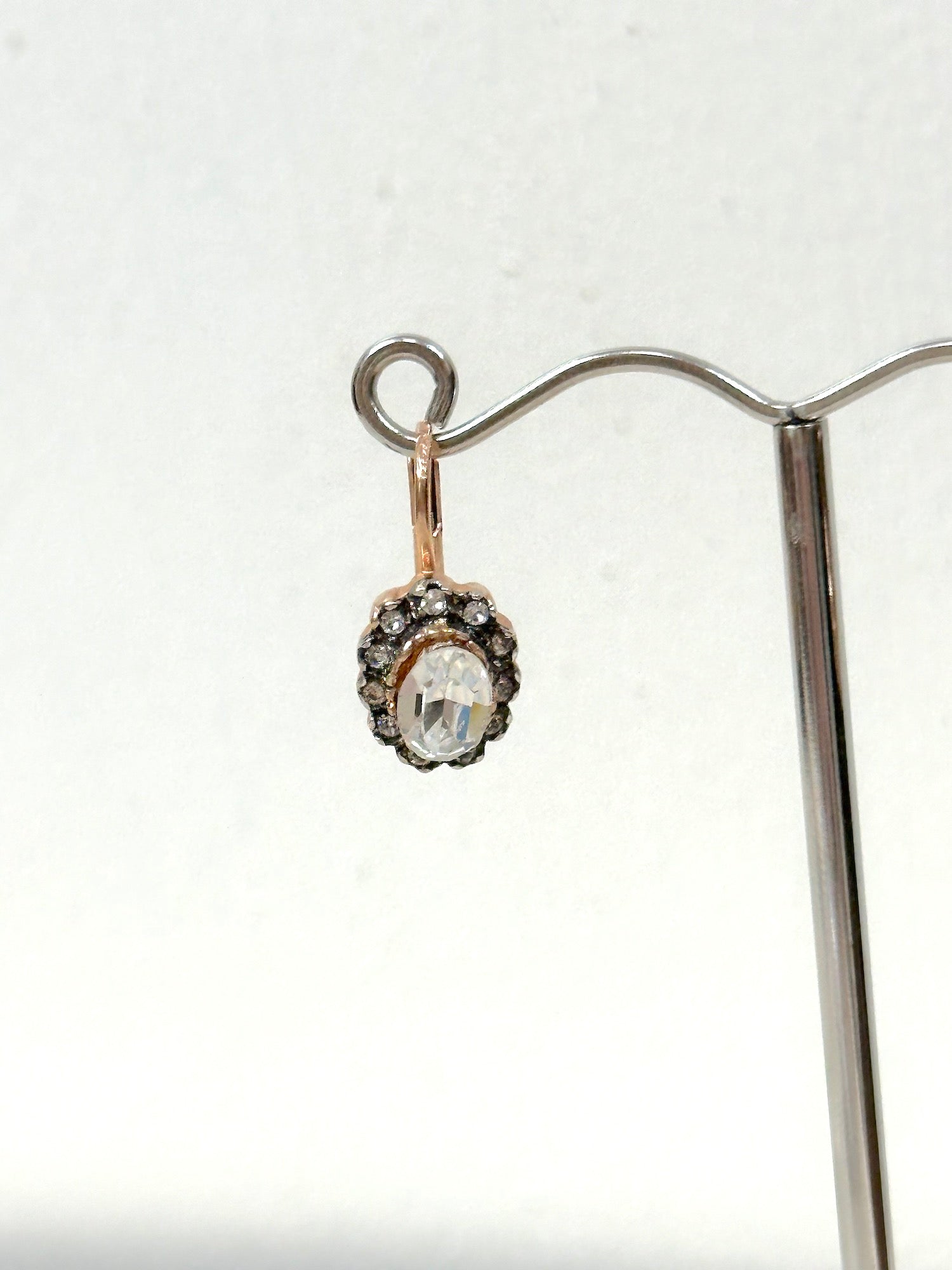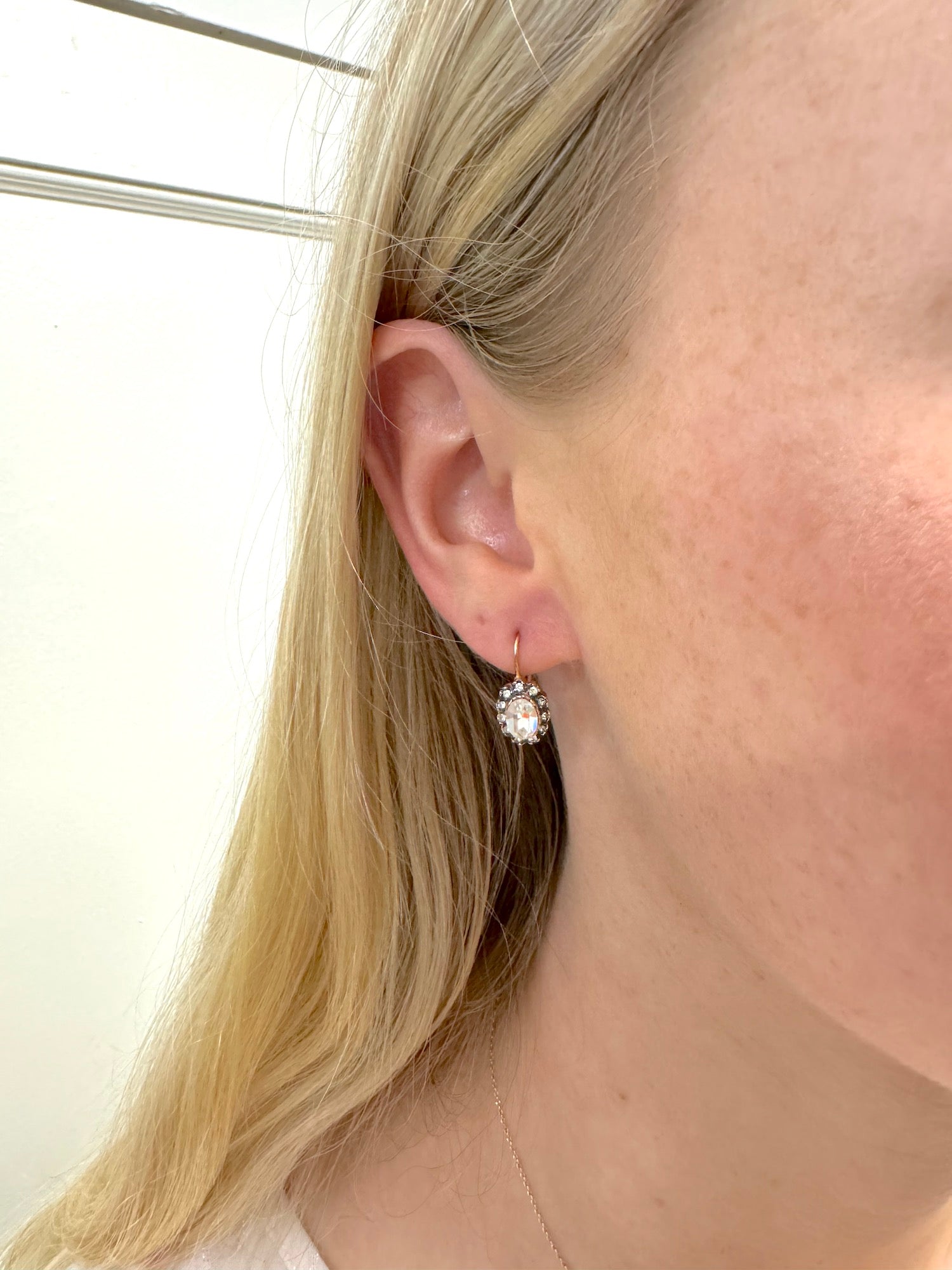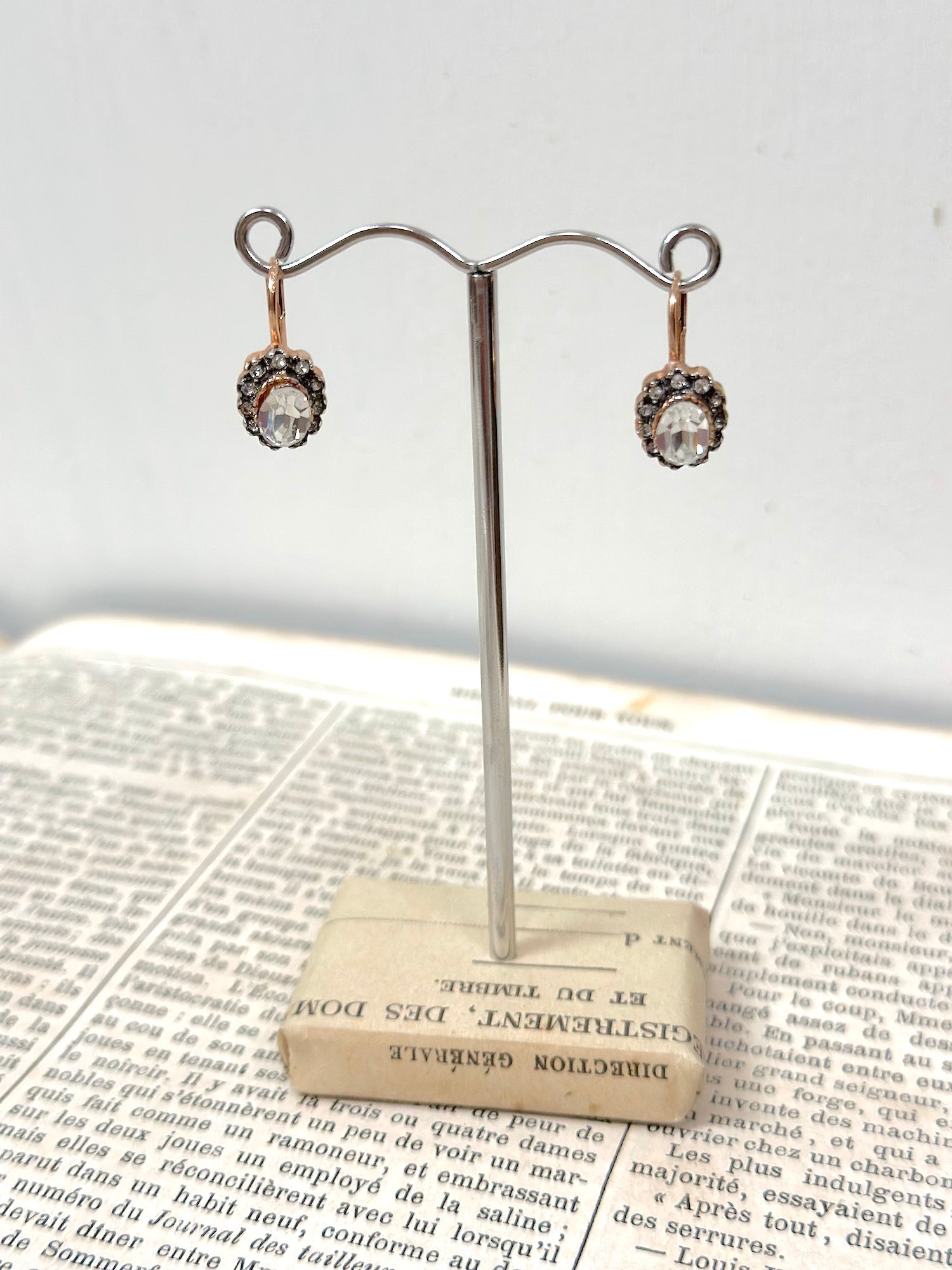 Italian Small Oval Earrings With Large Bright Crystal Centre