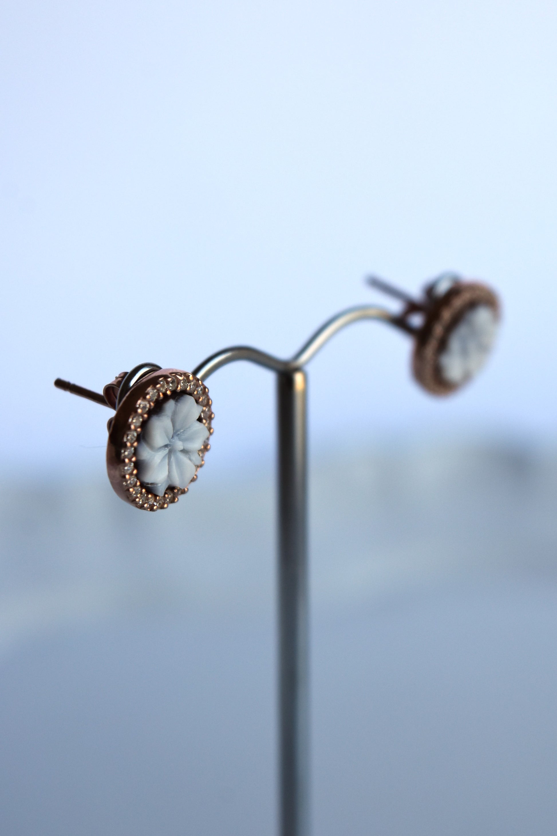 Round Cameo Flower Earrings with cubic zirconia surround.