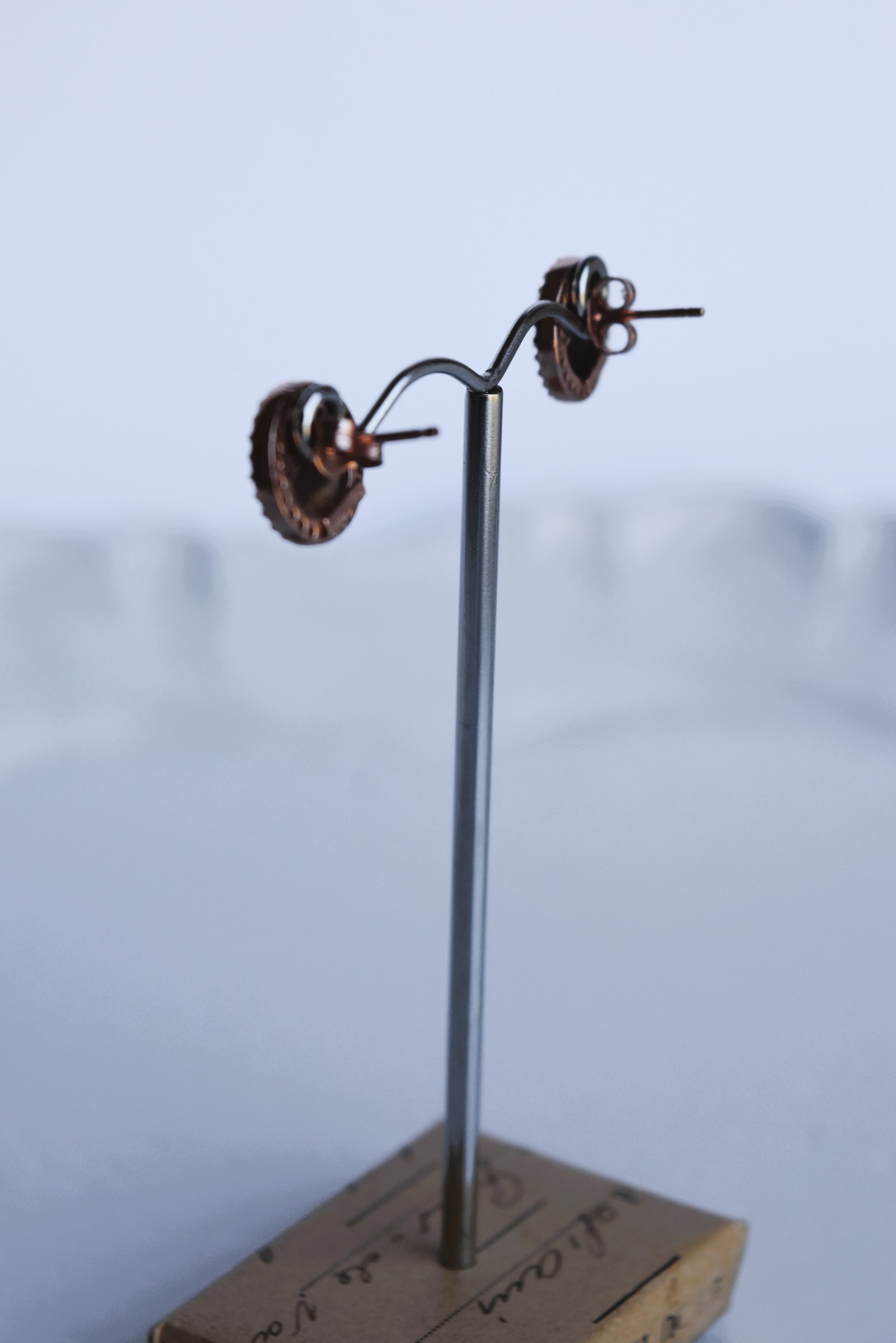18ct Rose gold on 925 sterling silver. 12mm diameter. Lever back.