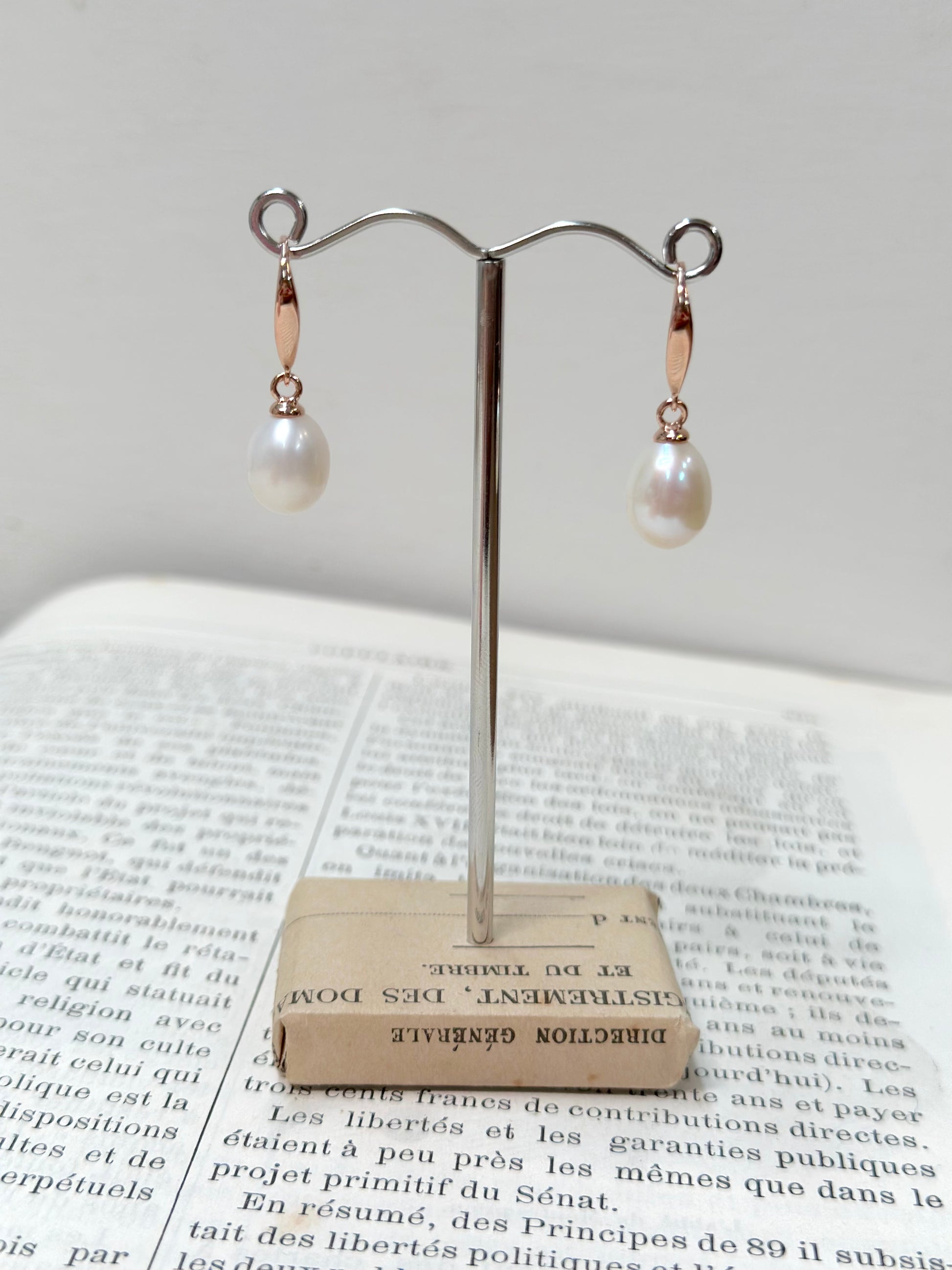 White freshwater pearl & 18ct rose gold, 925 sterling silver.