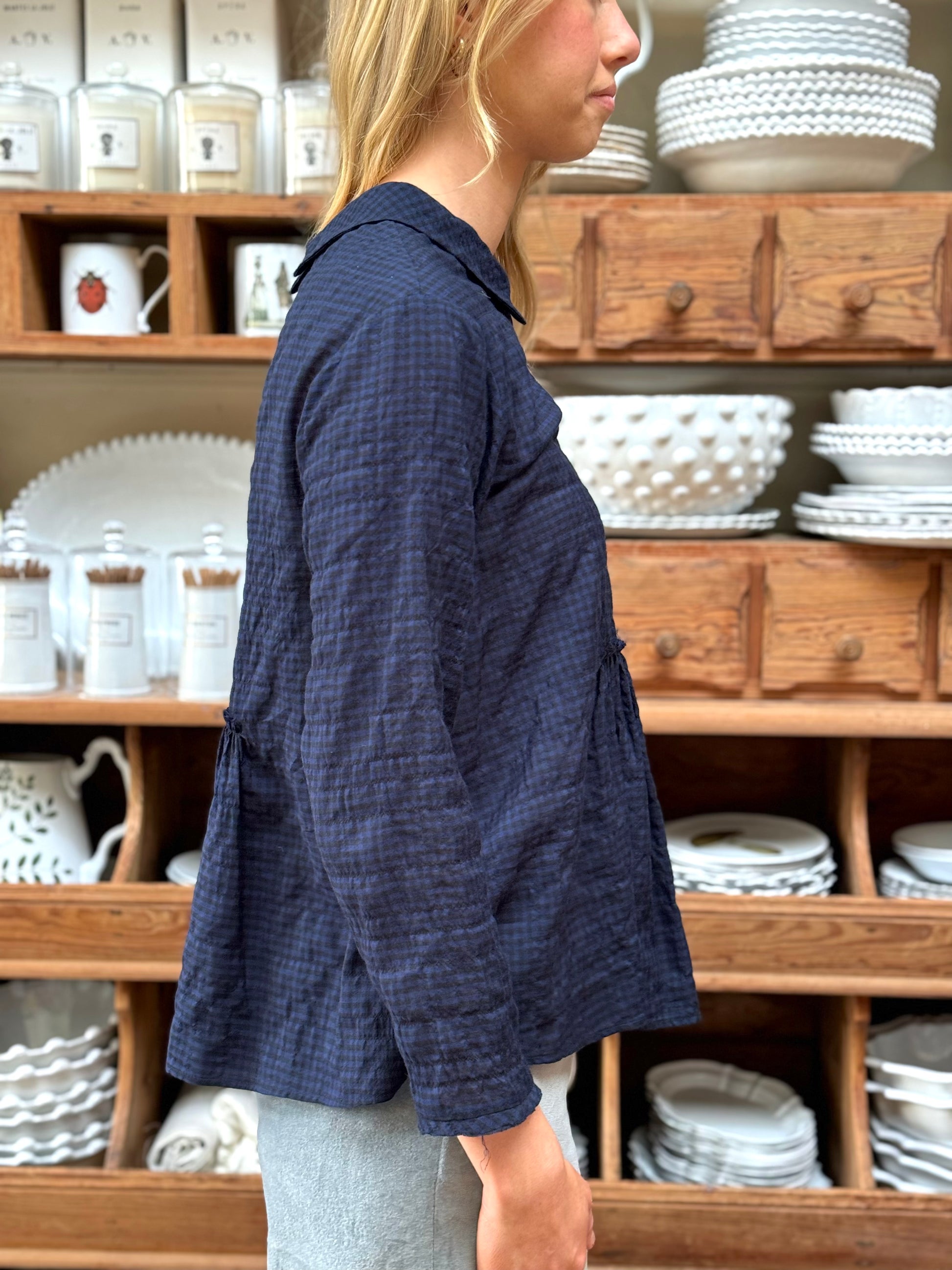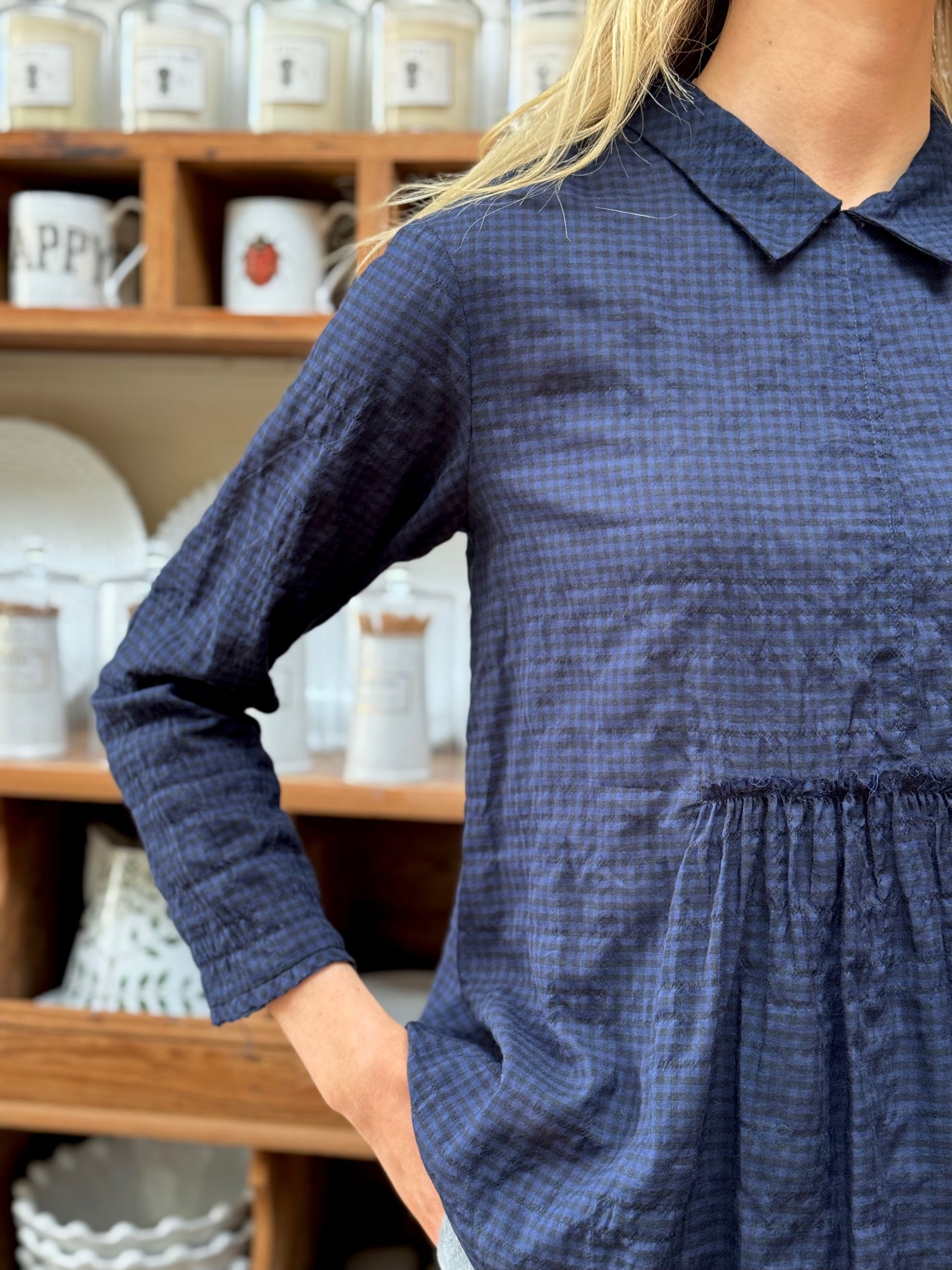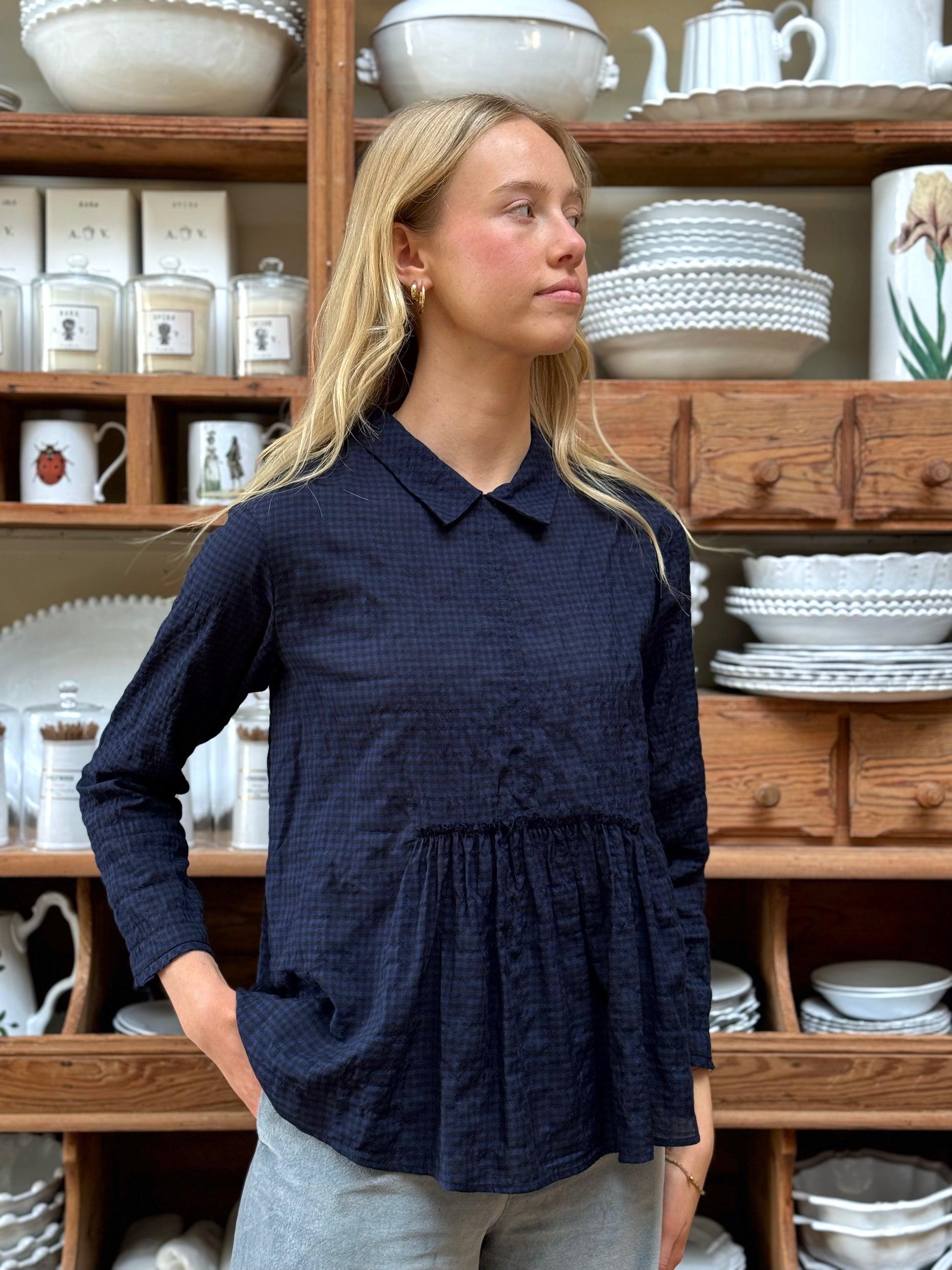 Minina Blouse With Collar - Navy Check