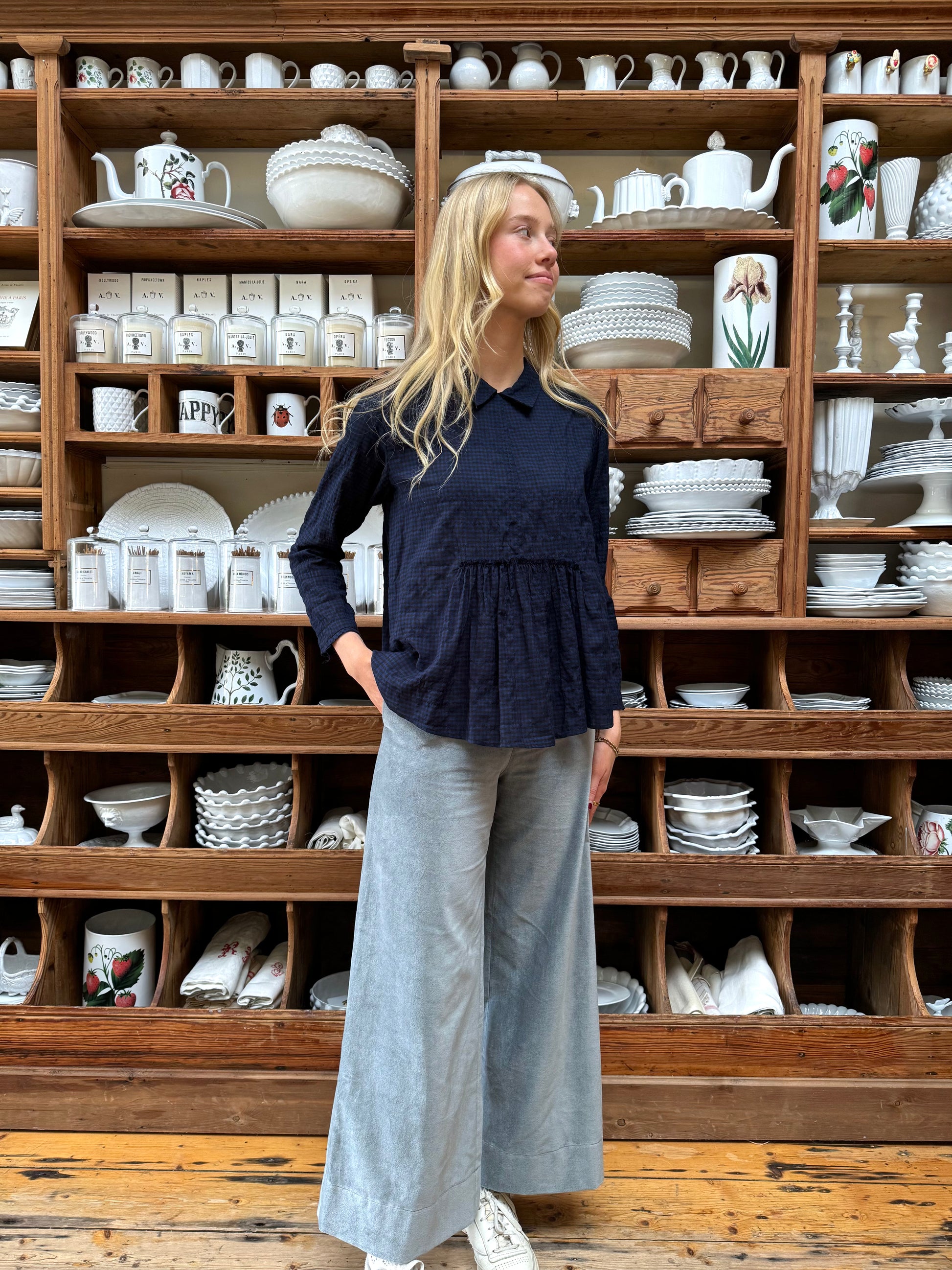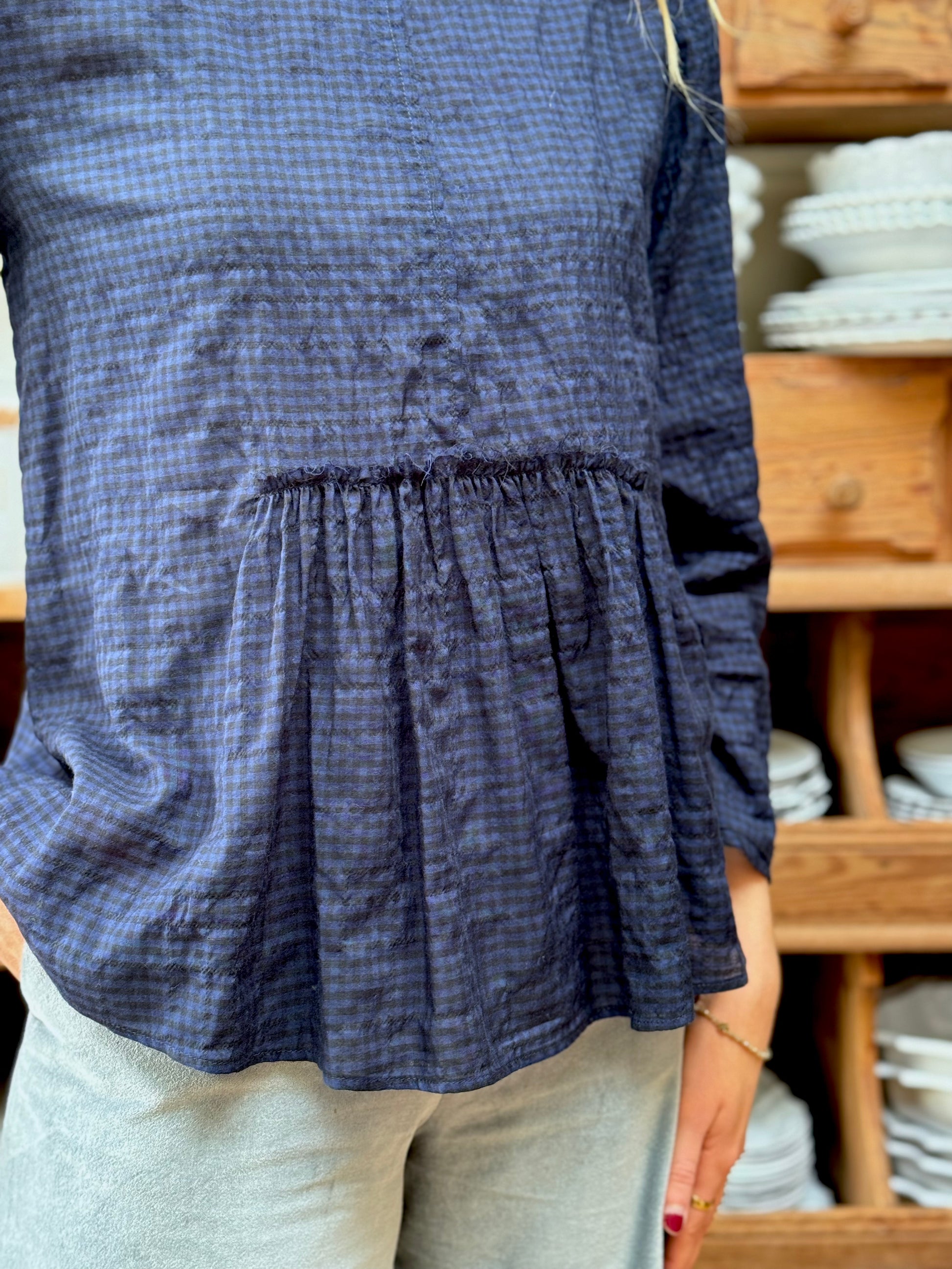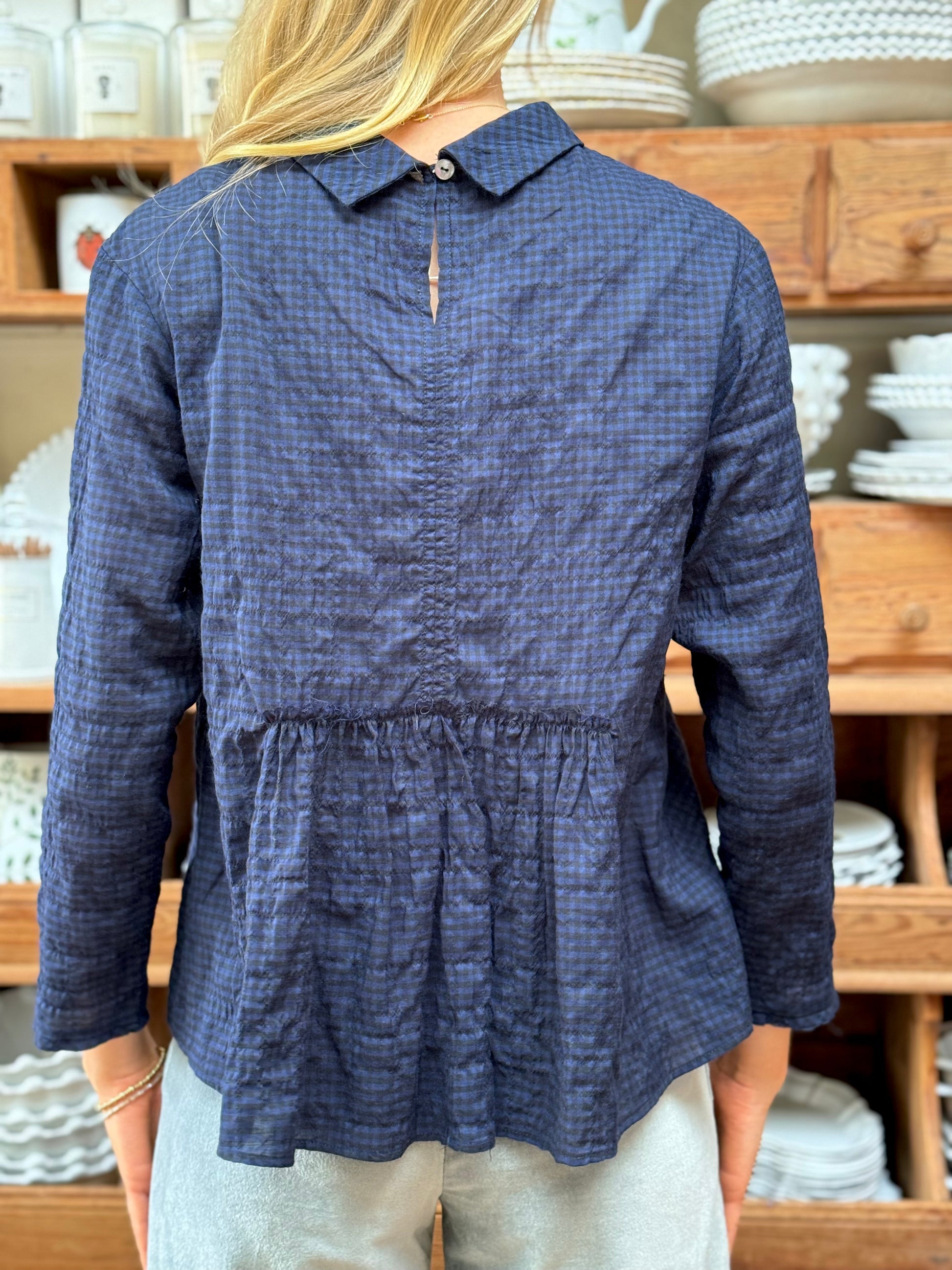 Minina Blouse With Collar - Navy Check