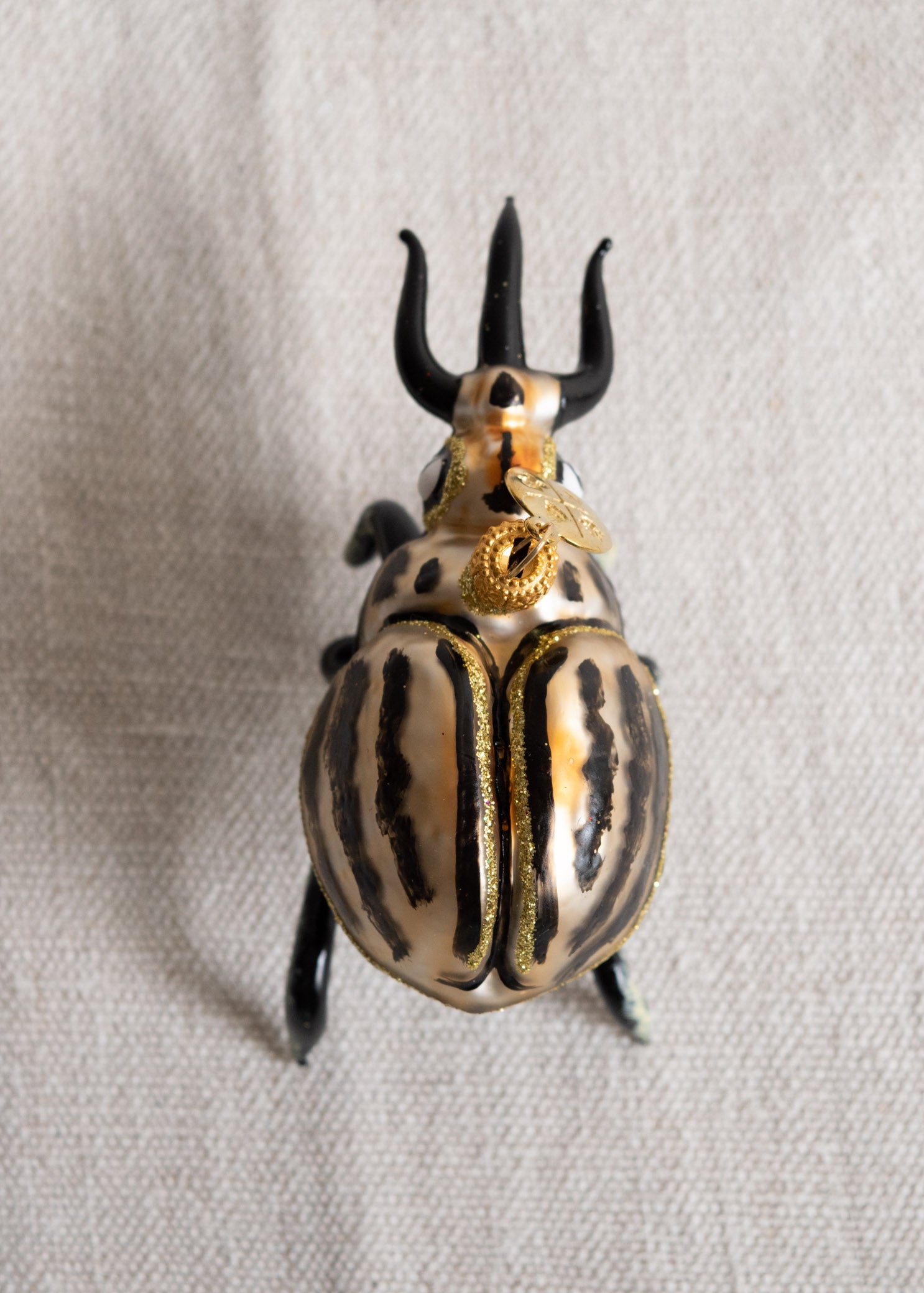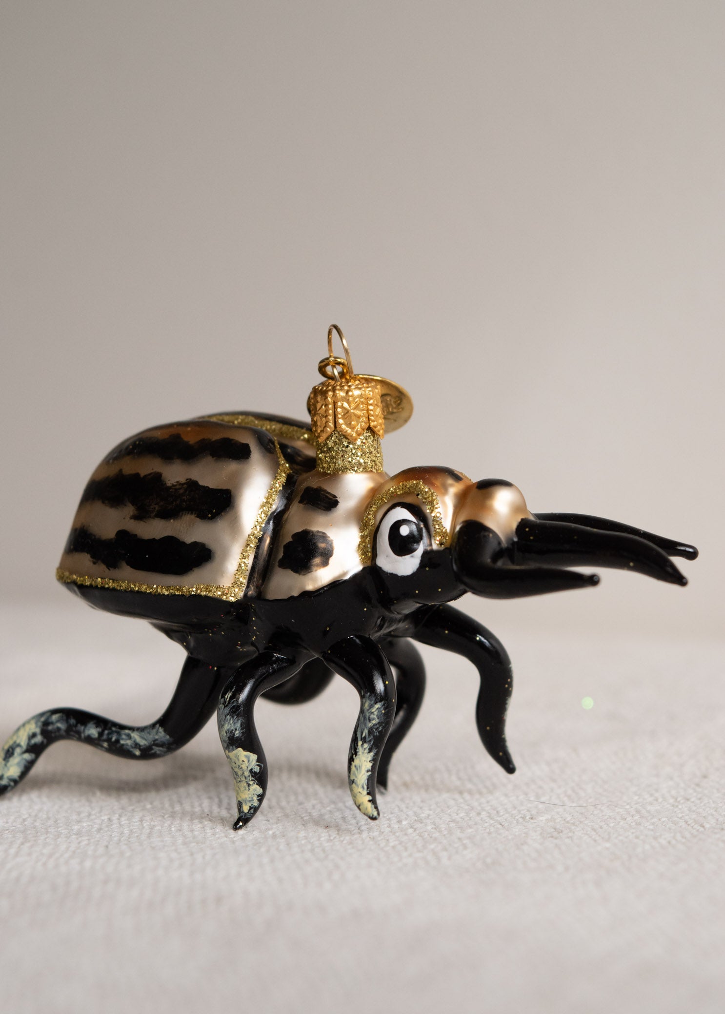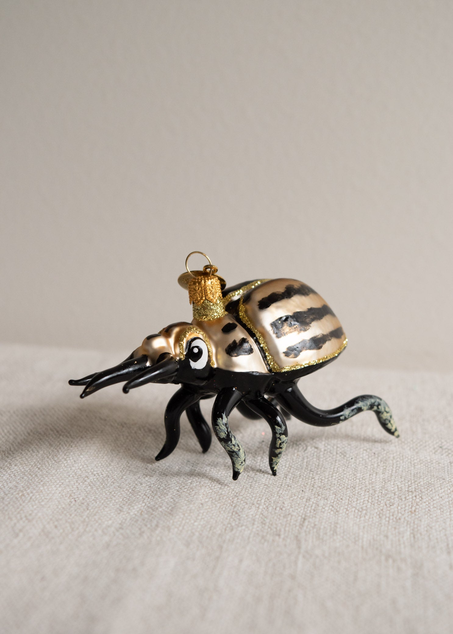 Polish Glass Christmas Ornament - Black & Gold Beetle