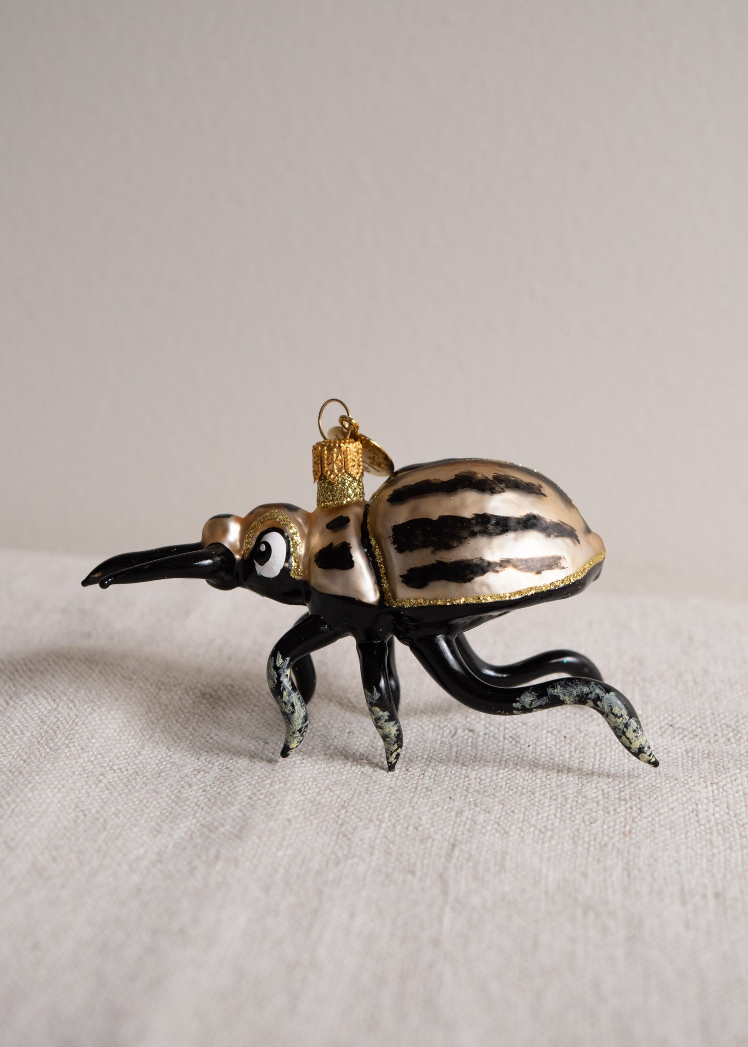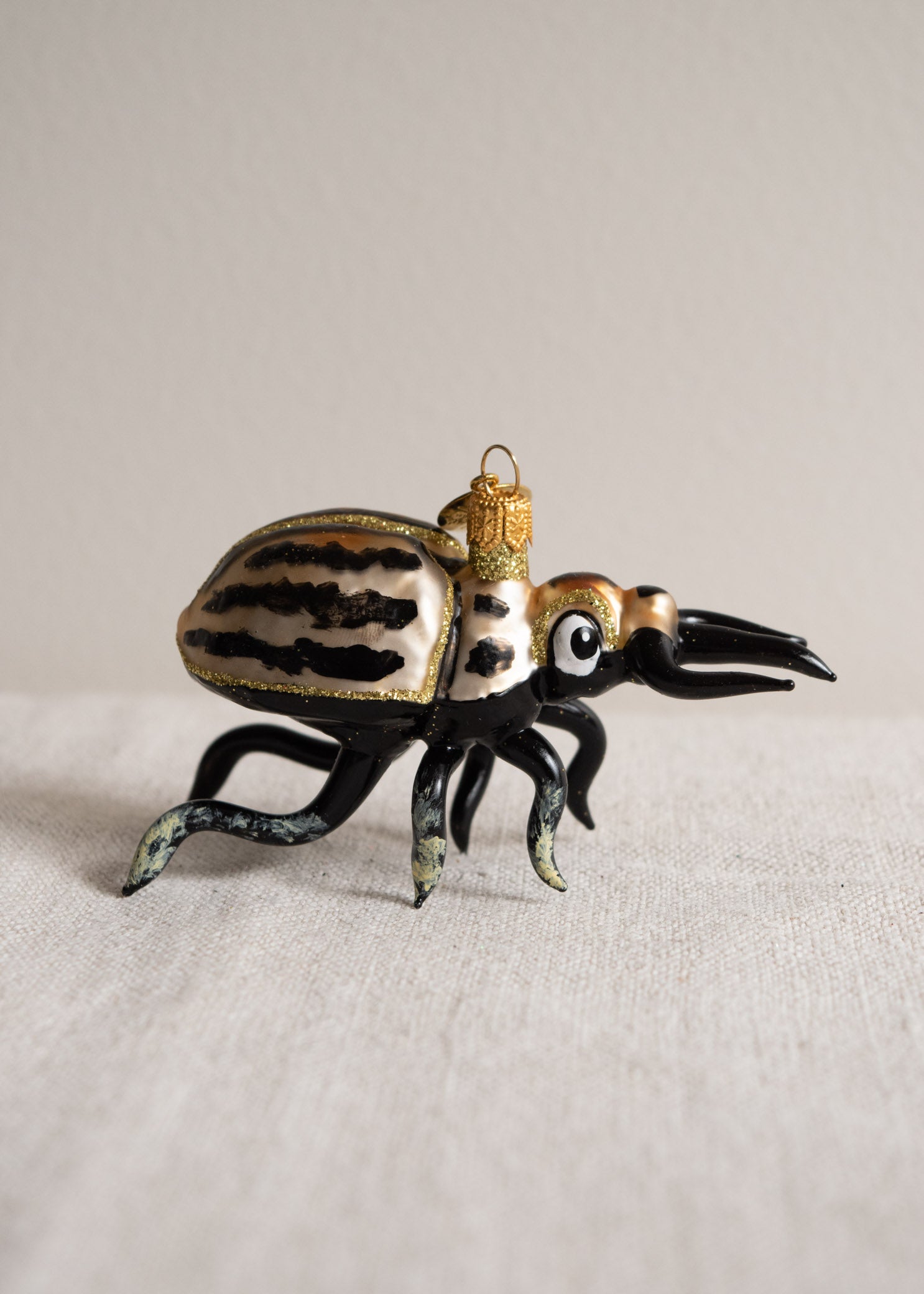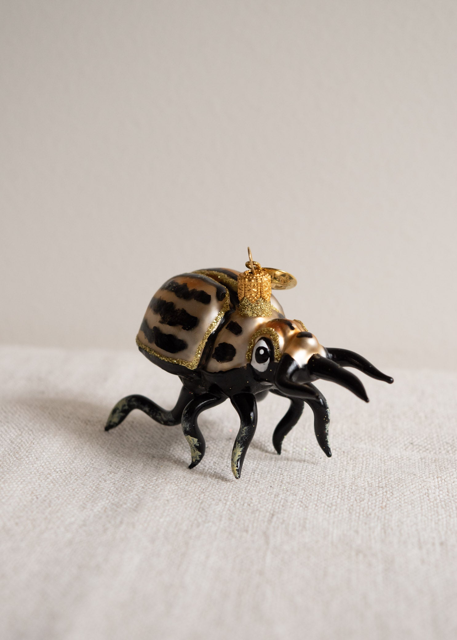 Polish Glass Christmas Ornament - Black & Gold Beetle