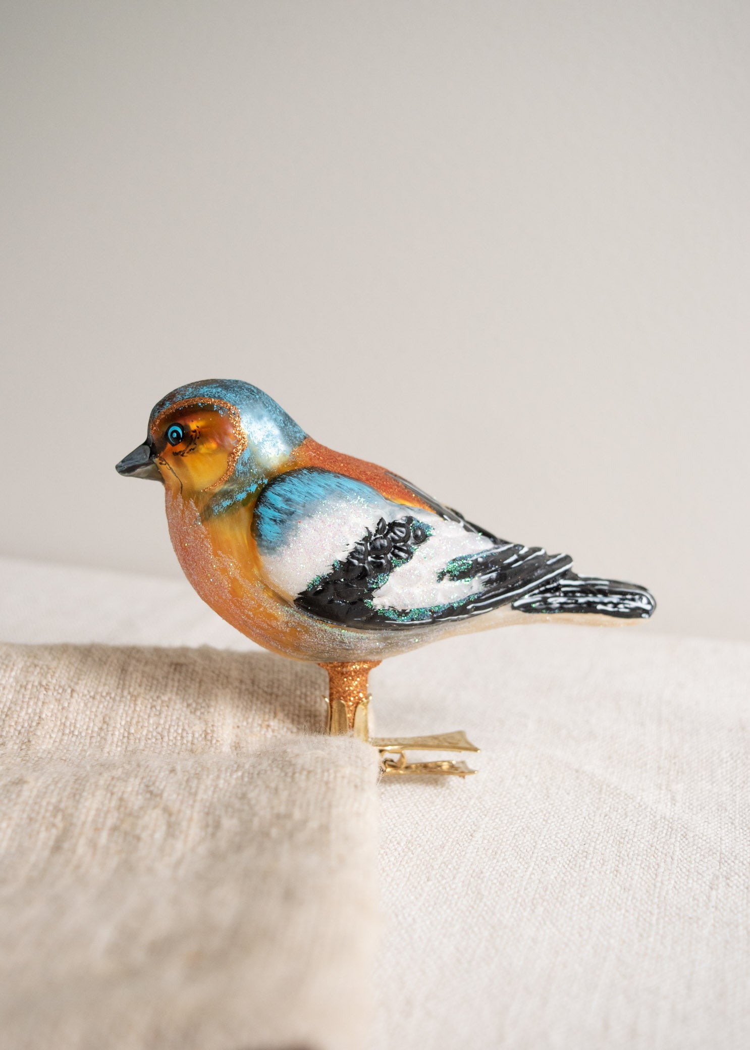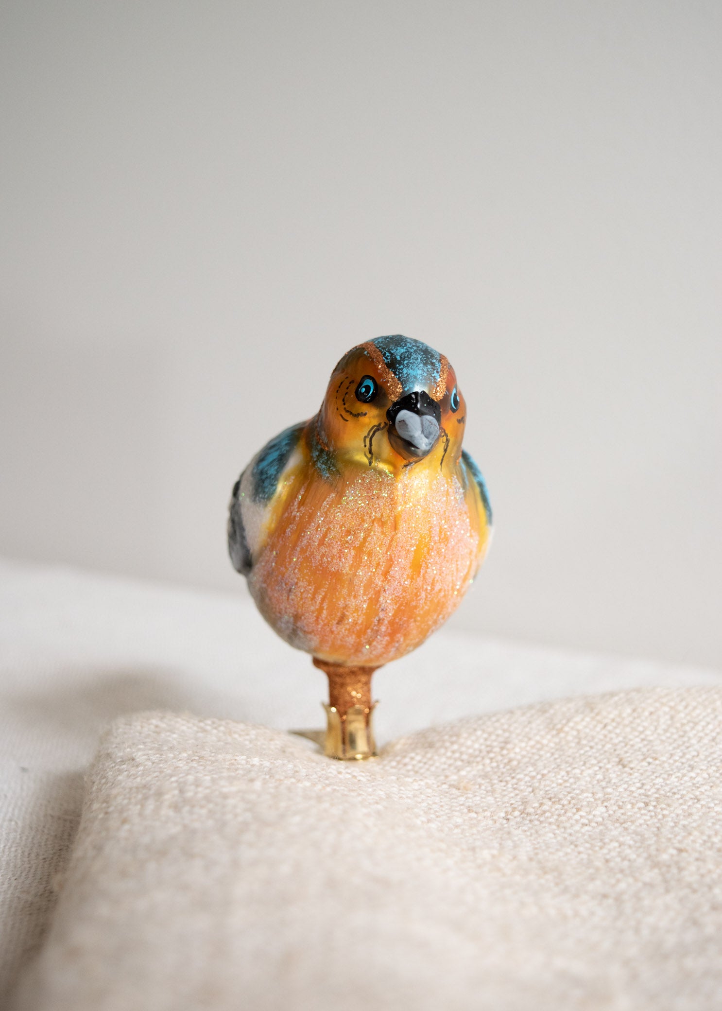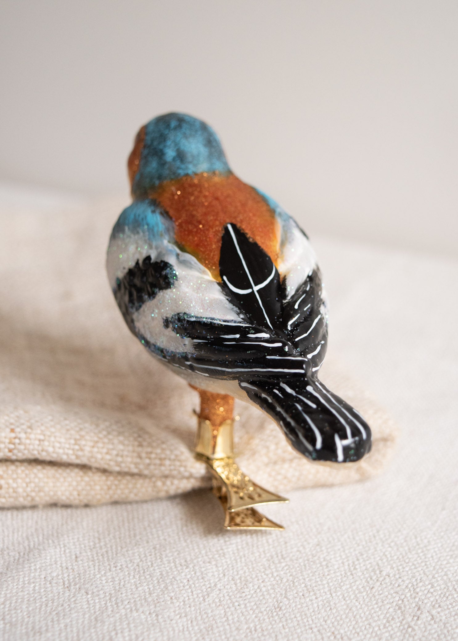 Polish Glass Christmas Ornament - Blue & Orange Chaffinch
