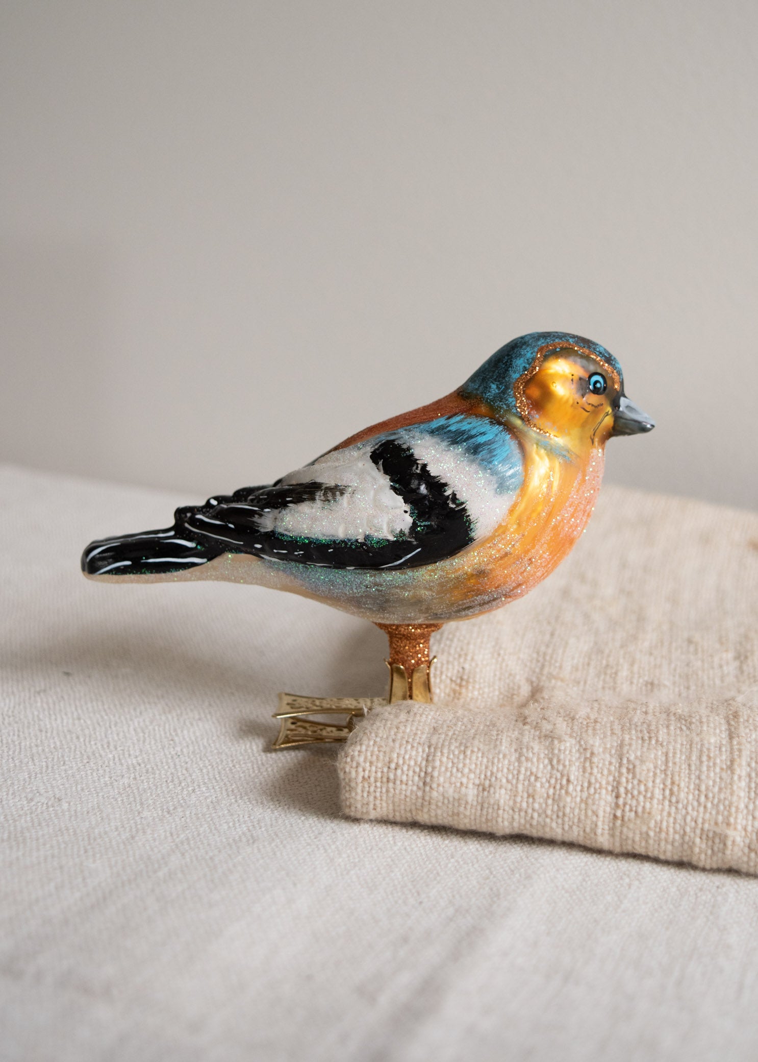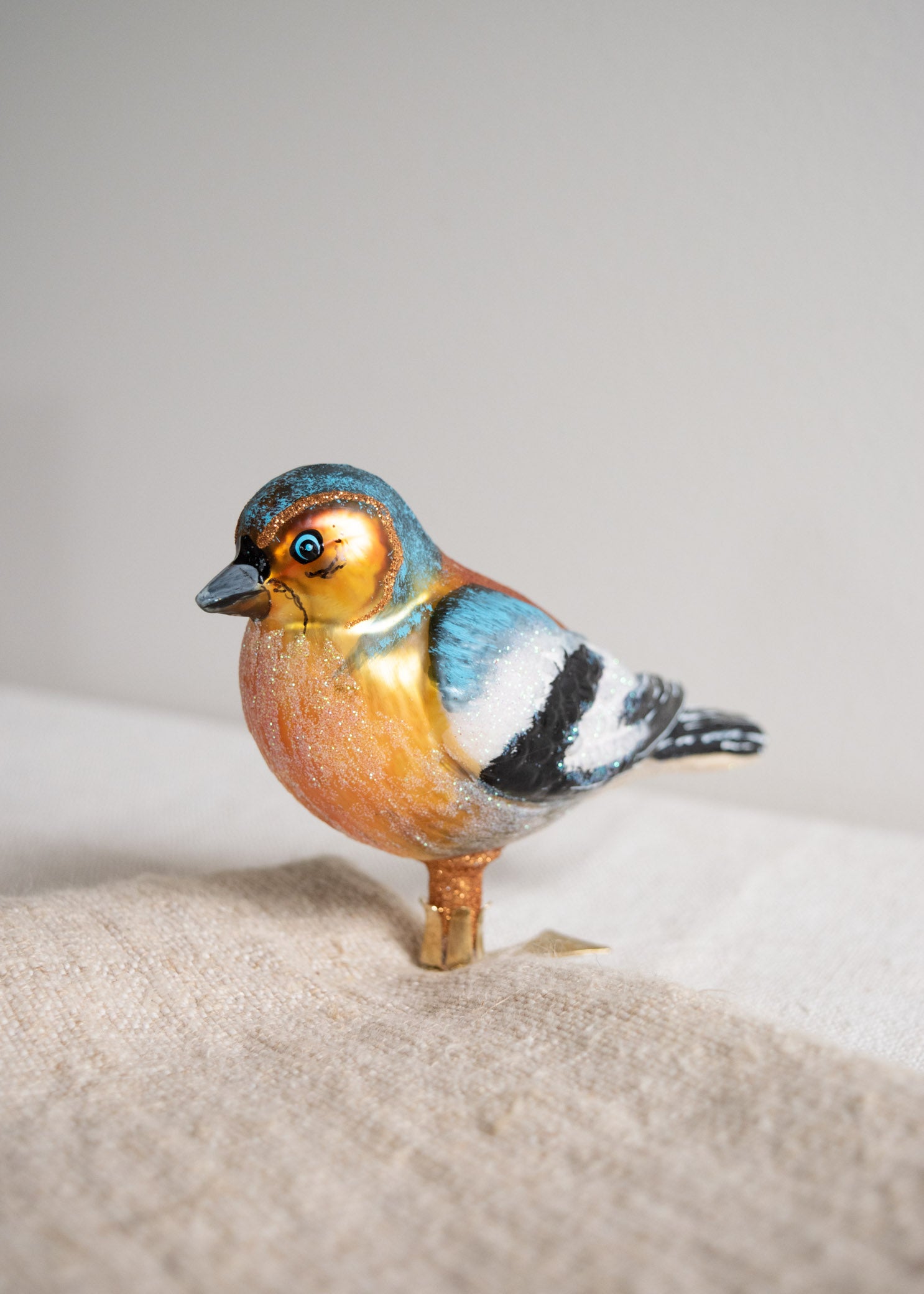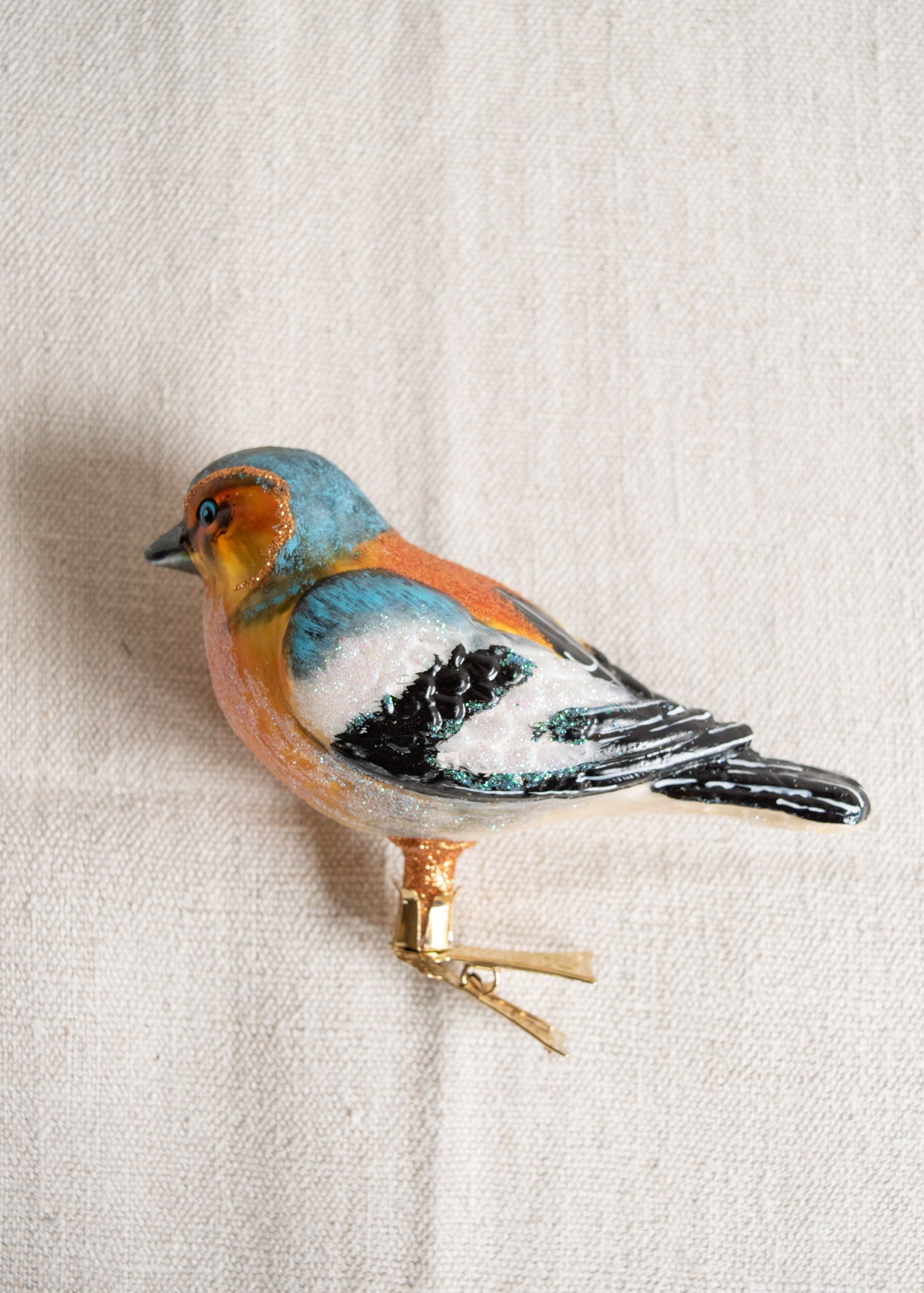 Polish Glass Christmas Ornament - Blue & Orange Chaffinch