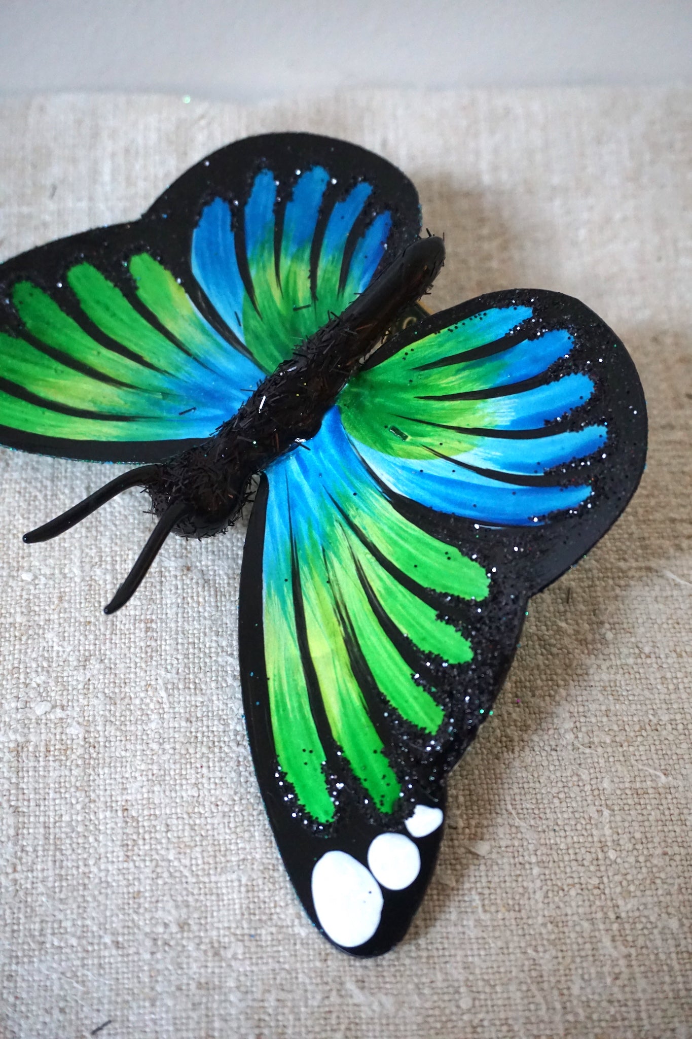 Polish Glass Christmas Ornament - Butterfly, Glass body with flexible plastic wings.