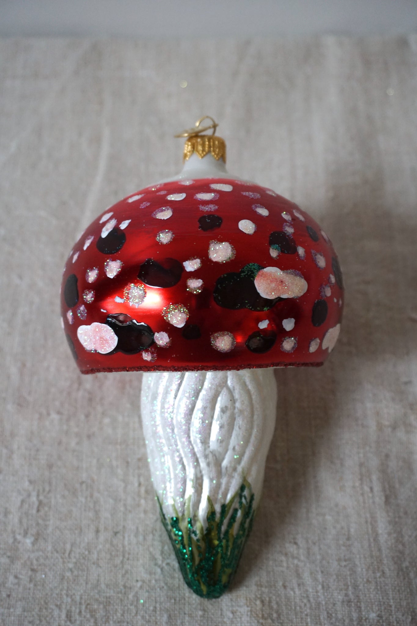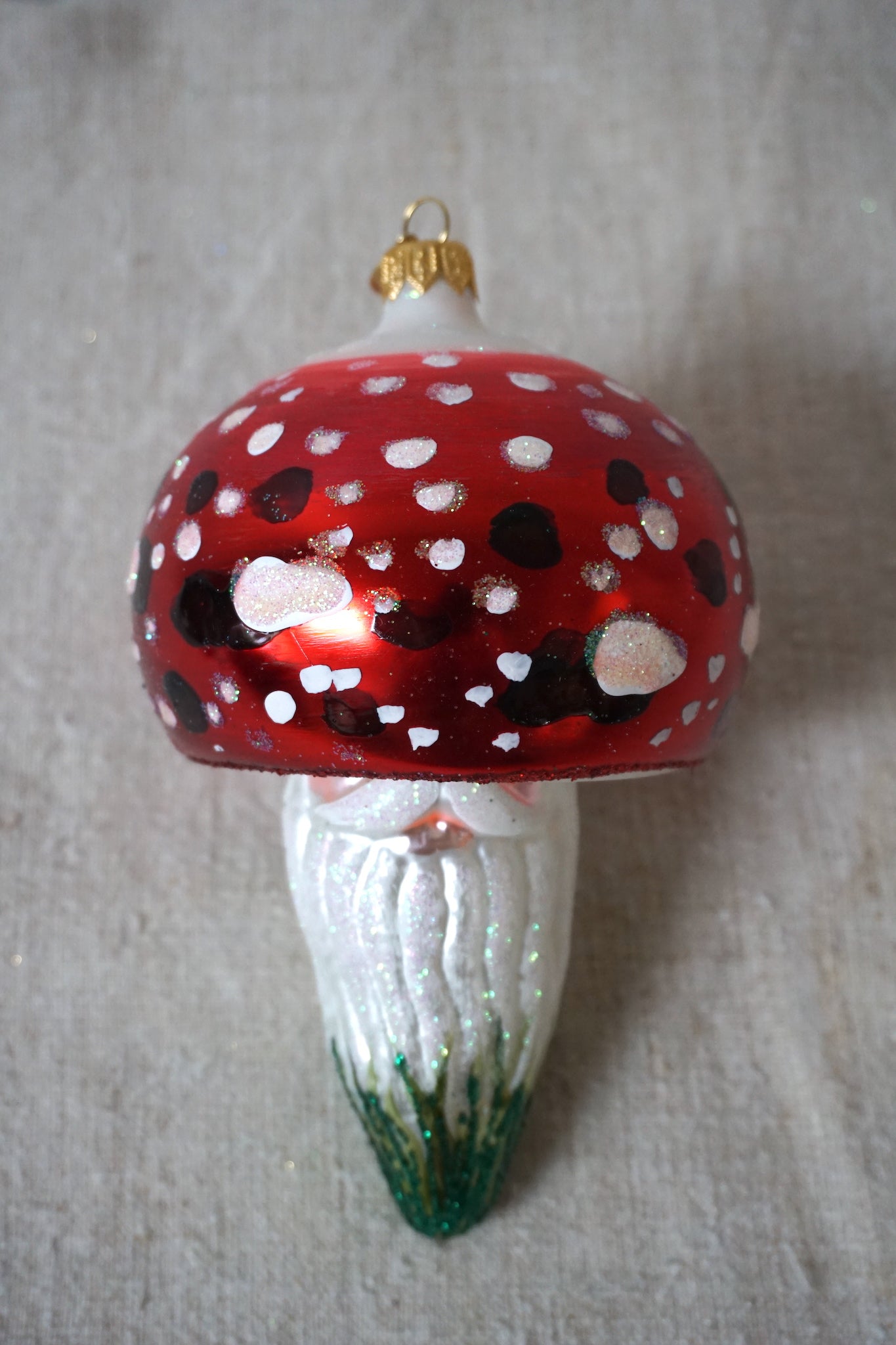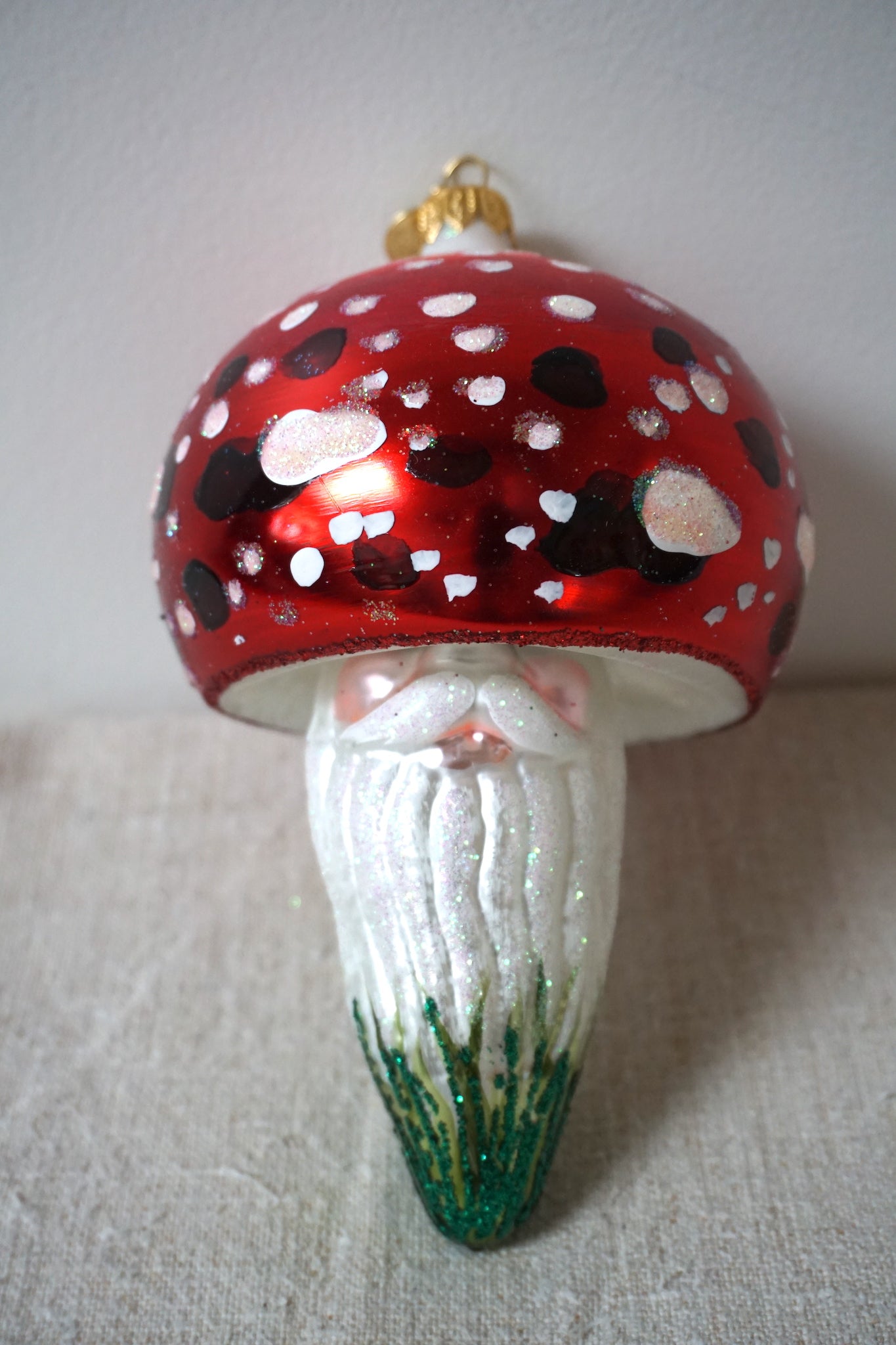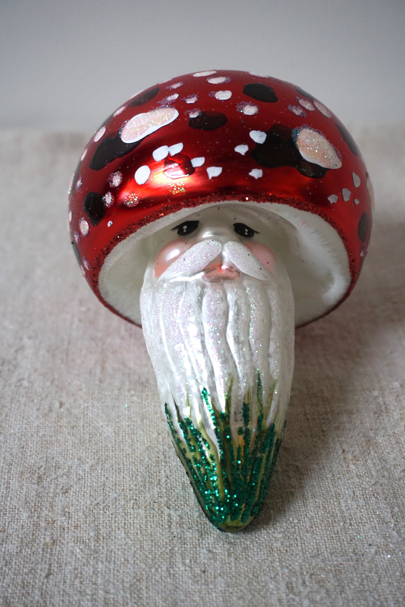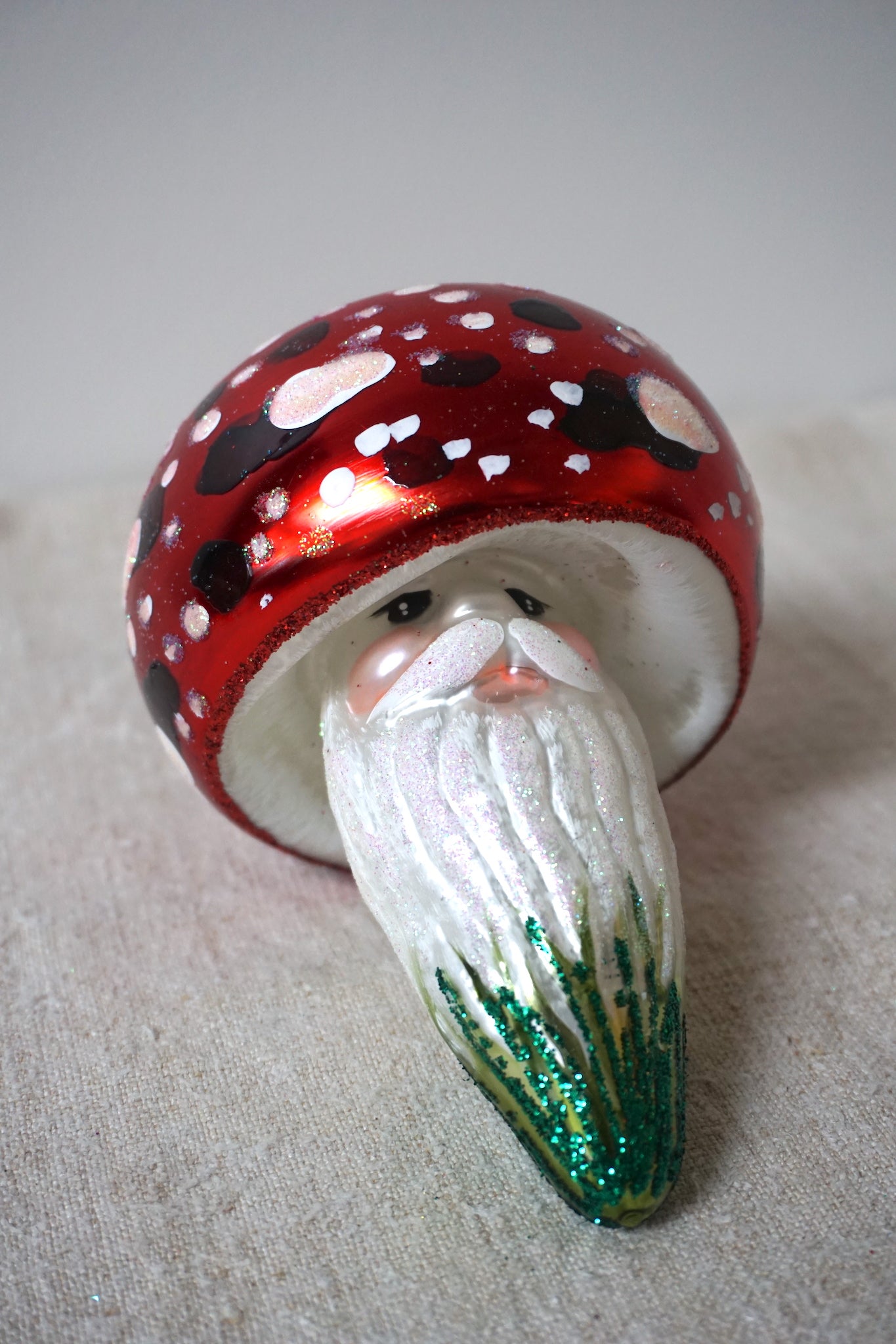 Polish Glass Christmas Ornament - Extra Large Mushroom with Santa Face