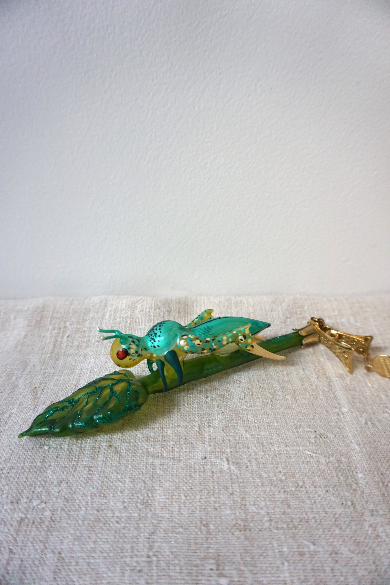 Polish Glass Christmas Ornament - Grasshopper on Leaf