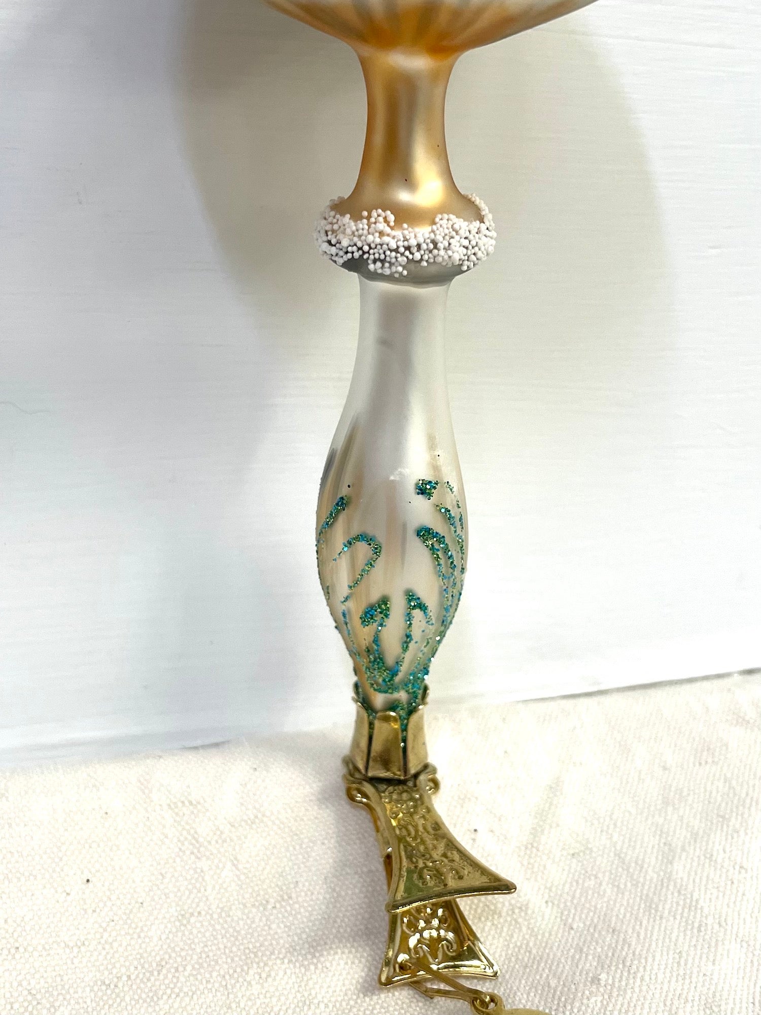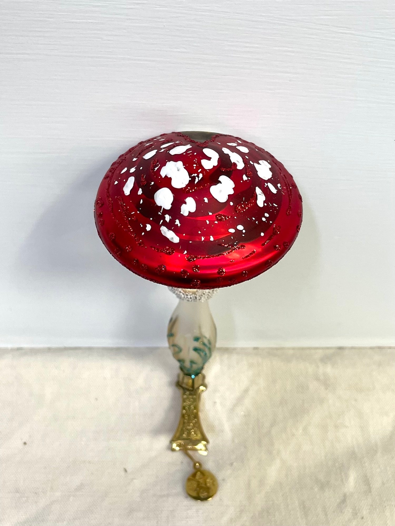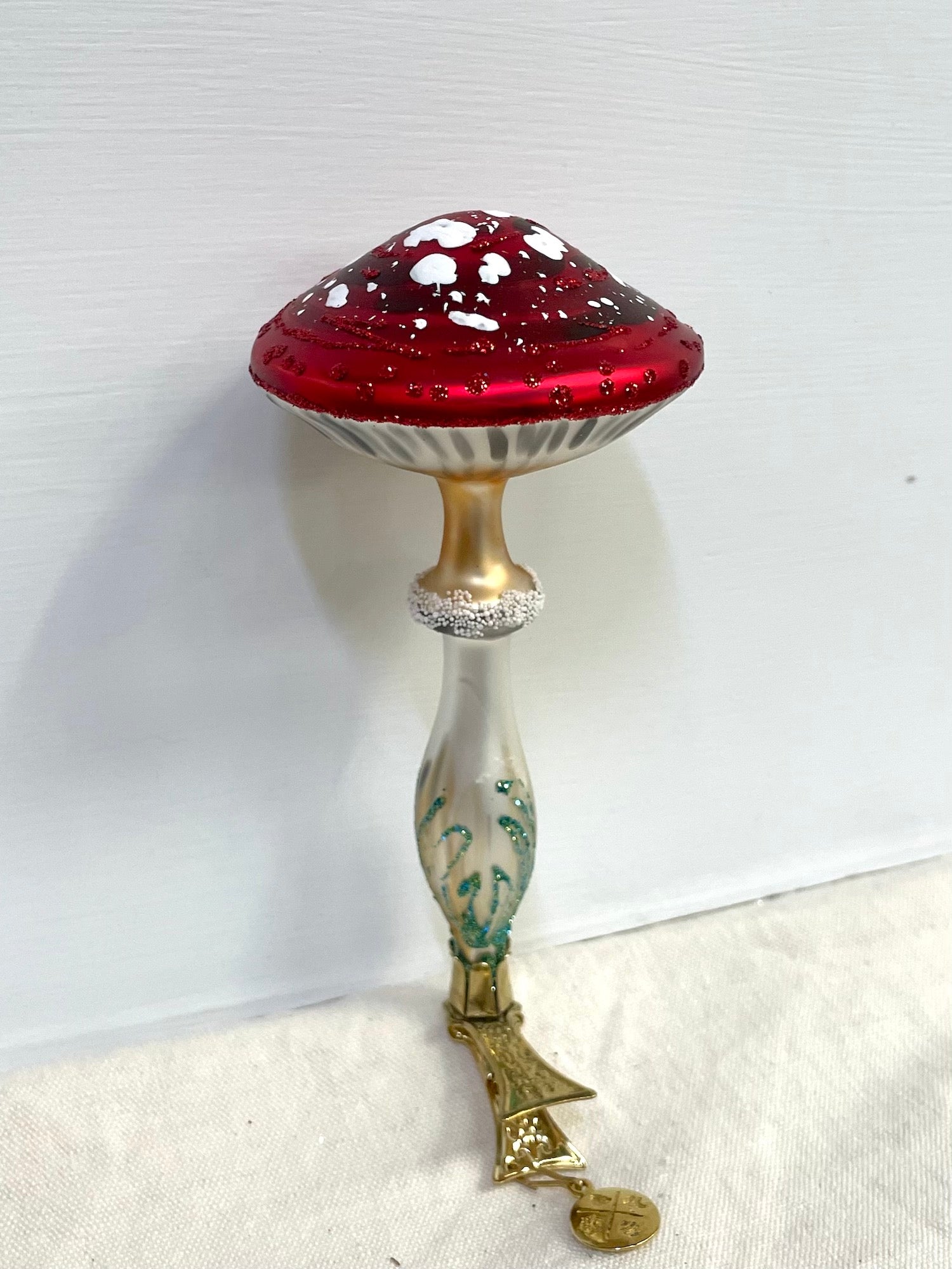 Polish Glass Christmas Ornament - Hourglass Mushroom on Clip