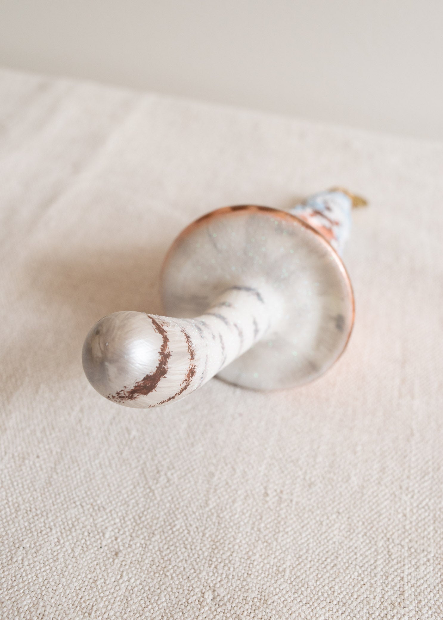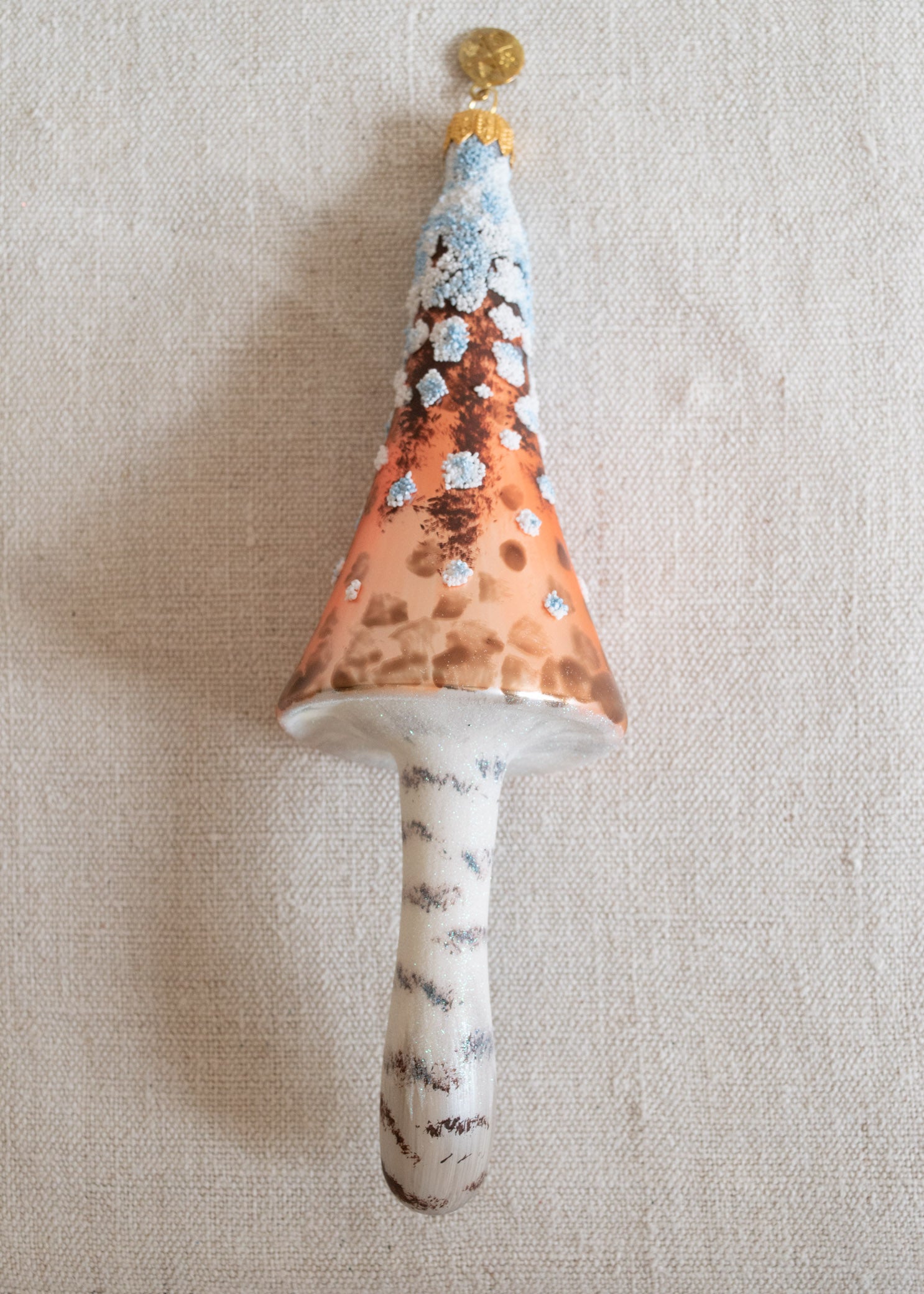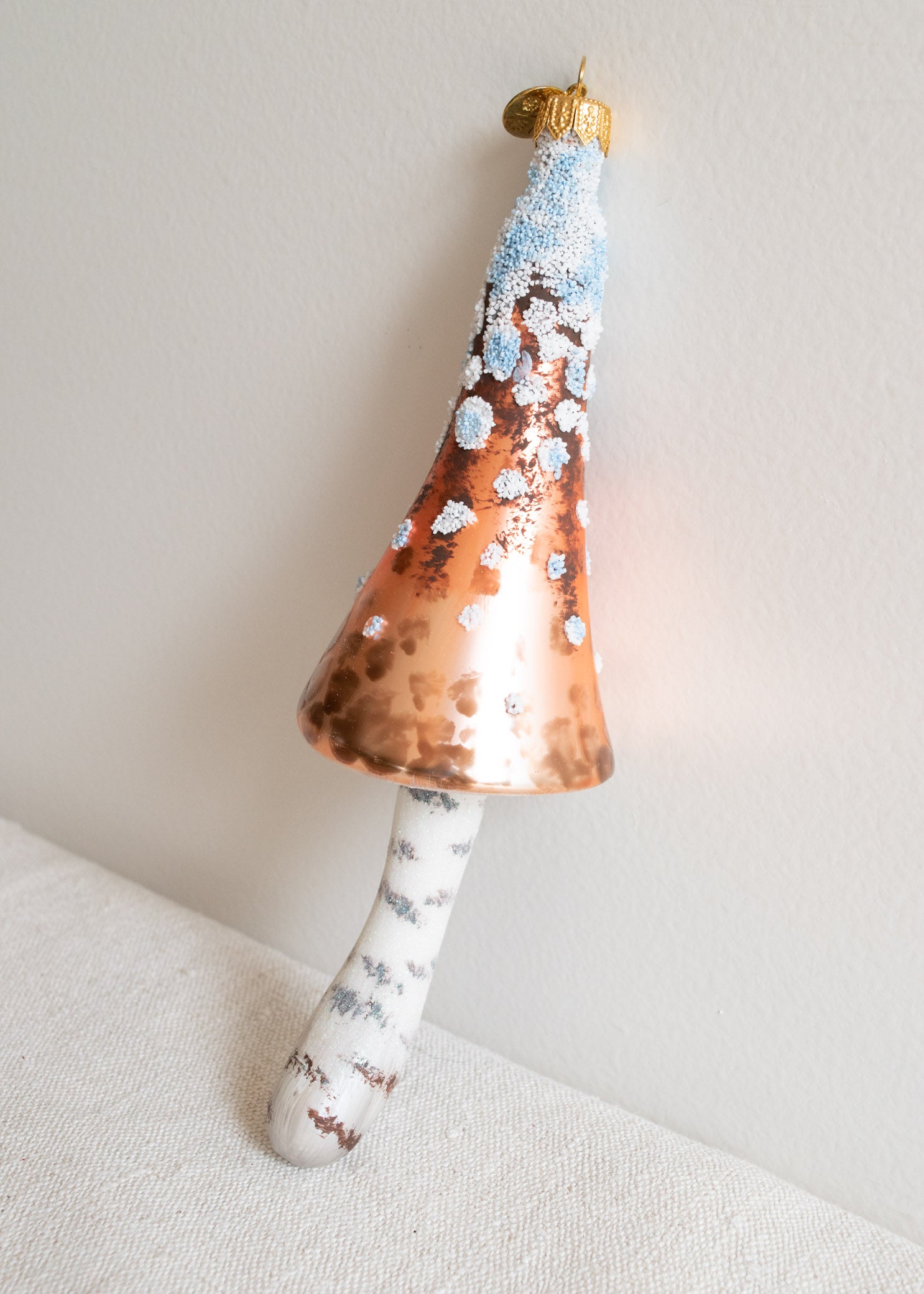 Polish Glass Christmas Ornament - Large Tan & Blue Mushroom