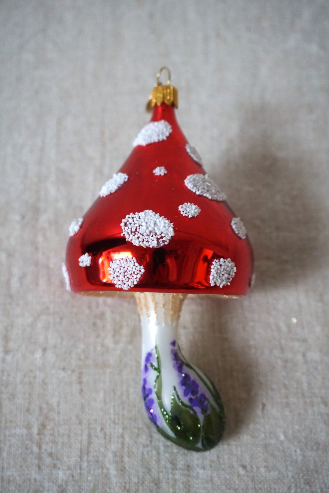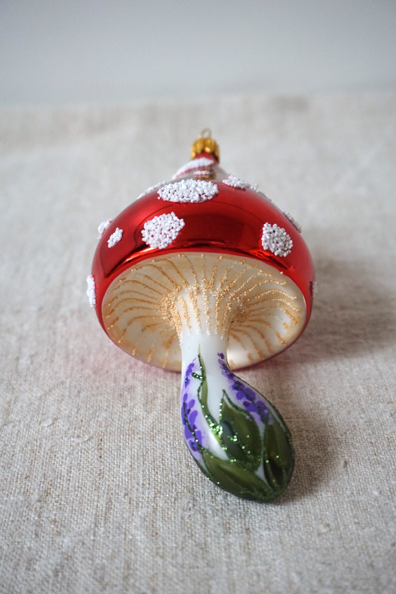 Polish Glass Christmas Ornament - Mushroom with Lavendar