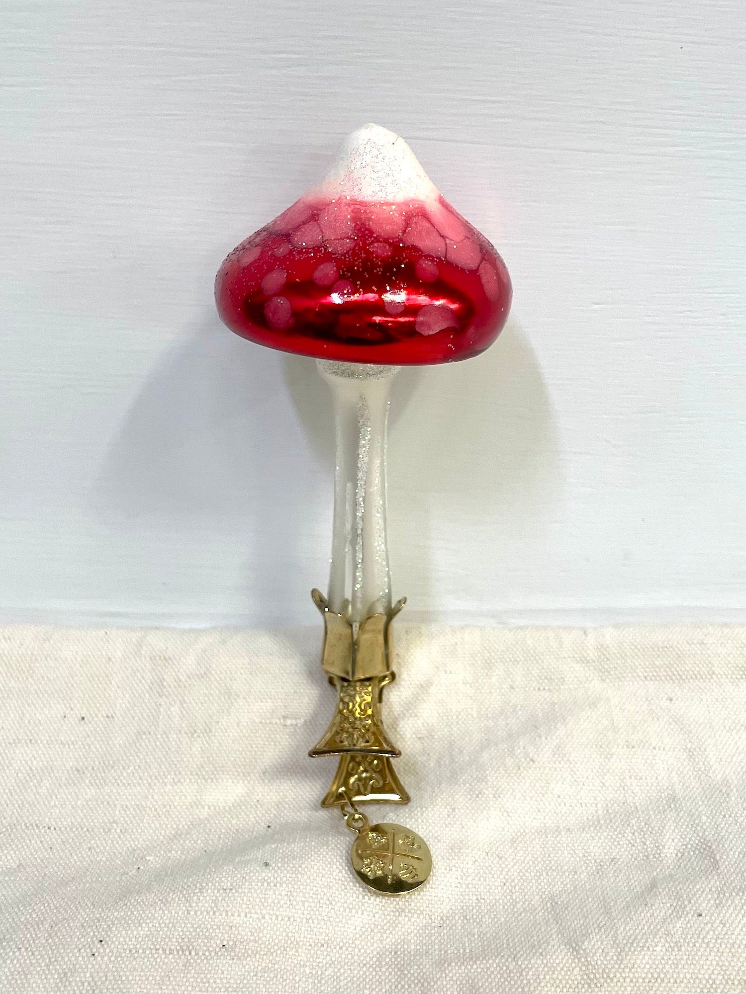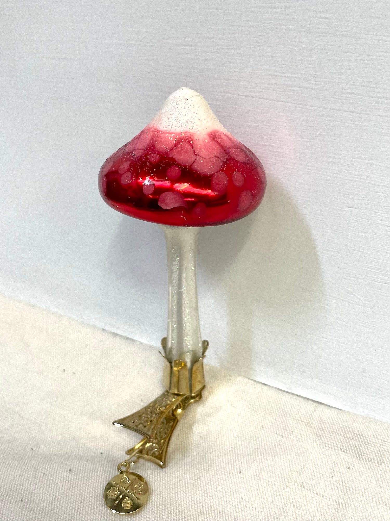 Polish Glass Christmas Ornament - Red Mushroom on Clip