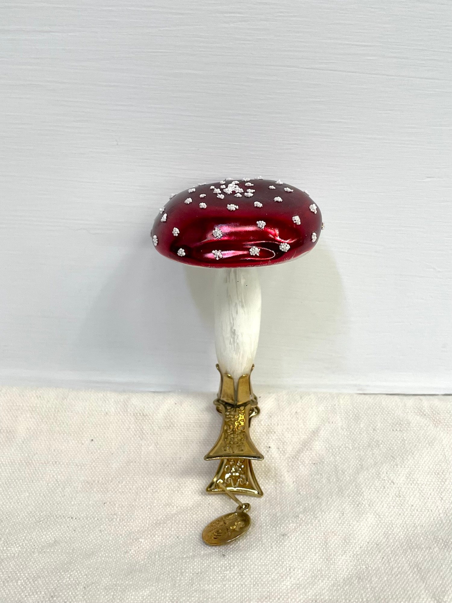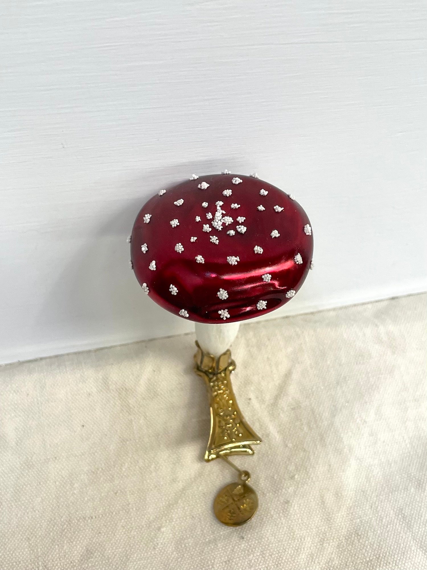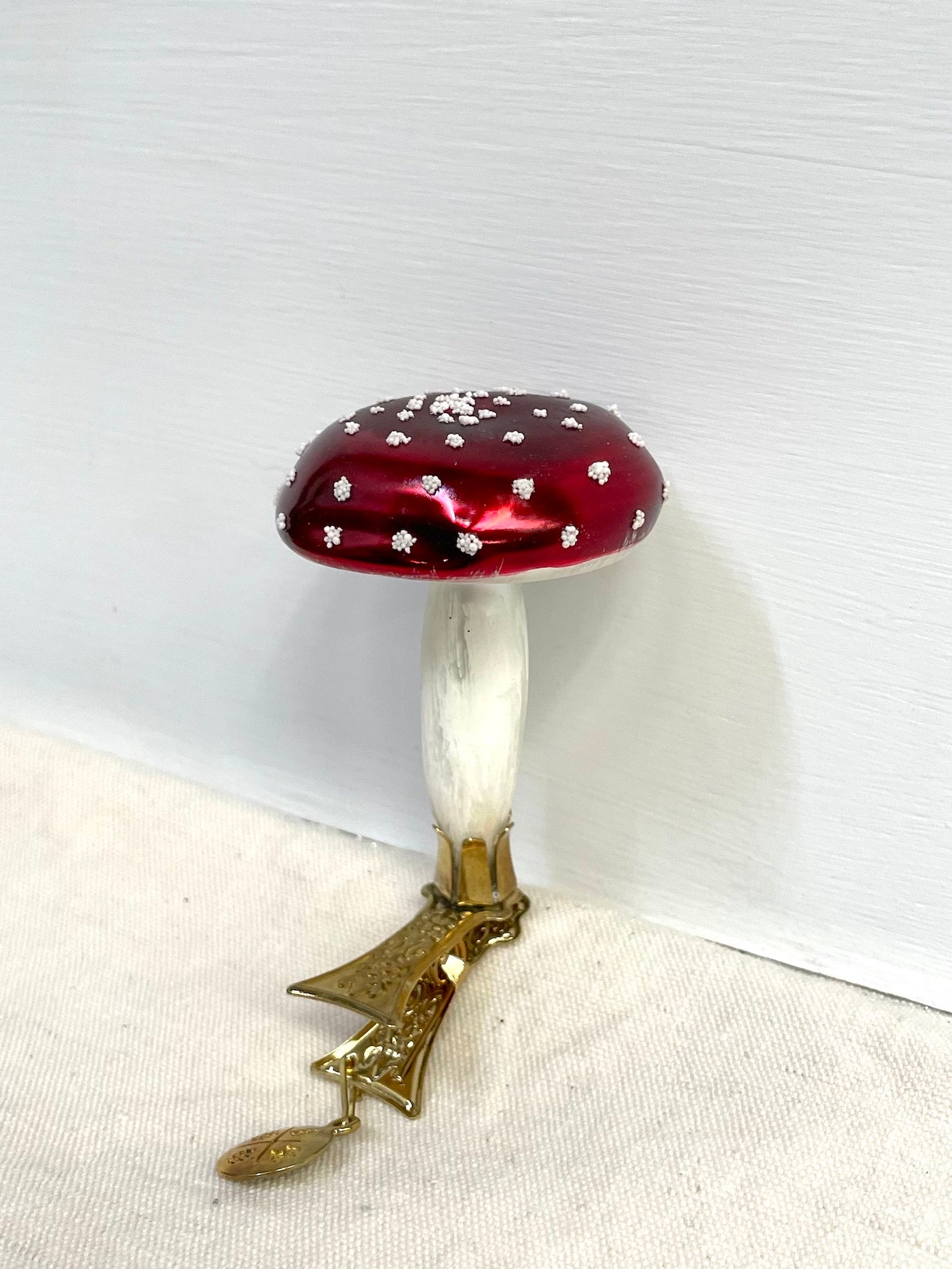 Polish Glass Christmas Ornament - Small Spotted Mushroom on Clip
