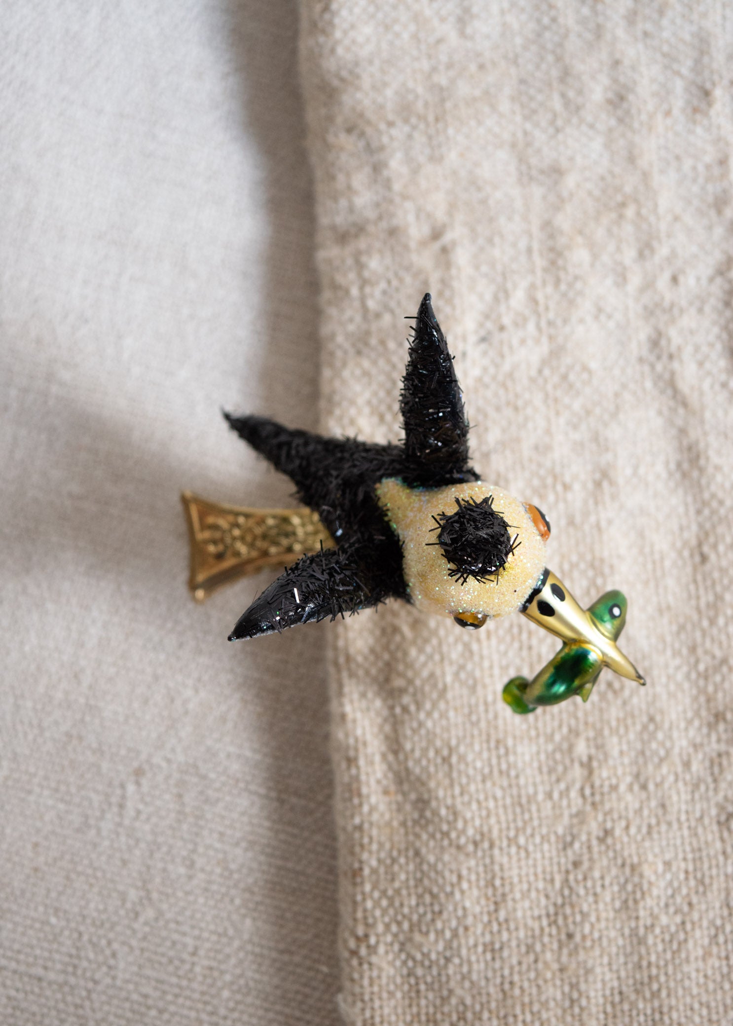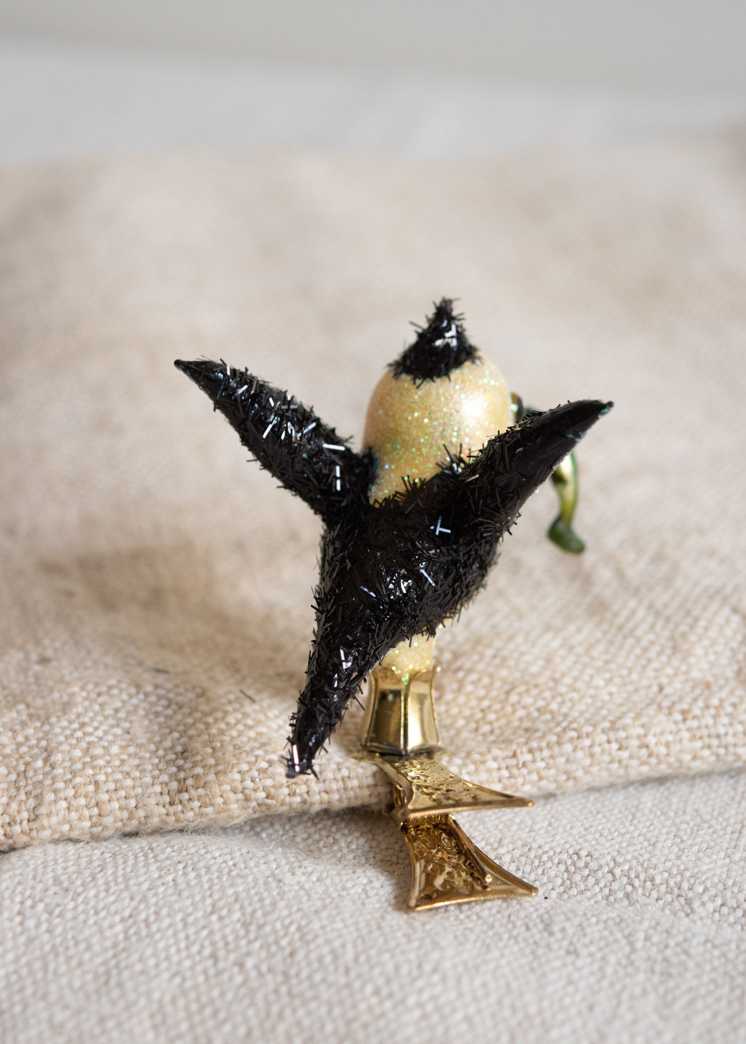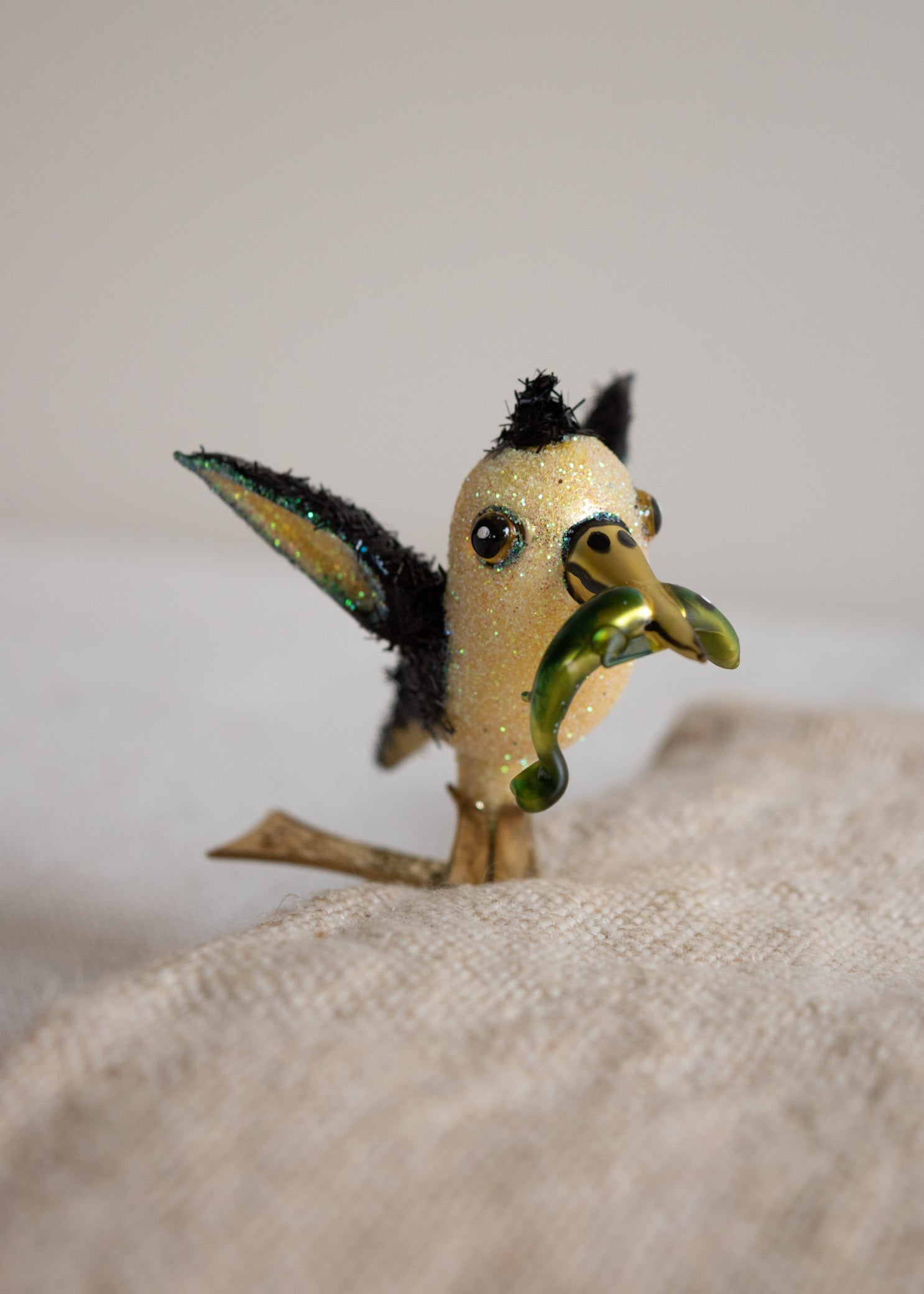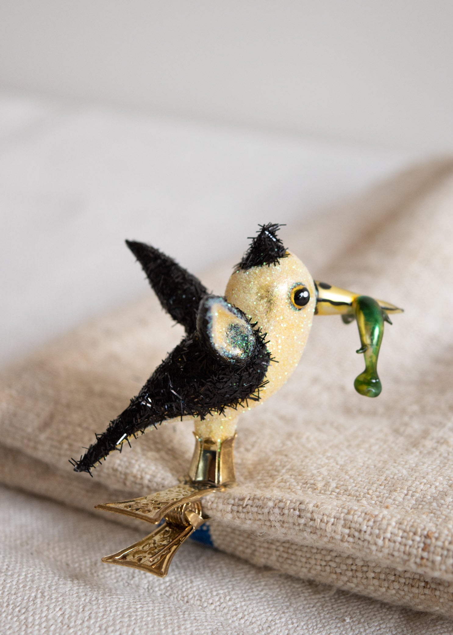 Polish Glass Christmas Ornament - Tiny Bird with Fish