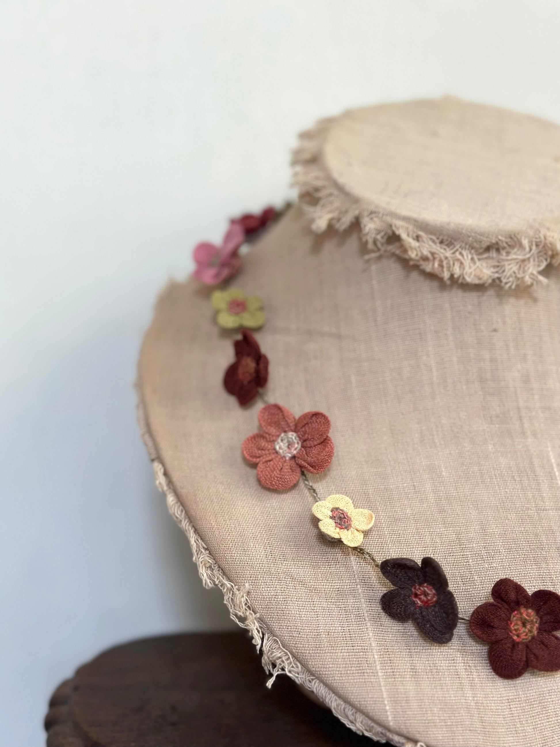 Sophie Digard Autumn Bouquet Short Crochet Necklace, with a gorgeous variety of multi coloured flowers.