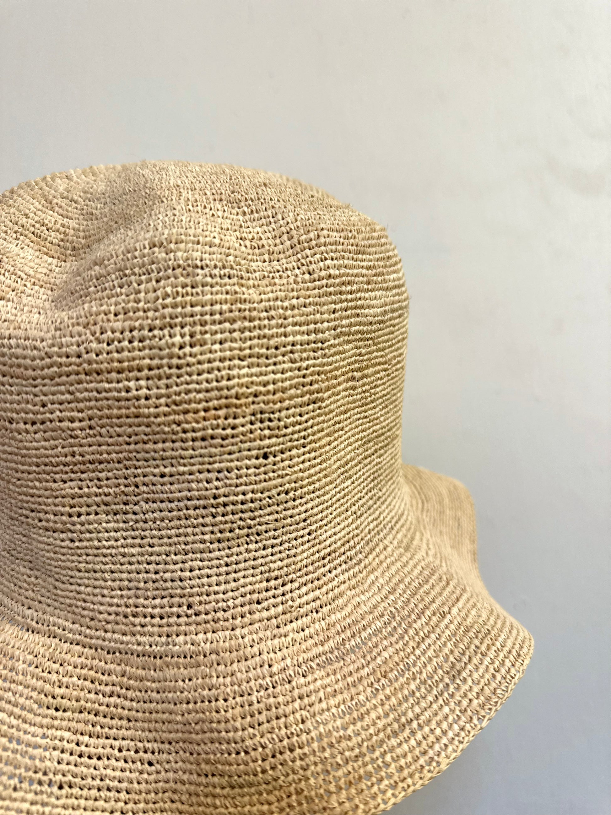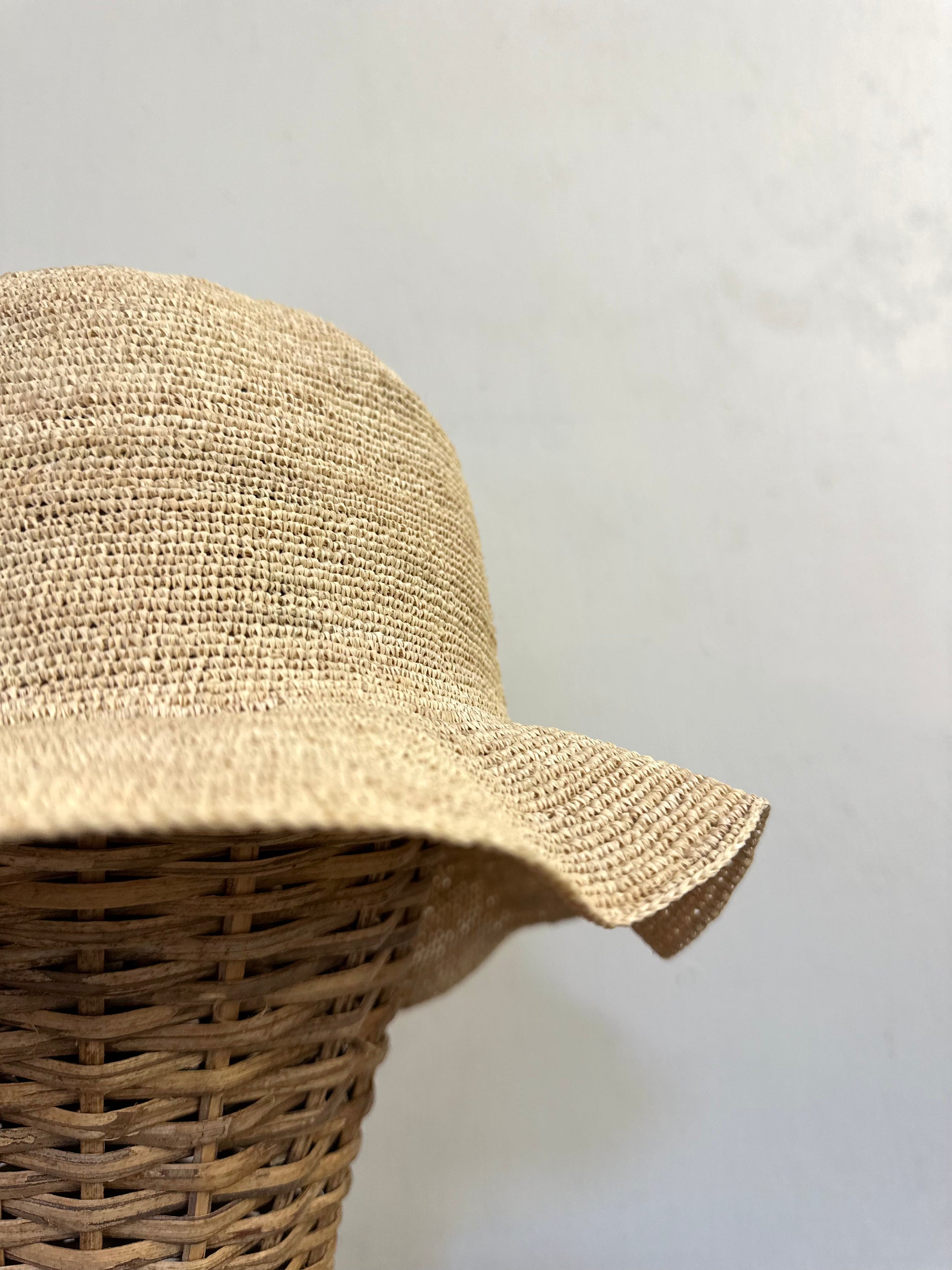Sophie Digard adorable handmade raffia bucket hat in Natural.