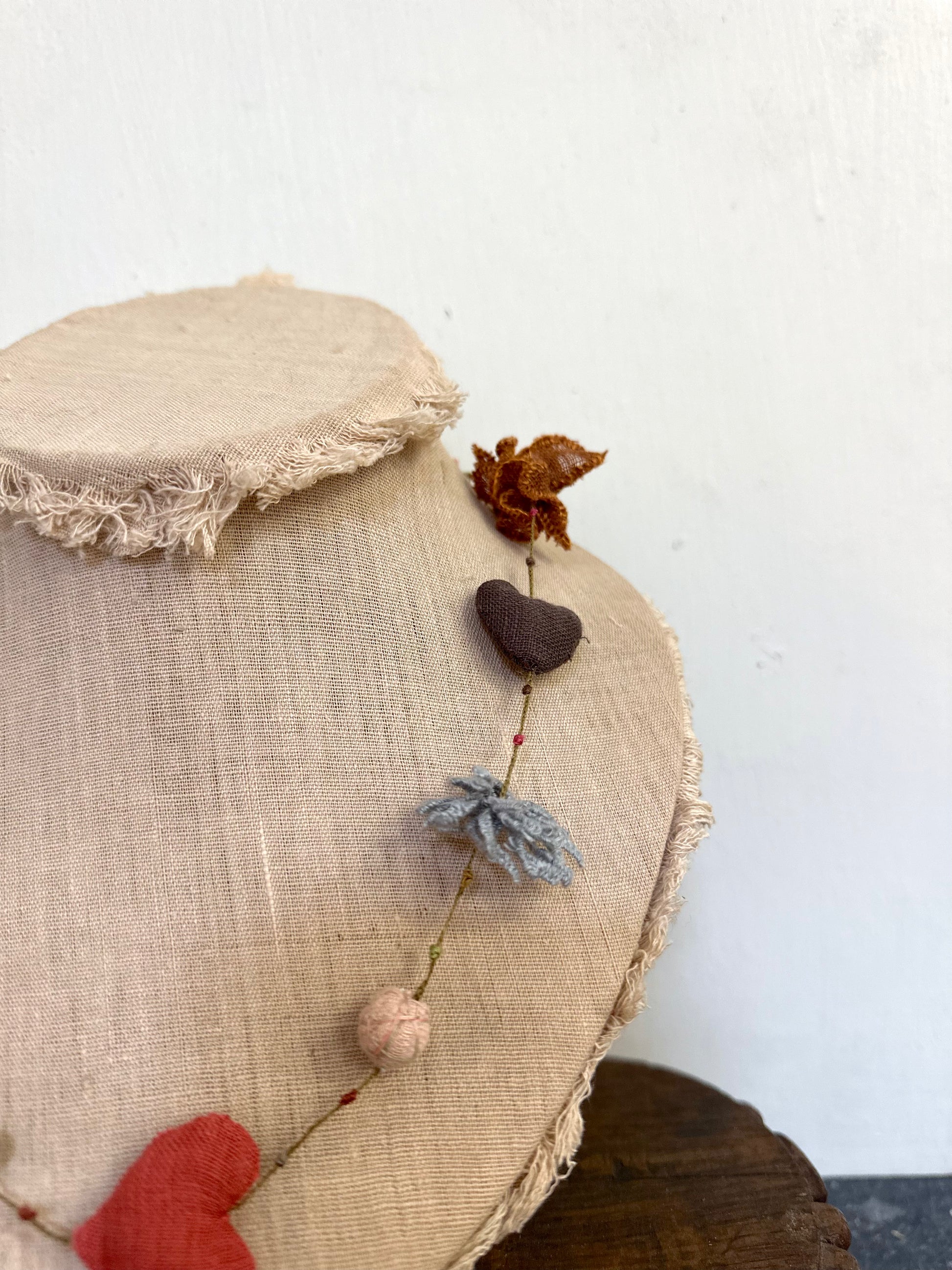 Sophie Digard Spring Floret Short Linen Crochet Necklace, with a gorgeous mix of multicolour flowers and hearts.