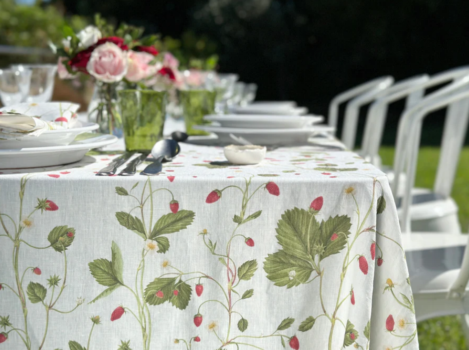 Summerill & Bishop 'Fraises des Bois' Strawberry Linen Tablecloth