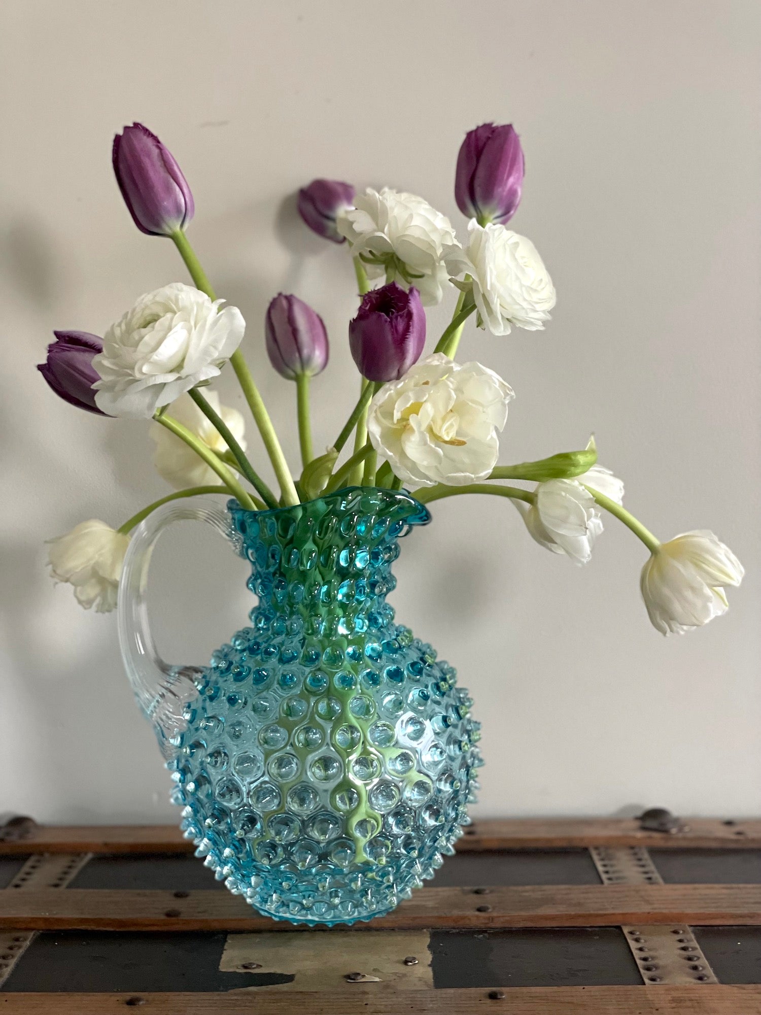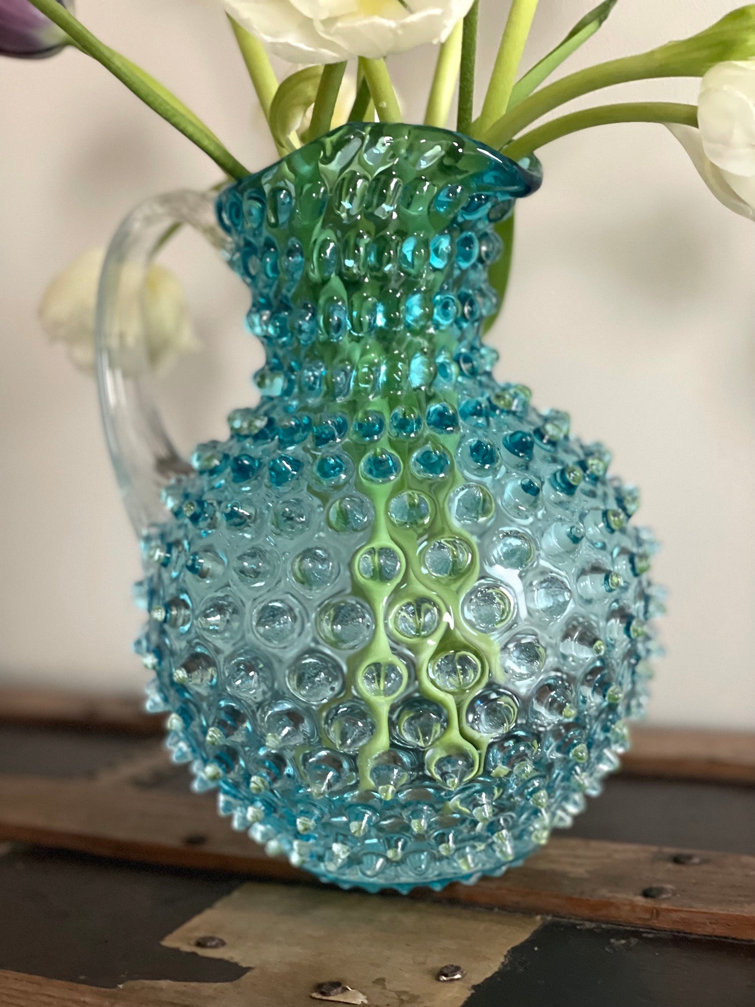 Underlay Aquamarine Bohemia Glass Hobnail Pitcher