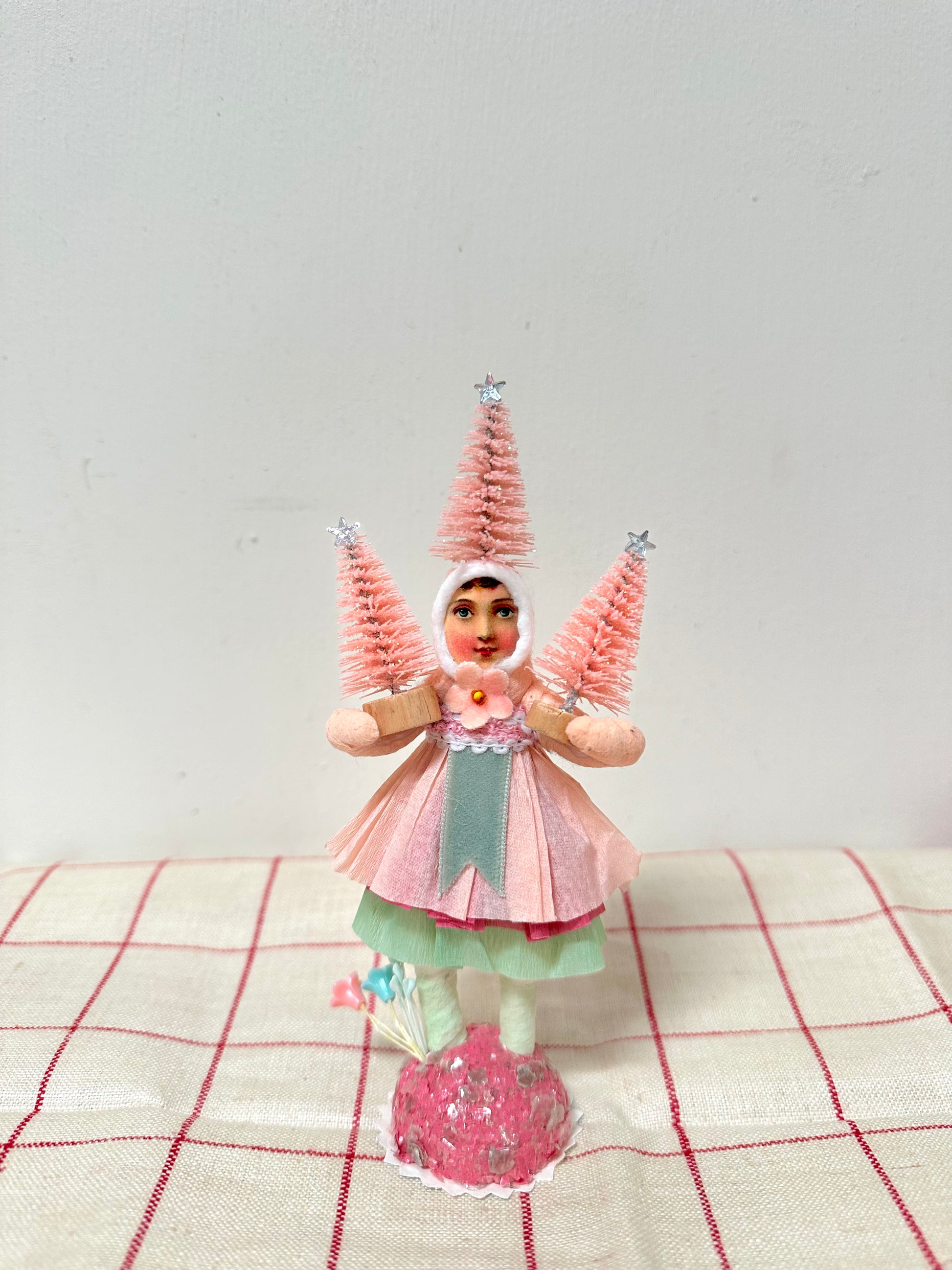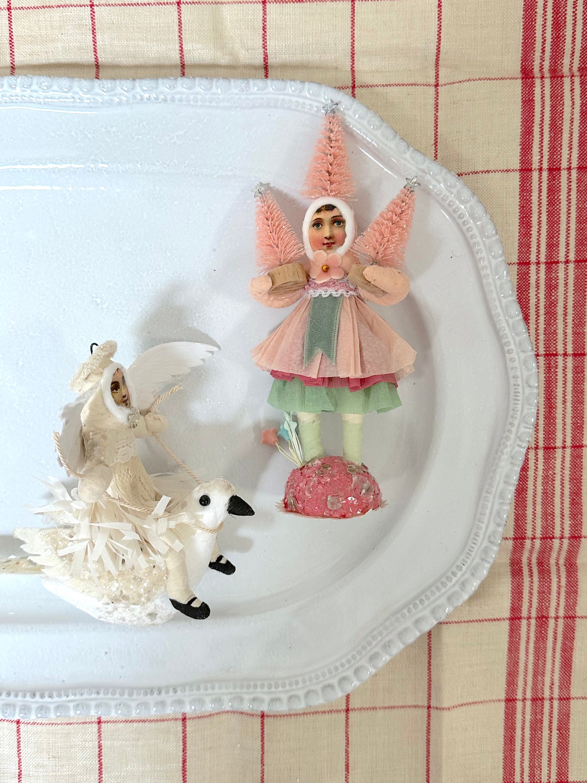 Vintage by Crystal is a husband and wife crafting team that creates a whimsical world of vintage inspired spun cotton figures and ornaments in their home studio in New York. Each piece is carefully handcrafted using a wide range of materials other than spun cotton, including forest floor finds, old antiques and forgotten treasures.