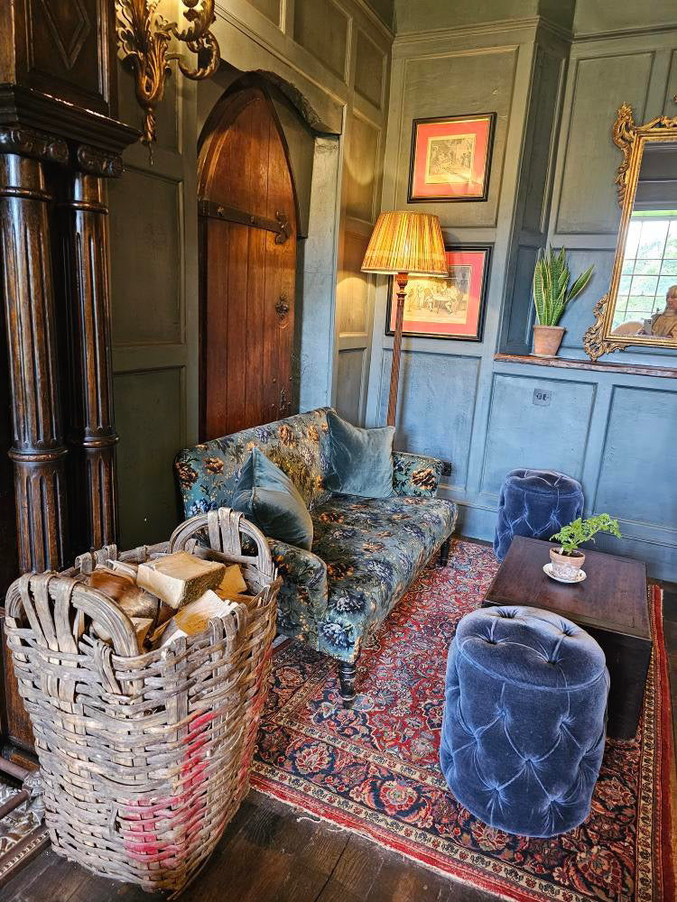 Vintage French Harvest Basket. Perfect for use as a wood basket, washing basket or on a verandah with a tree in it. As seen in The Pig - At Bridge Place in England.