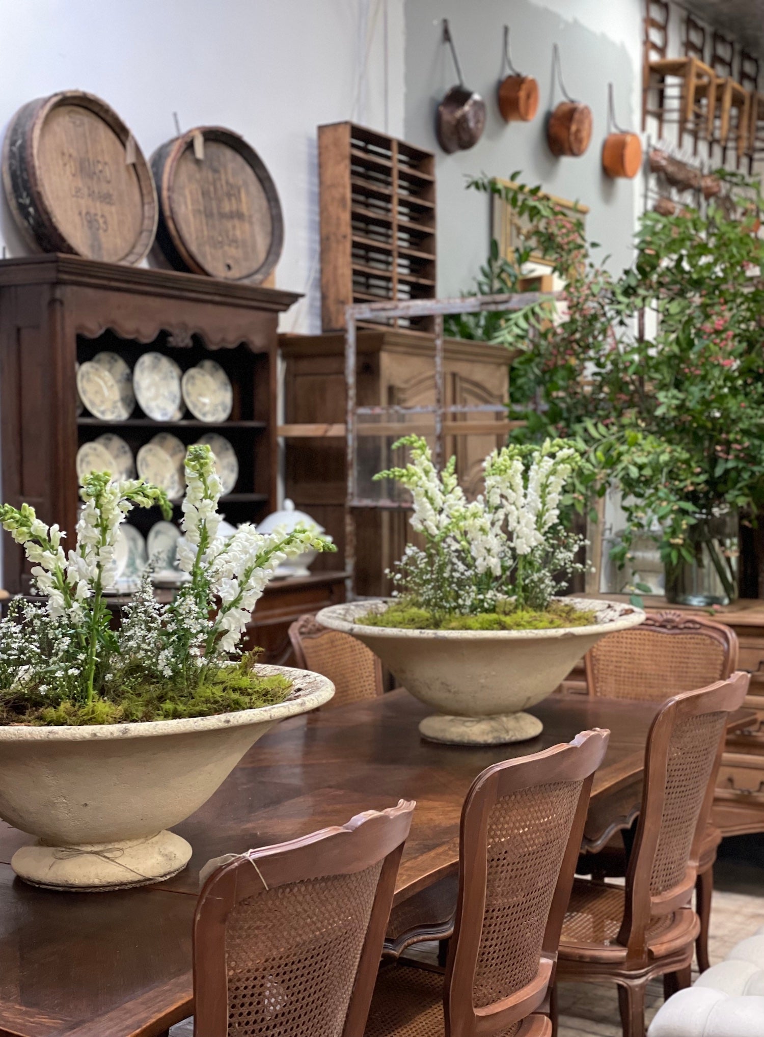 Vintage French Concrete Planter. Elegant footed bowl shape. Cast concrete with painted finish. Drainage hole in base. Looks amazing planted with your favourite flowers, tulips, foxgloves, lupins etc. Only one available.
