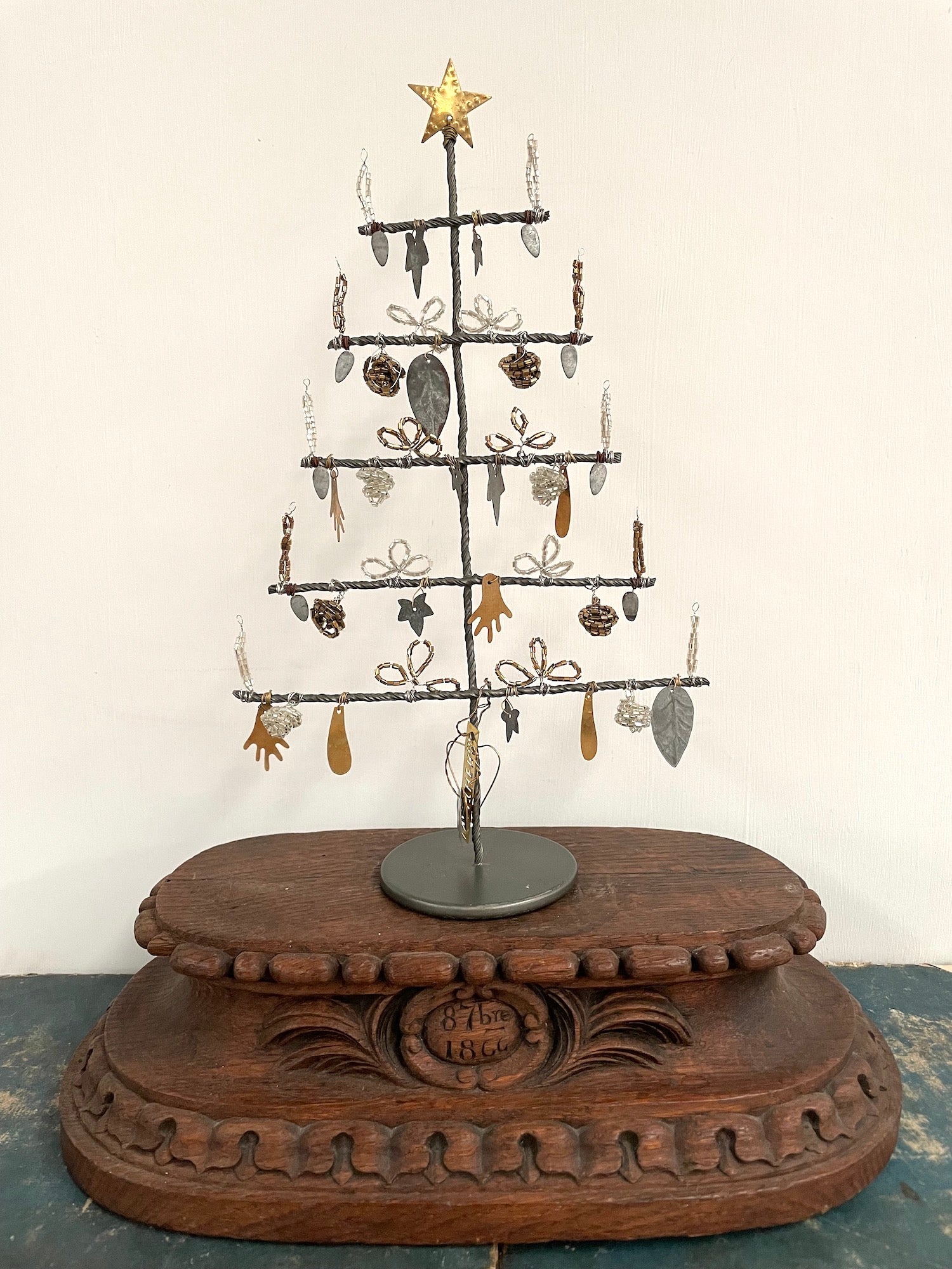 Walther & Co. Large Standing Zinc Christmas Tree with Beaded Ornaments