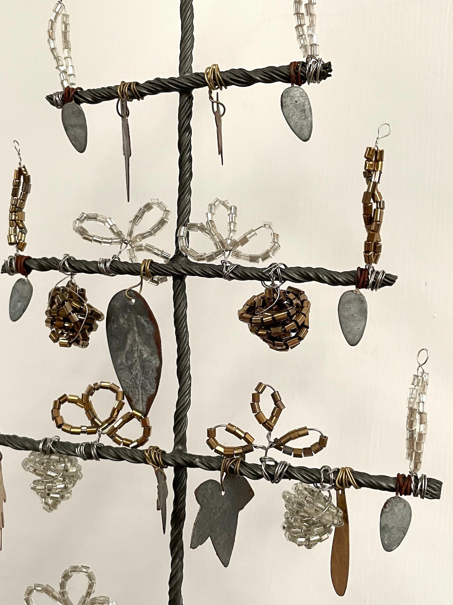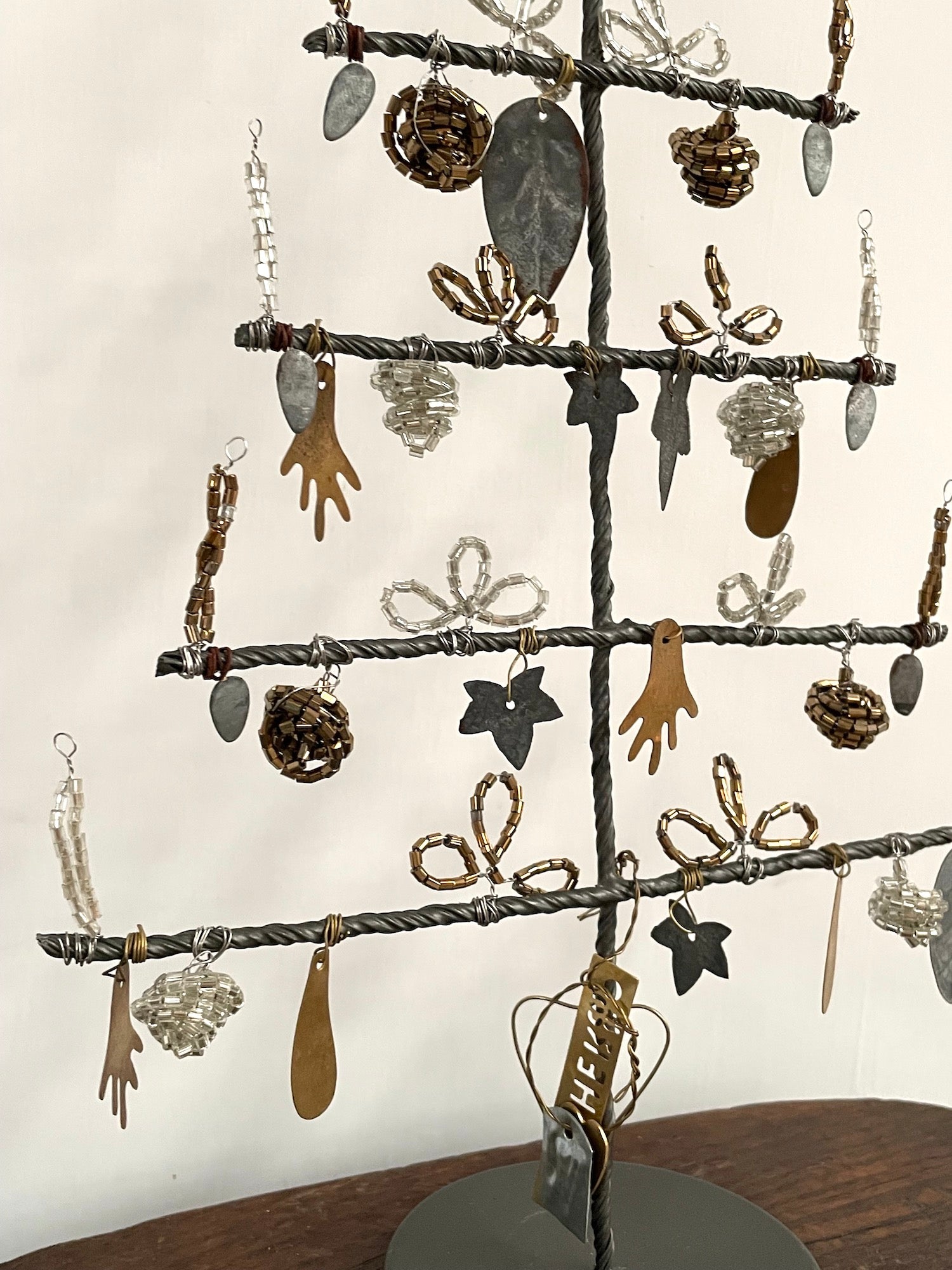 Walther & Co. Standing Zinc Christmas Tree with Beaded Ornaments